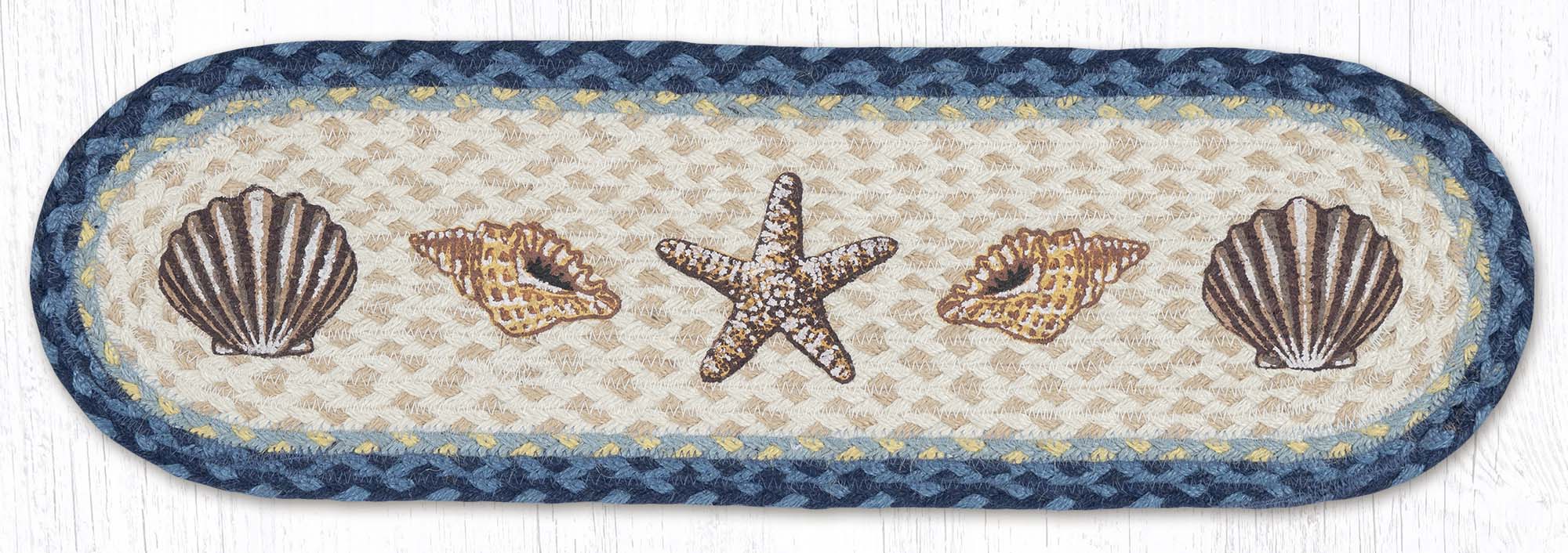 Earth Rugs Beach-Inspired Shells Oval Stair Tread – 27"x8.25" Natural Jute