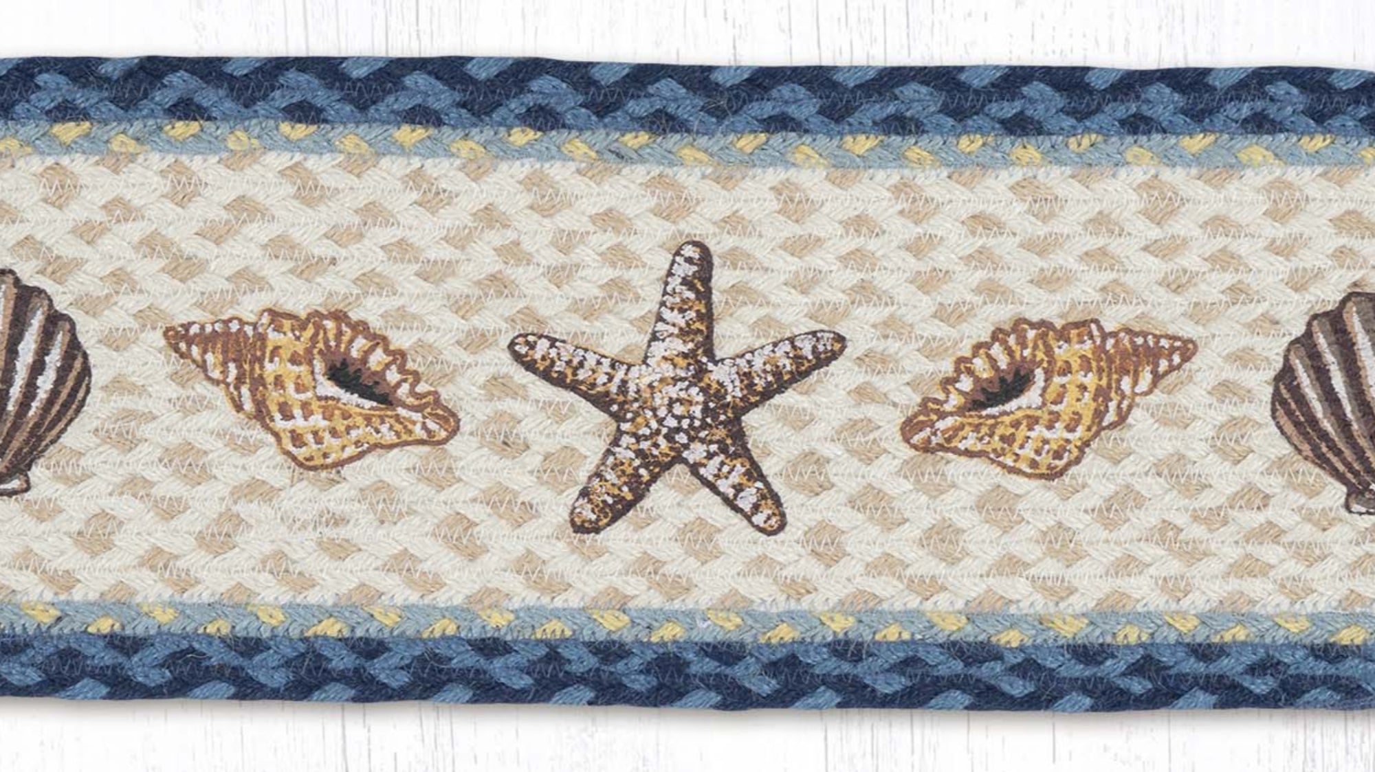 beach cottage stair runner,beach house stair mat,coastal jute stair tread,eco friendly seaside stair protector,handwoven shell design oval stair rug,natural jute coastal stair runner,nautical jute stair protector,nautical shells stair cover,ocean themed stair mat,seashell farmhouse stair tread,seaside design country stair tread,shells stair tread