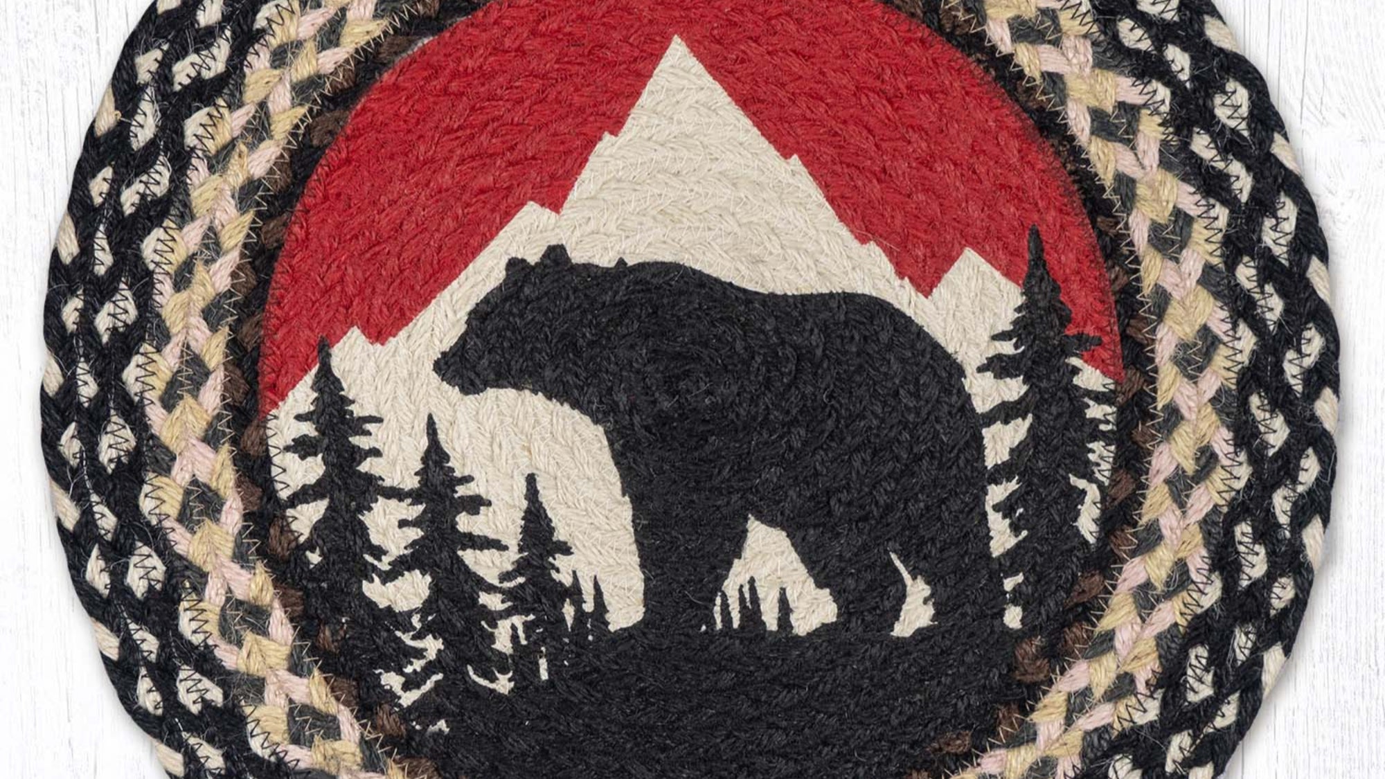 Earth Rugs Bear Print Round Placemat – Mountain Wildlife Design 15”