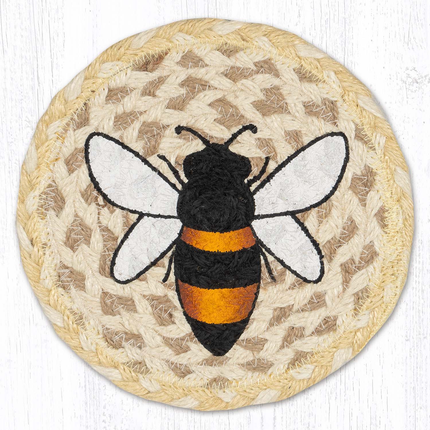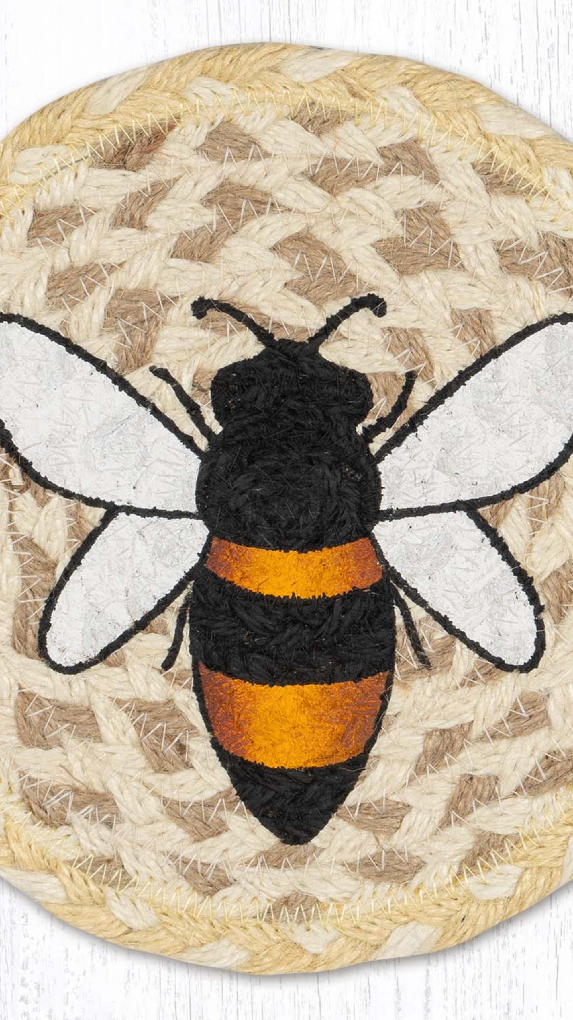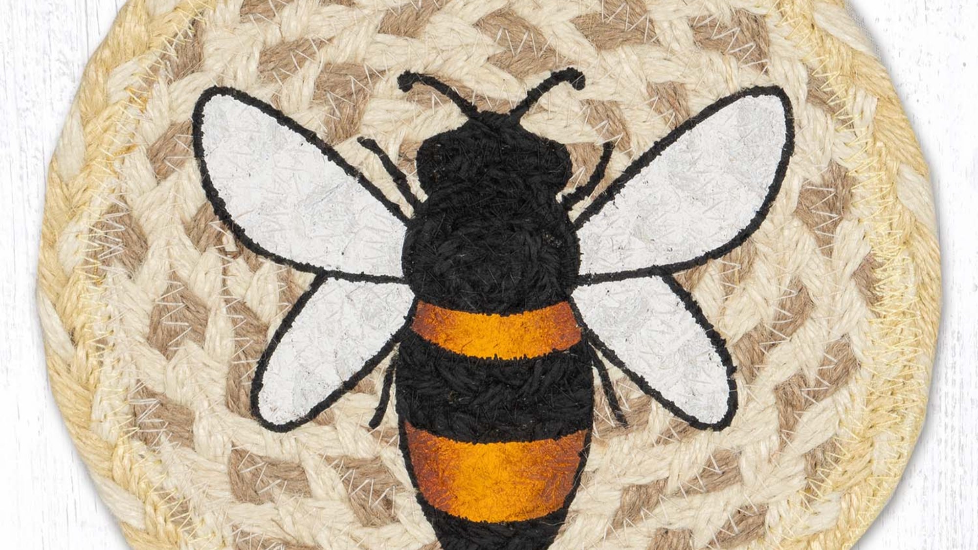 SKU - ER79-880BHBee Happy Braided Coaster – 7" Round Farmhouse Style Drink Mat