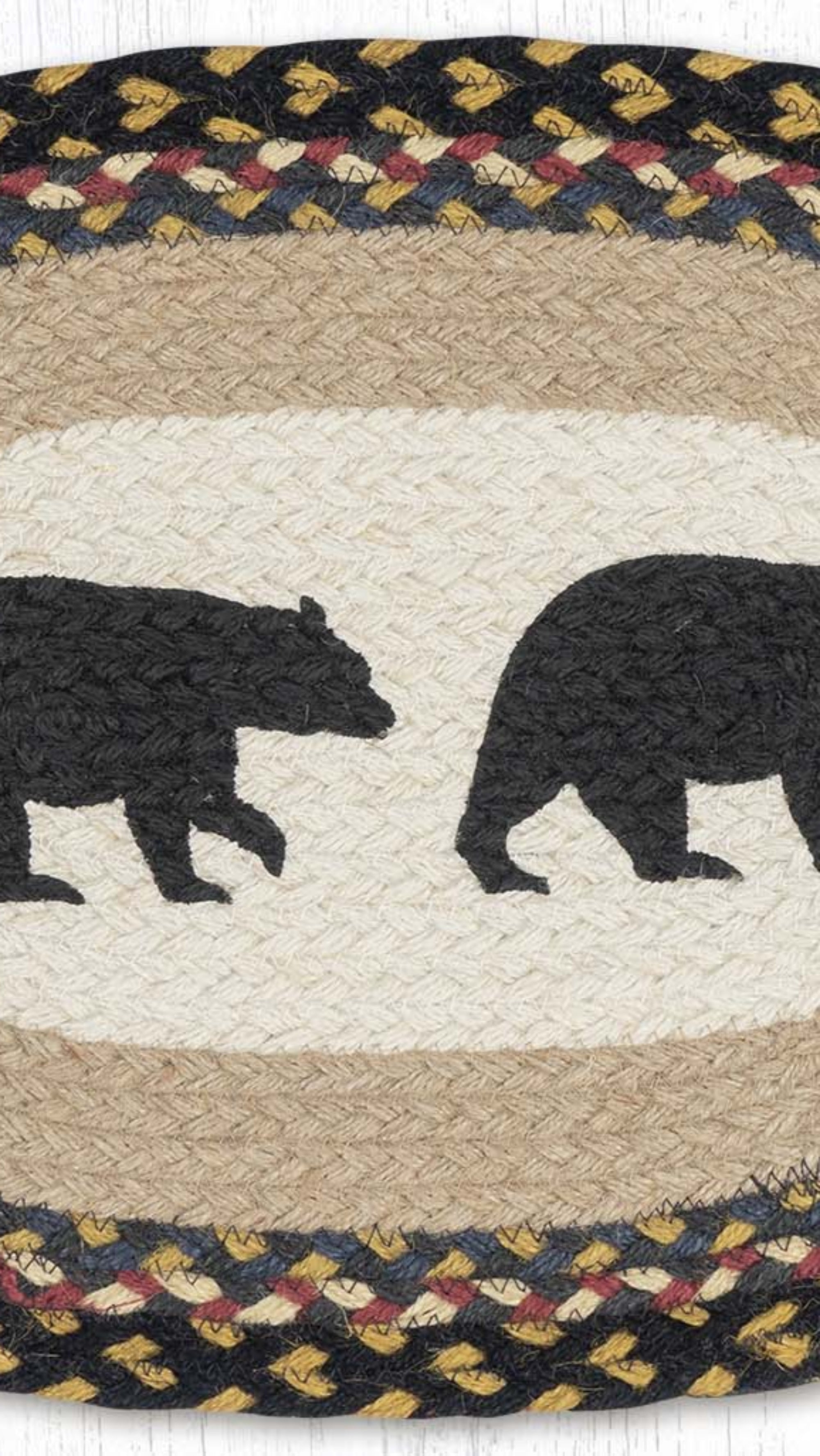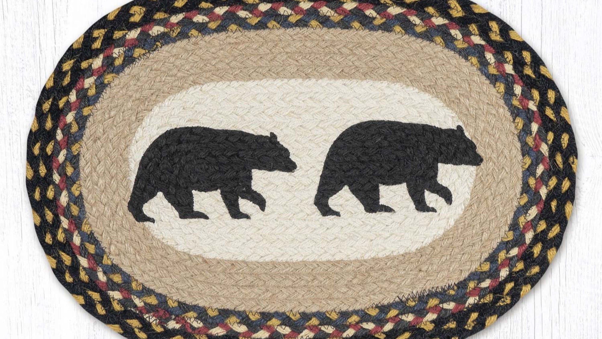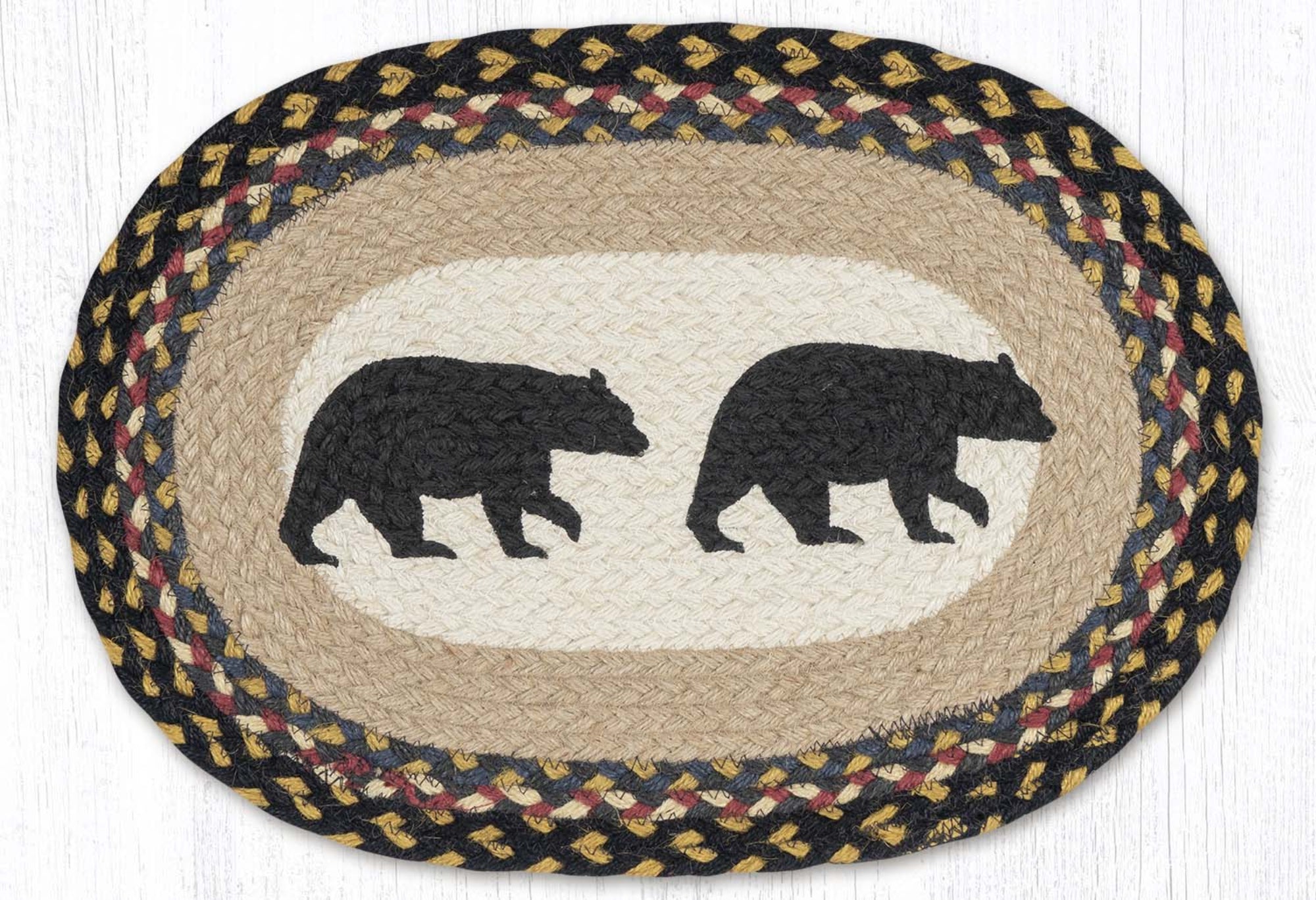 Earth Rugs Braided Jute Oval Placemat with American Bear Print 13"x19"
