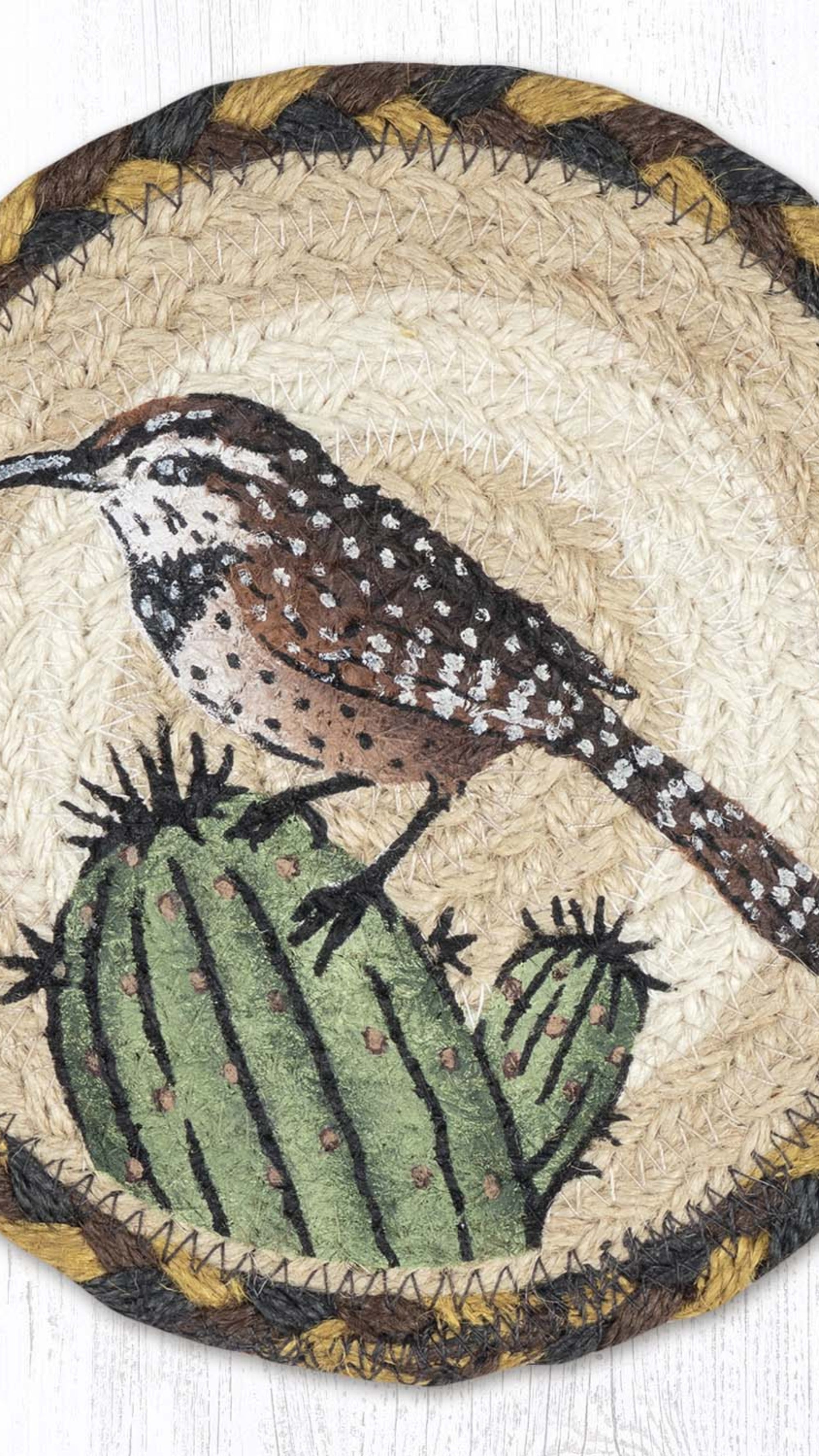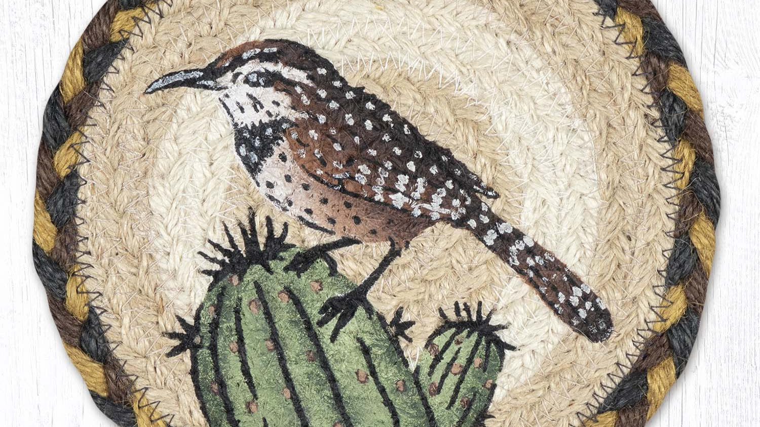 Earth Rugs Cactus Wren Bird Round 7" Coaster – Country Cabin & Rustic Lodge Decor