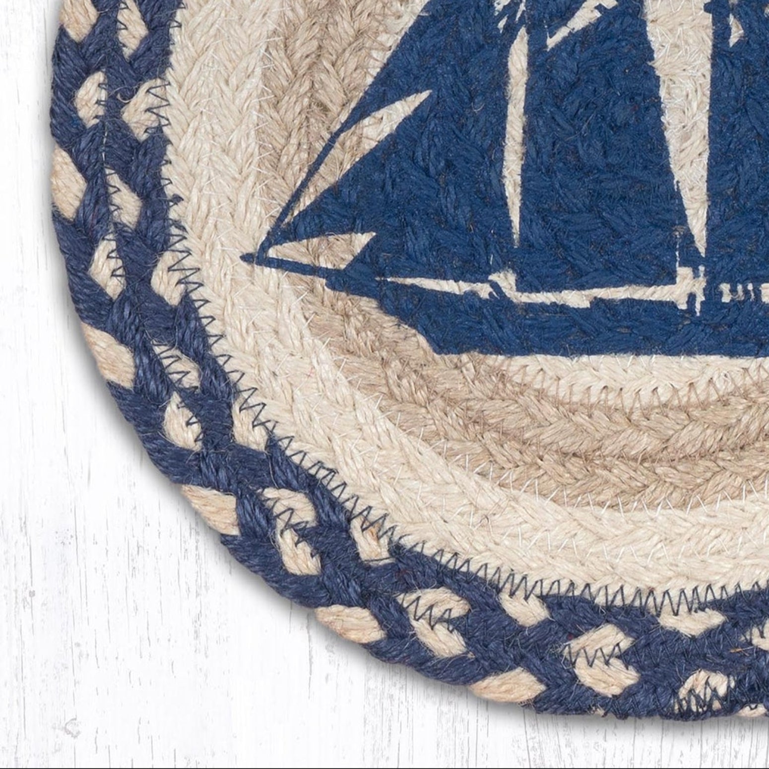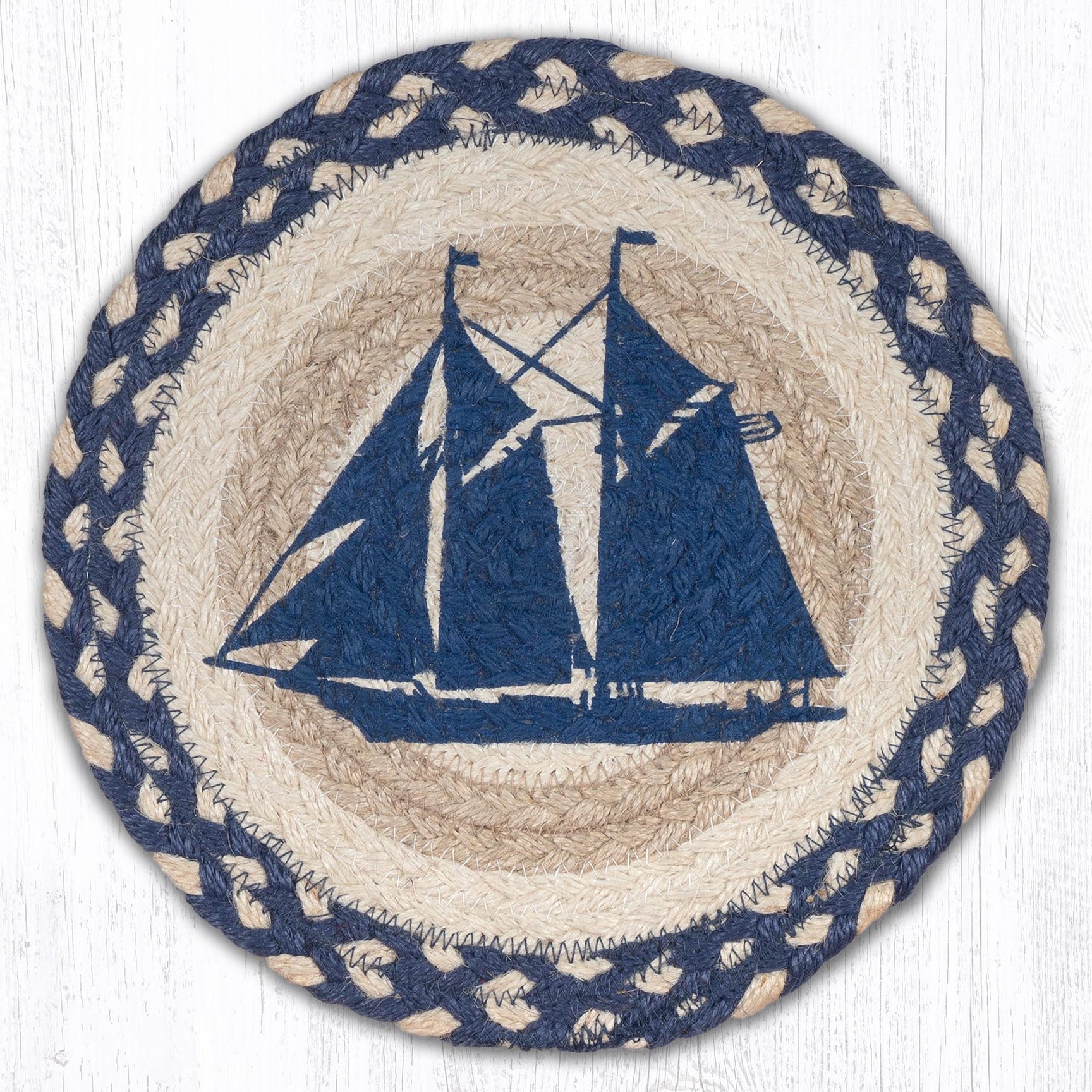 Earth Rugs Coastal Round Jute Trivet – Schooner Ship Design by Harry W. Smith