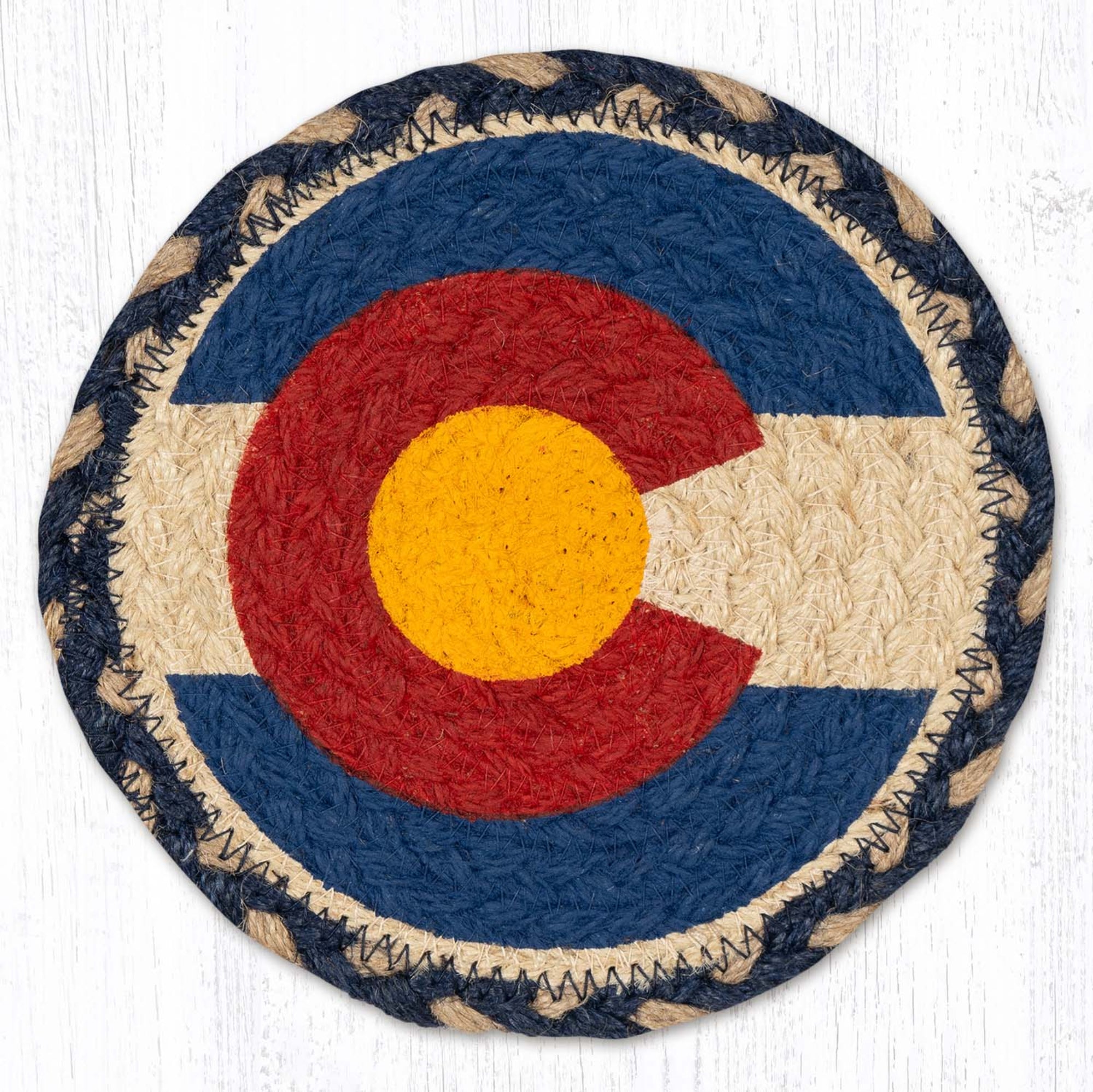SKU - ER79-881CFColorado Flag Round Coaster – Farmhouse Country Tabletop Mat 7"