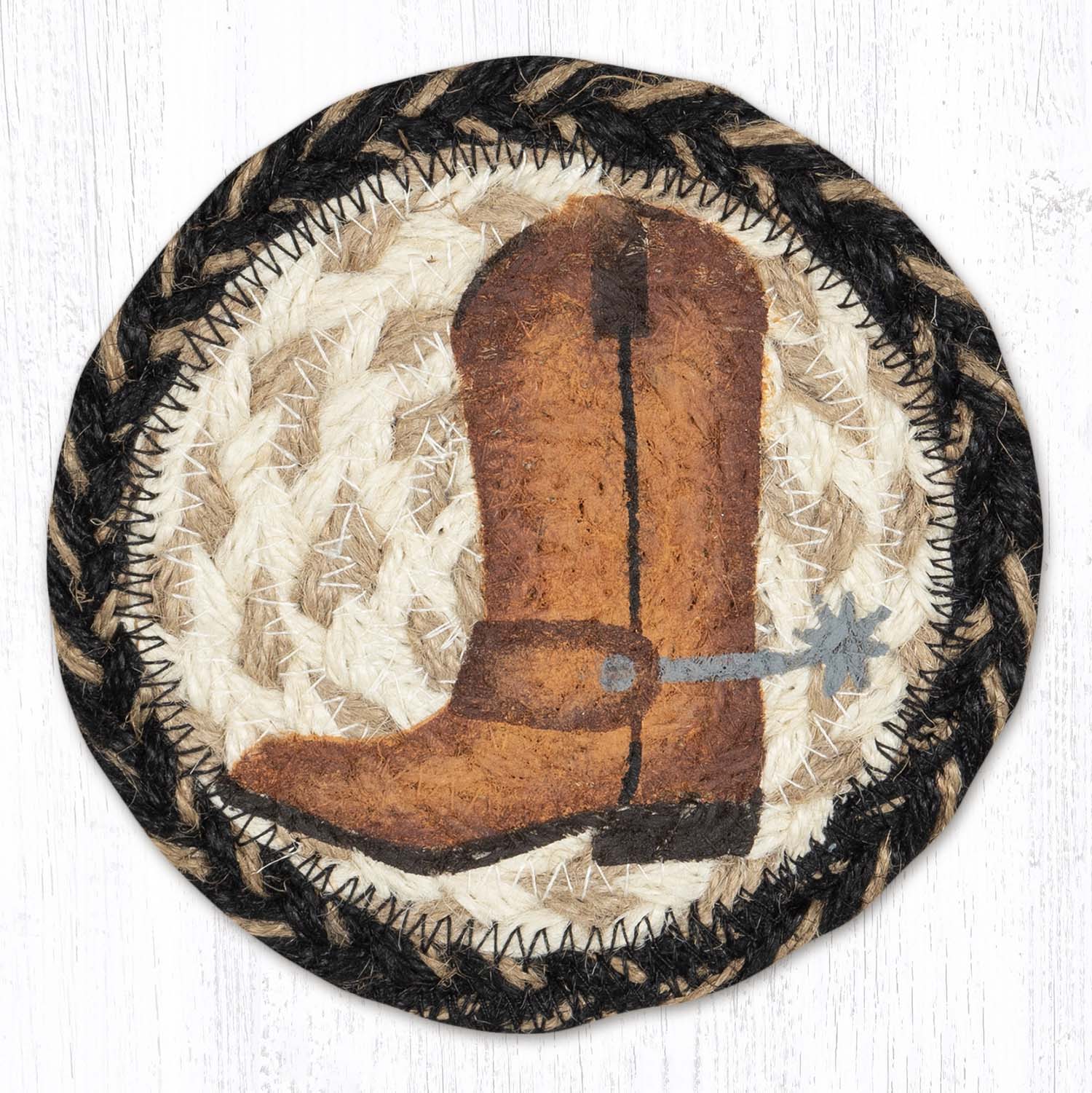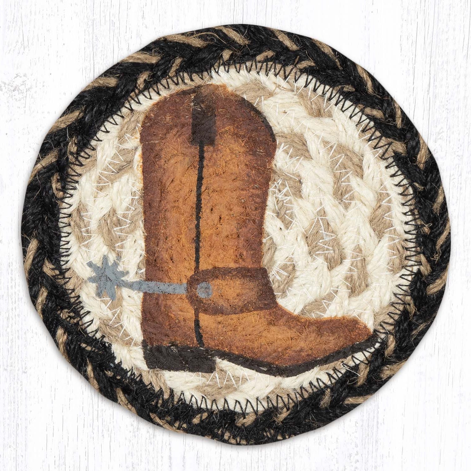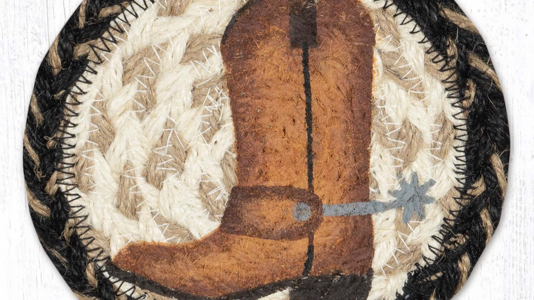Add a dash of western charm to your tabletop with the Earth Rugs Cowboy Boot Printed Coaster, a rugged 5"x5" round design made from eco-friendly braided jute. Featuring a striking cowboy boot print at the center, this coaster brings together durable function and rustic style—perfect for country kitchens, ranch homes, or southwestern-themed spaces. The natural jute braiding offers a warm, handcrafted feel, while the compact size provides easy protection for coffee tables, desks, or sideboards. Whether you’re outfitting a ranch-style dining room or gifting to a cowboy at heart, this coaster hits the mark.