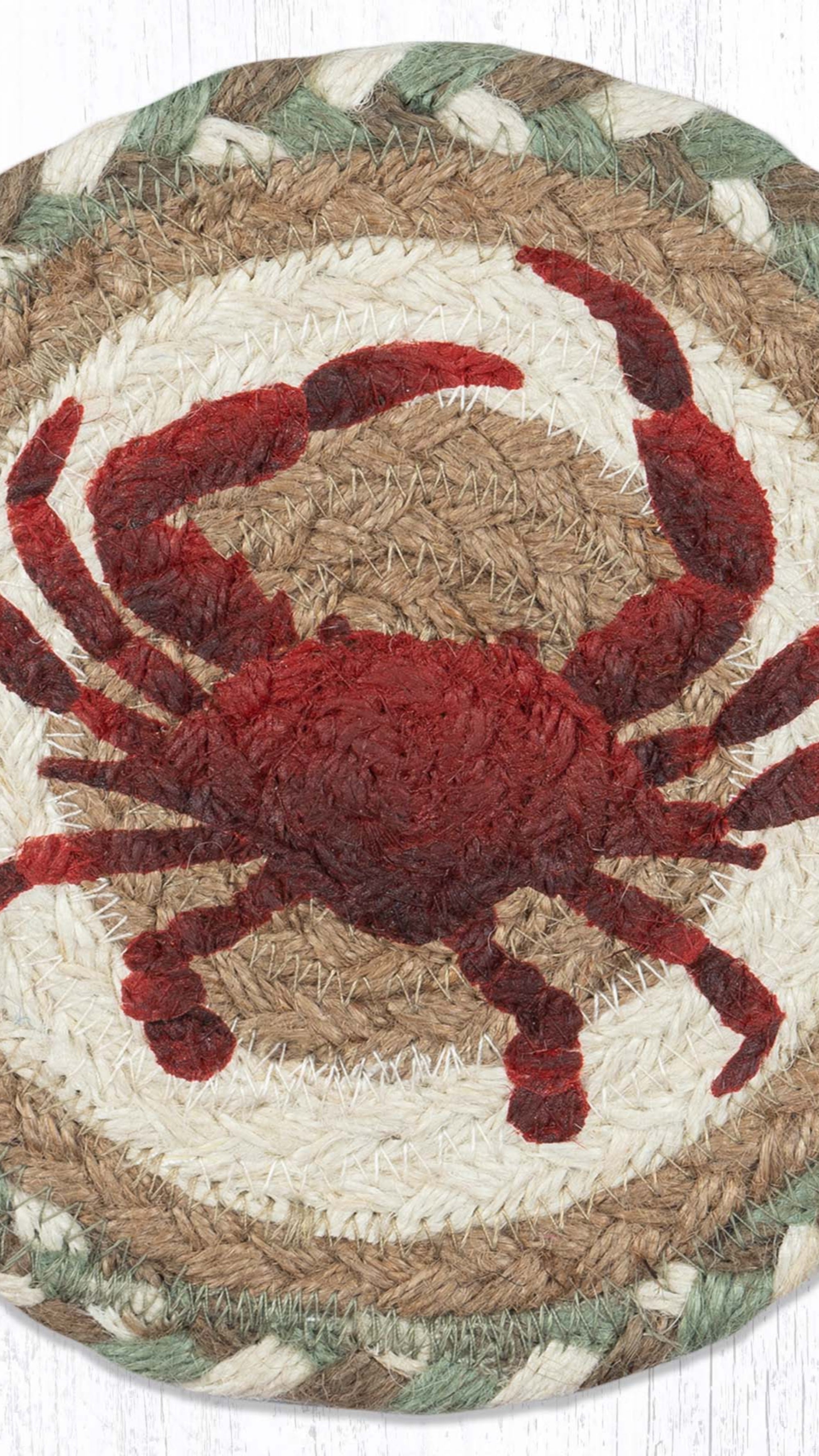 Earth Rugs Crab Round Large Coaster – 7"x7" Nautical Coastal Table Accent