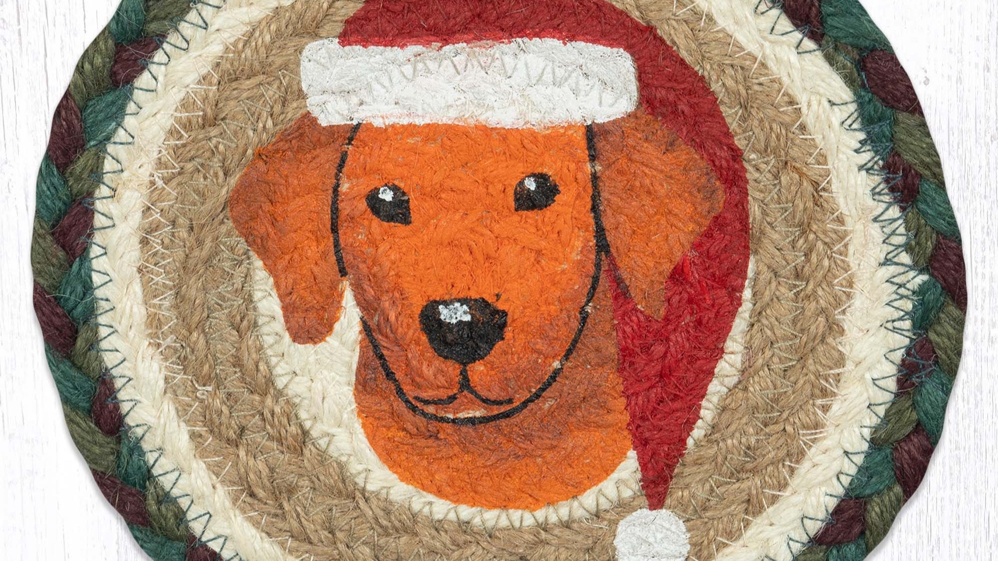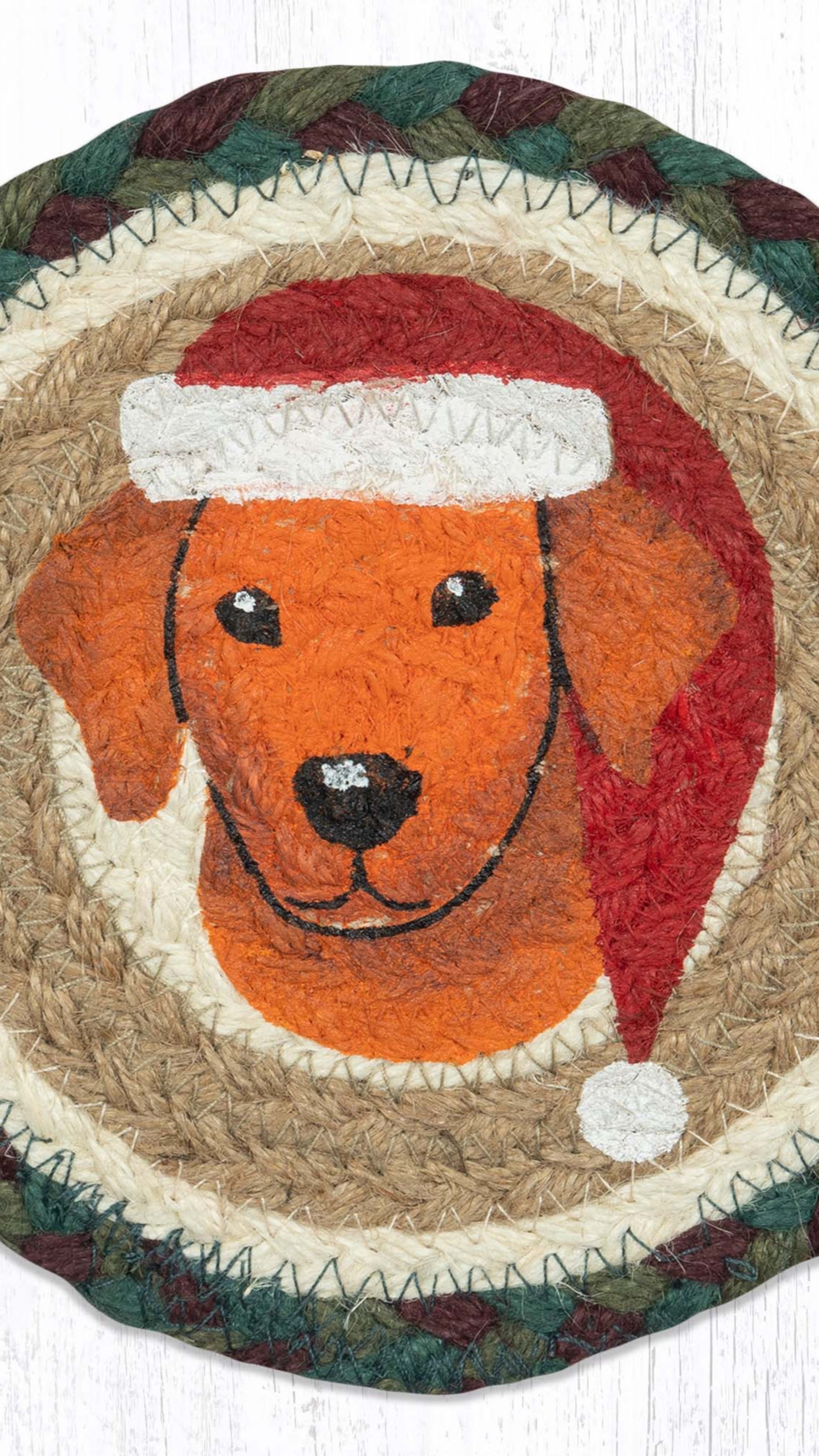 Earth Rugs Decorative Santa Dog Round Coaster 7" Seasonal Farmhouse Drink Mat
