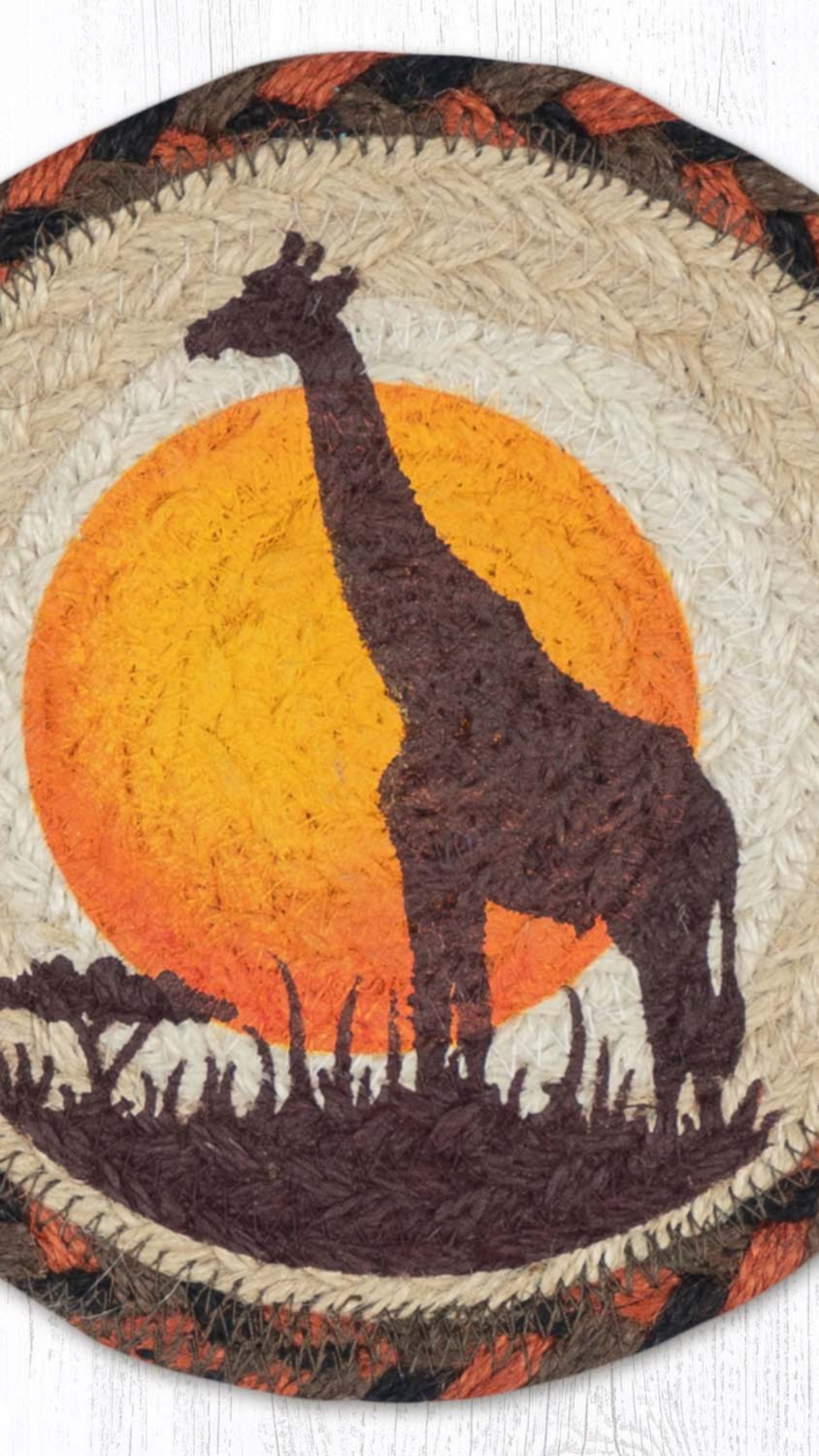 Earth Rugs Durable Giraffe Round Coaster – Rustic 7" Safari-Inspired Tabletop Protector