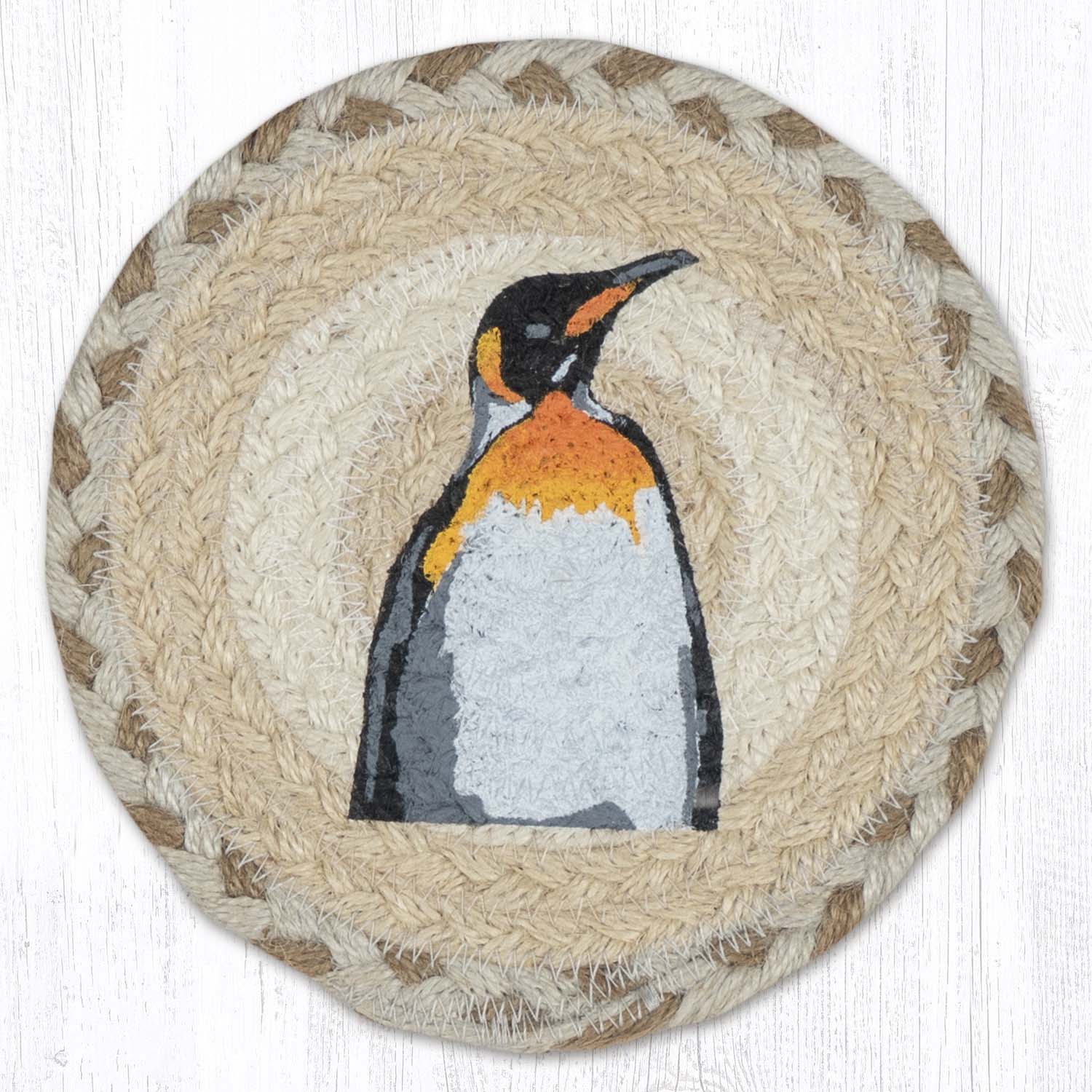 Earth Rugs Durable Penguin Round Coaster – Large 7" Rustic Wildlife Tabletop Protector