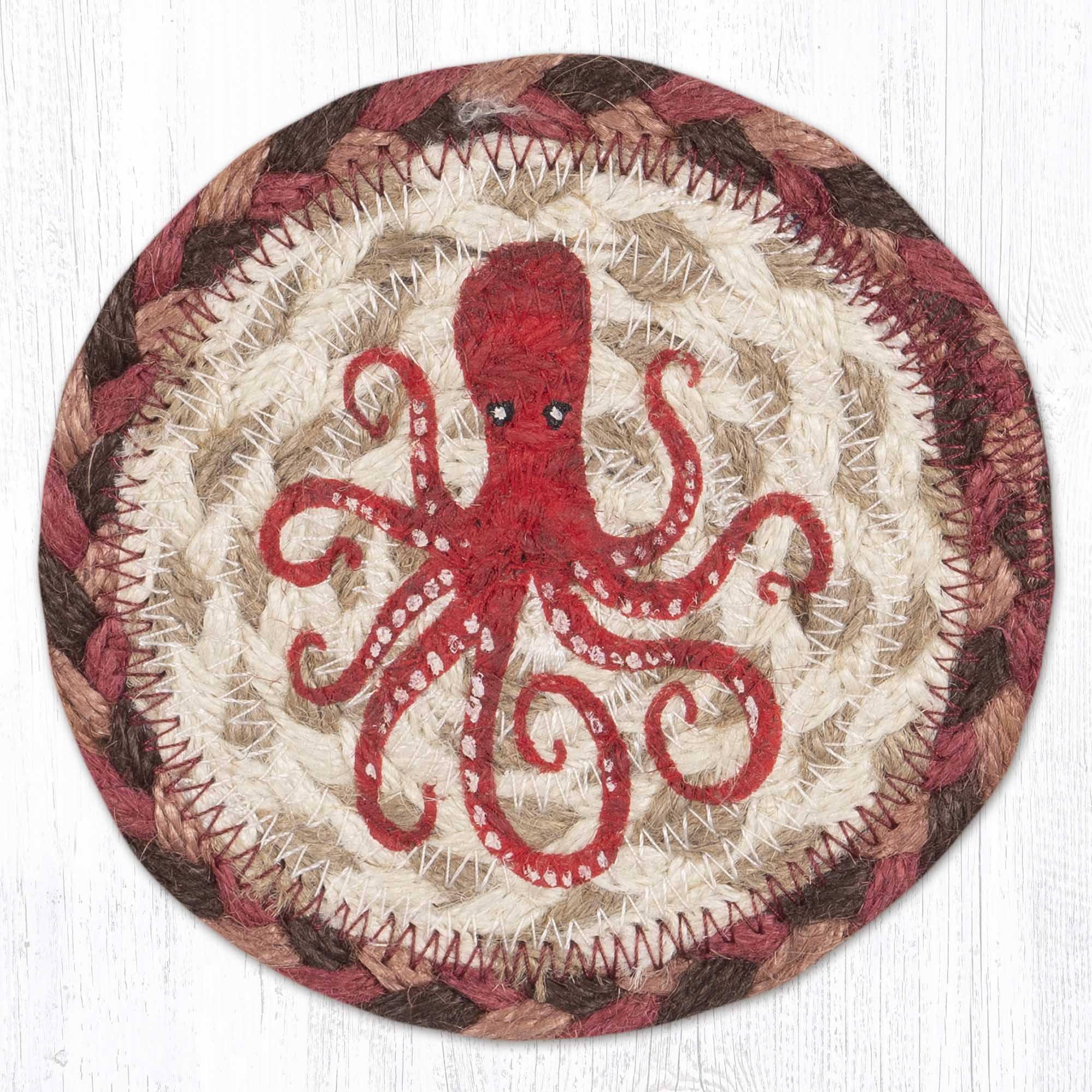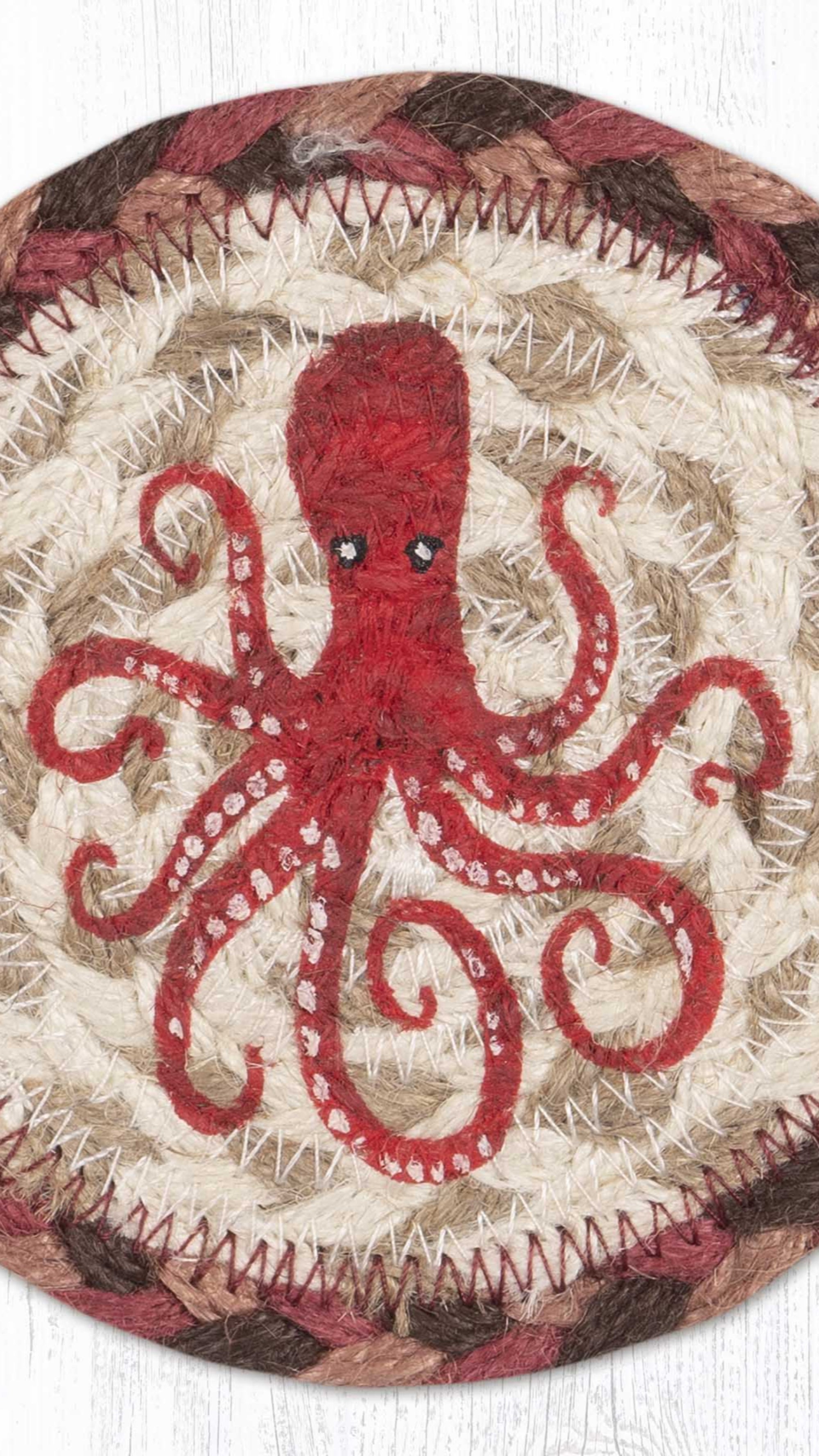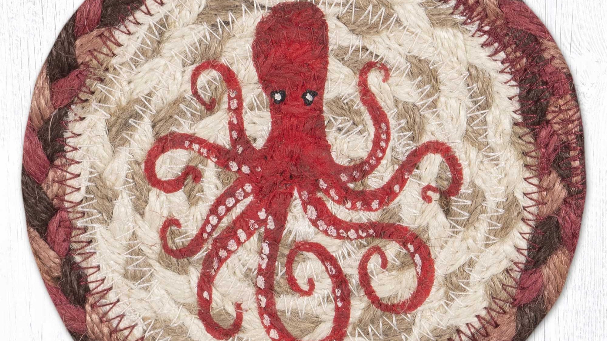 Earth Rugs Durable Red Octopus Coaster – Rustic Nautical Kitchen Accent 5"x5"