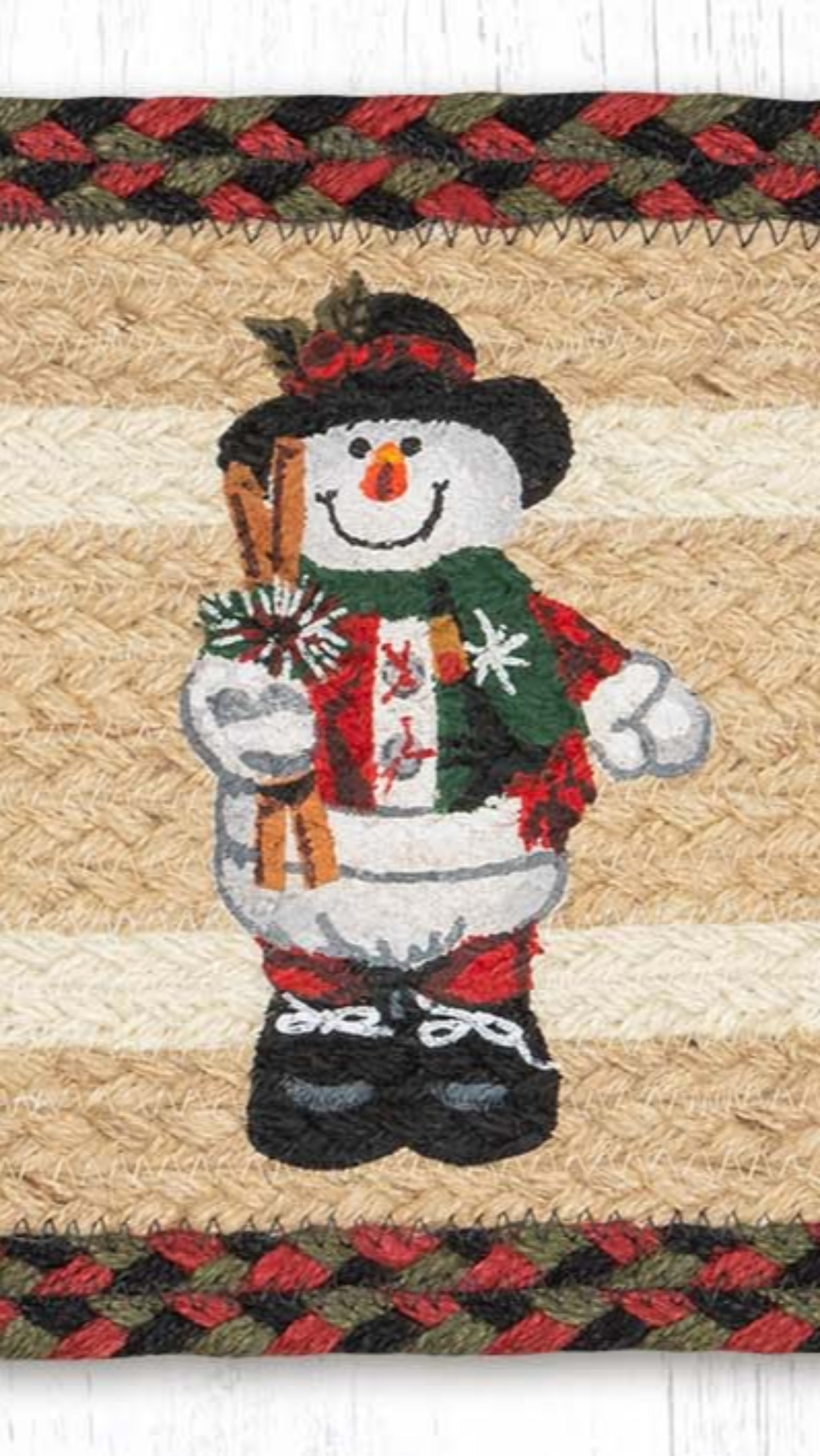 SKU - ER49-ST081STHEco-Friendly Jute Snowman with Top Hat Oval Stair Tread 27"x8.25"