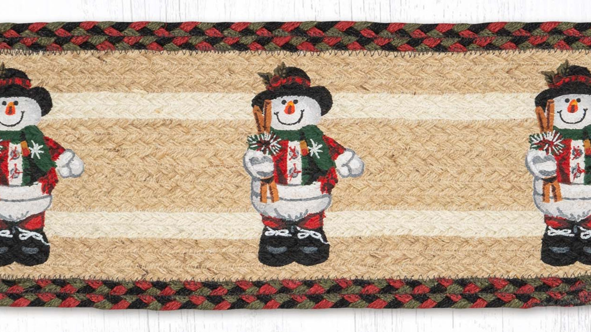 christmas jute stair tread,christmas snowman stair runner,eco friendly stair tread,farmhouse winter stair protector,festive oval stair protector,handwoven oval stair tread,holiday rustic stair cover,natural jute holiday stair mat,rustic snowman stair mat,snowman stair cover,snowman with top hat stair tread,winter decor stair rug