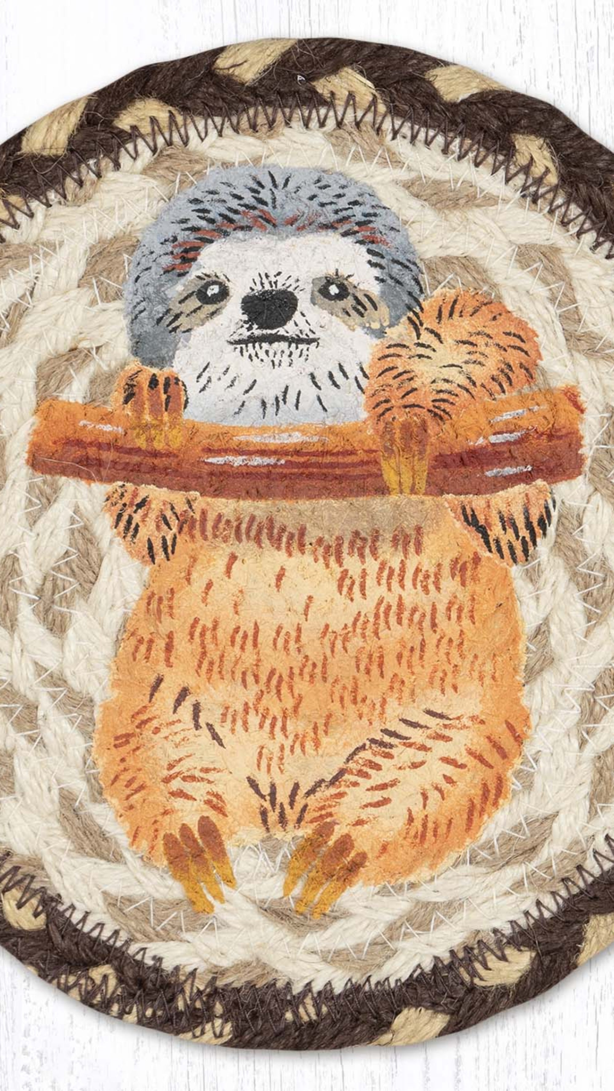 Earth Rugs Eco-Friendly Sloth Round Large Coaster – Durable Rustic Accent