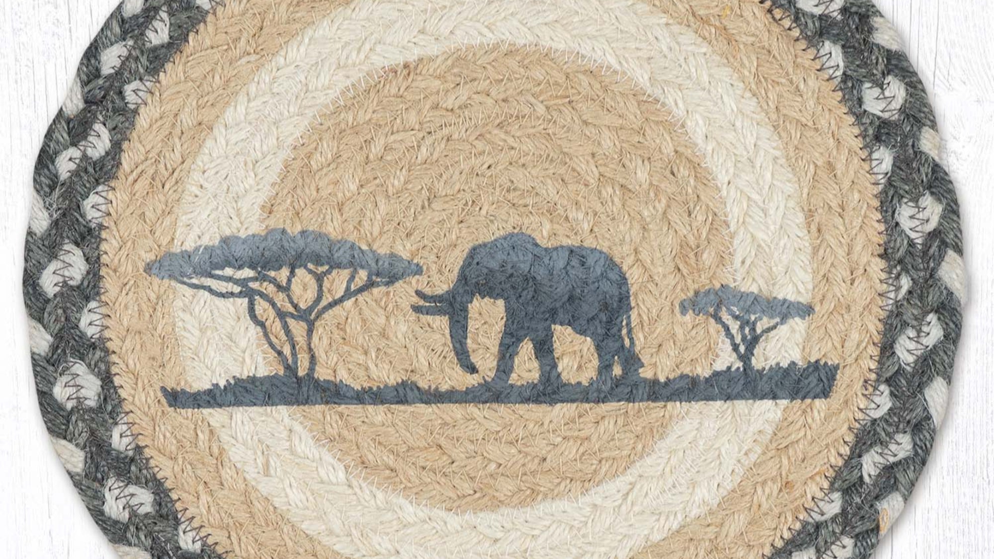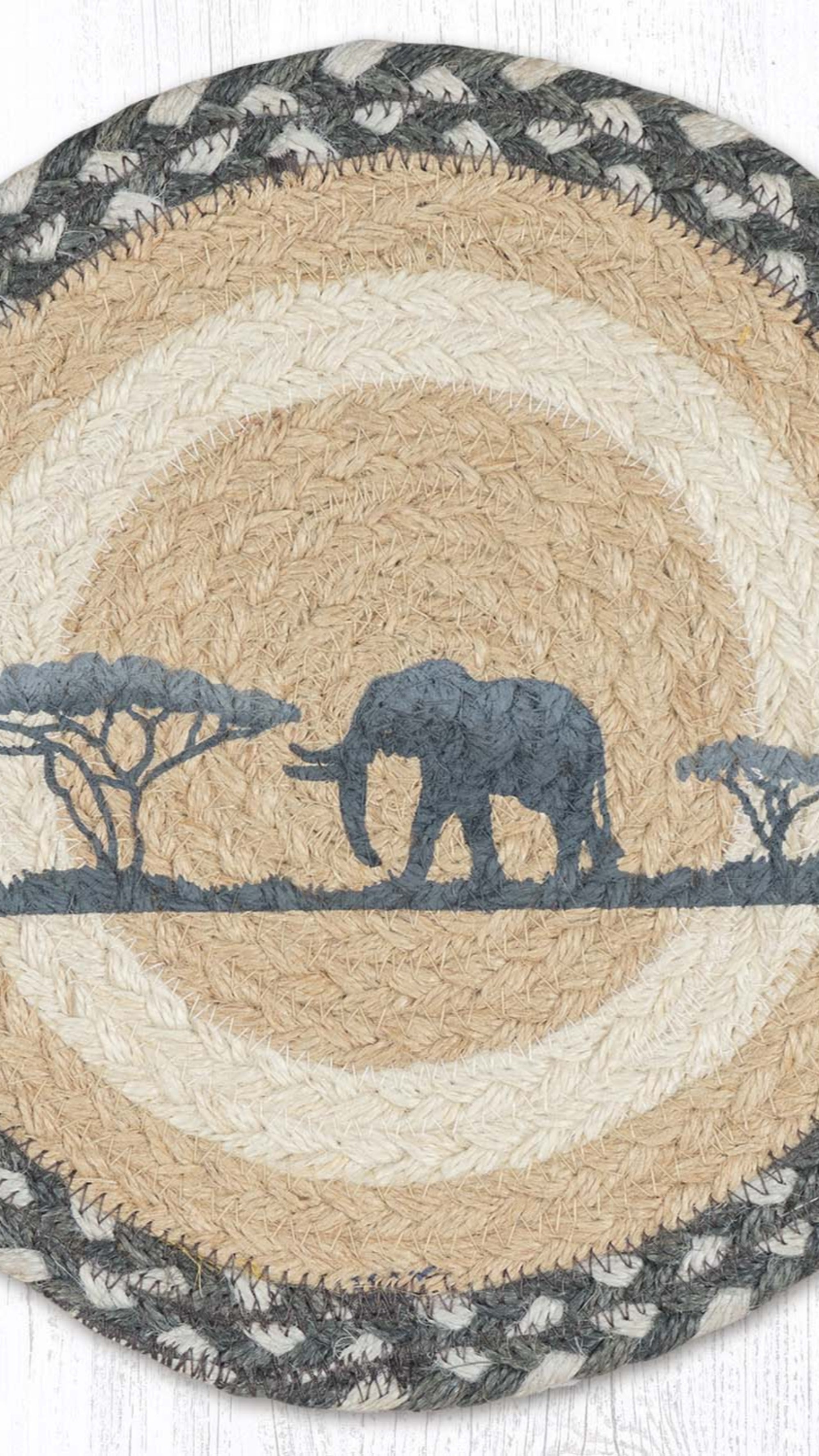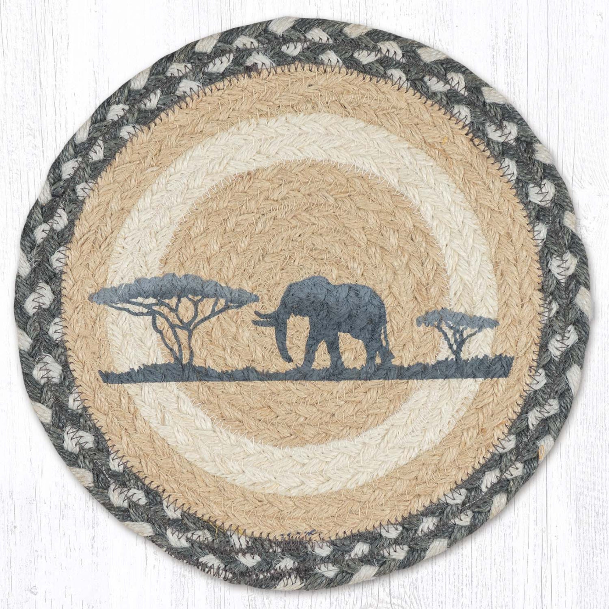 Earth Rugs Elephant Printed Round Jute Trivet – 10" Rustic Table Protector