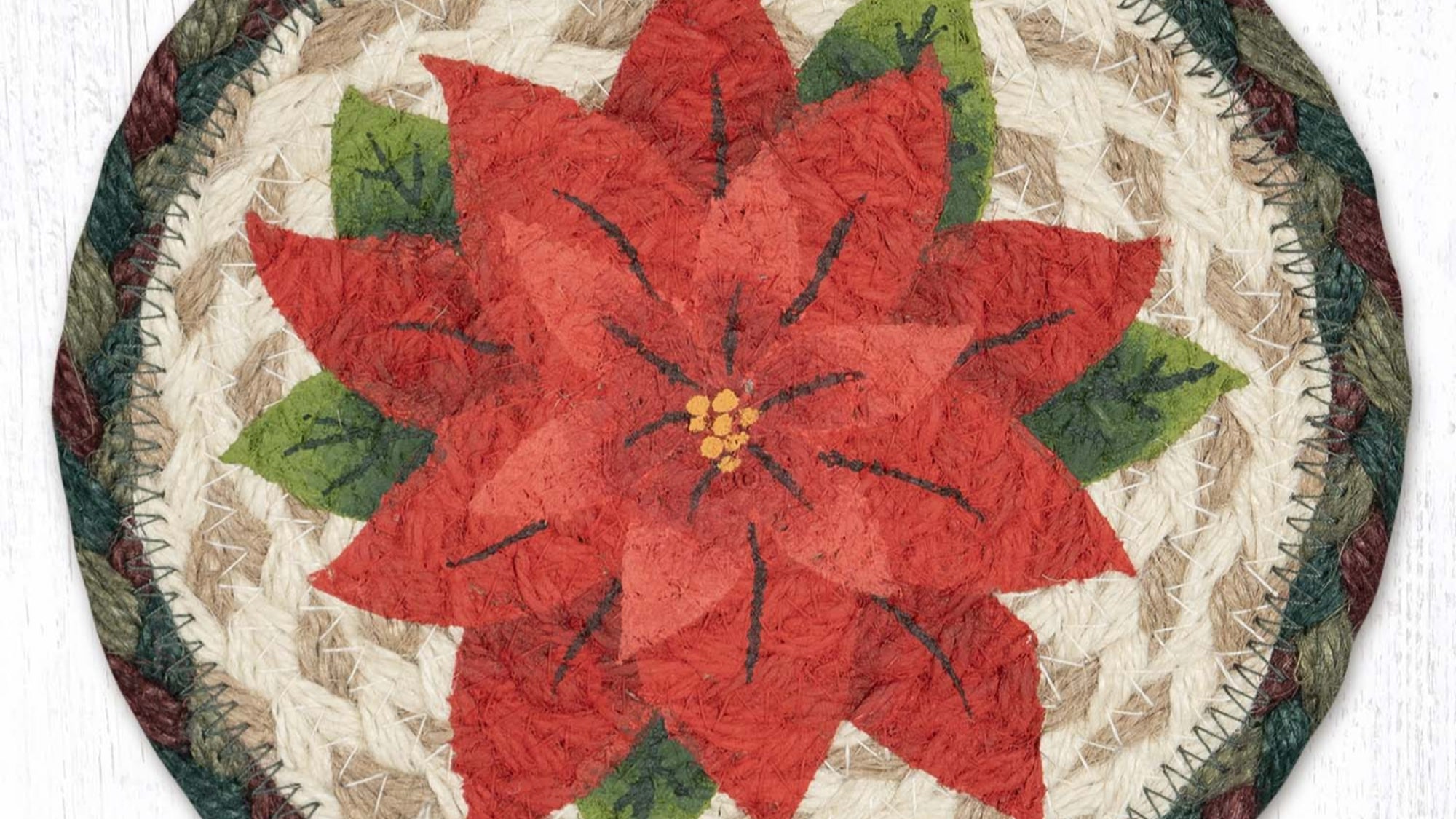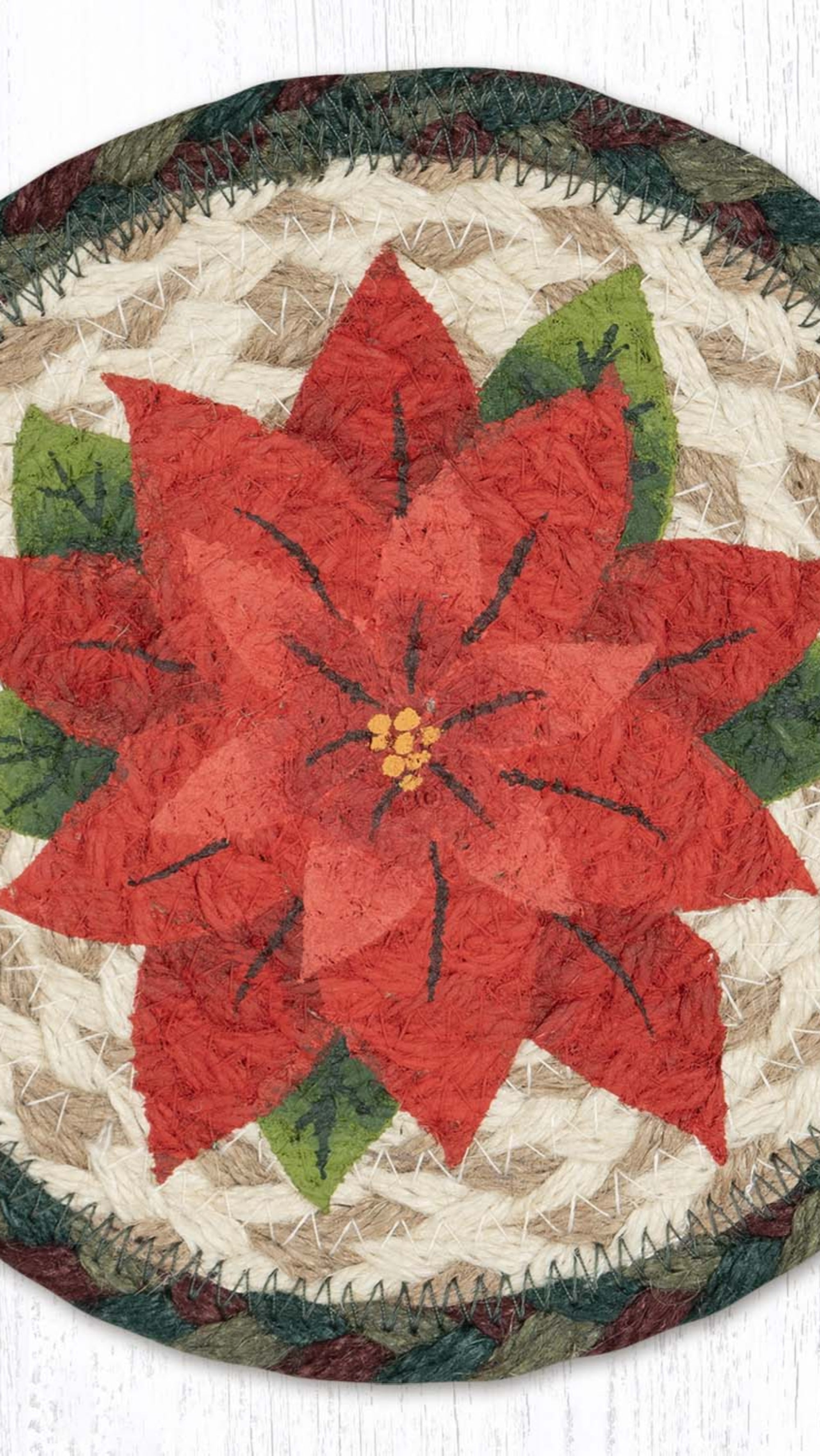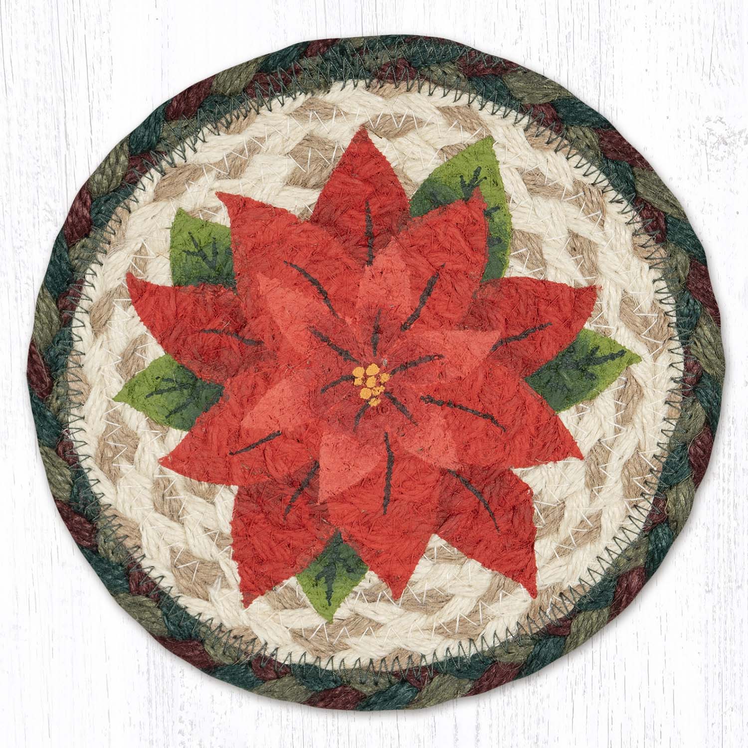 Earth Rugs Festive Red Poinsettias Round Coaster 7" Seasonal Farmhouse Drink Mat