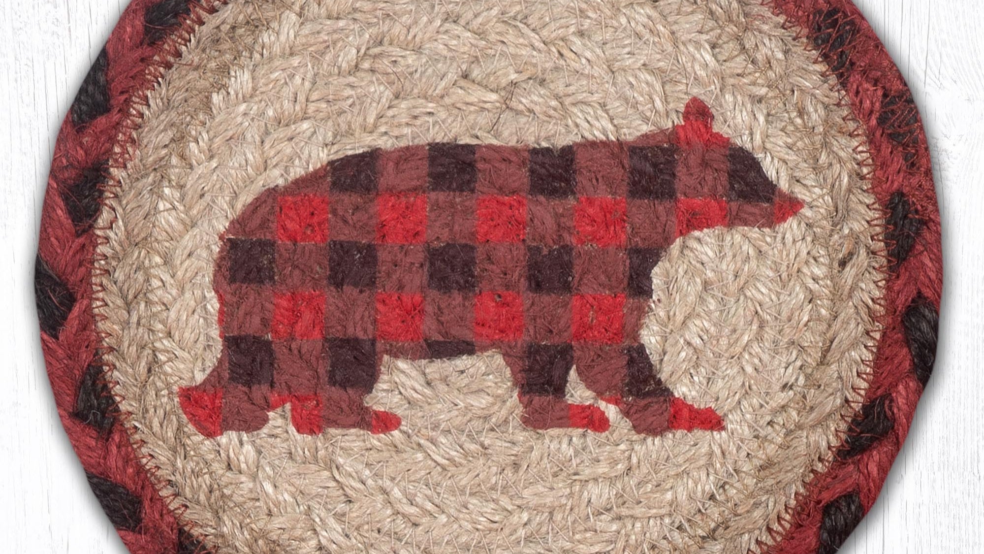 Add cozy cabin vibes to your tabletop with the Earth Rugs Flannel Bear Round Large Coaster, featuring a charming plaid bear silhouette hand-braided from natural jute fibers. At 7 inches in diameter, this large coaster blends rustic woodland appeal with a warm flannel pattern, perfect for lodge, cabin, or farmhouse décor. The durable braided jute construction protects your furniture while bringing a soft, textured accent to coffee tables, kitchen counters, or porch settings. Whether used for everyday drinkware or as a decorative piece, this coaster enhances any nature-inspired space with comforting charm.