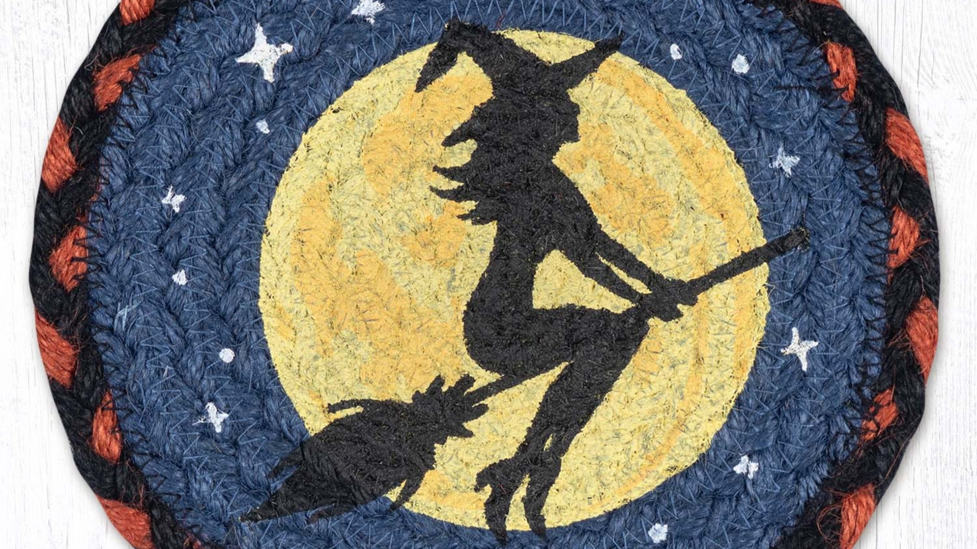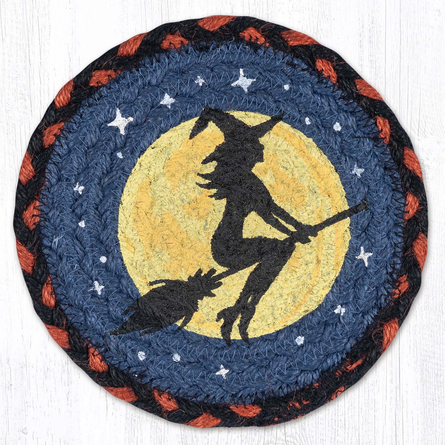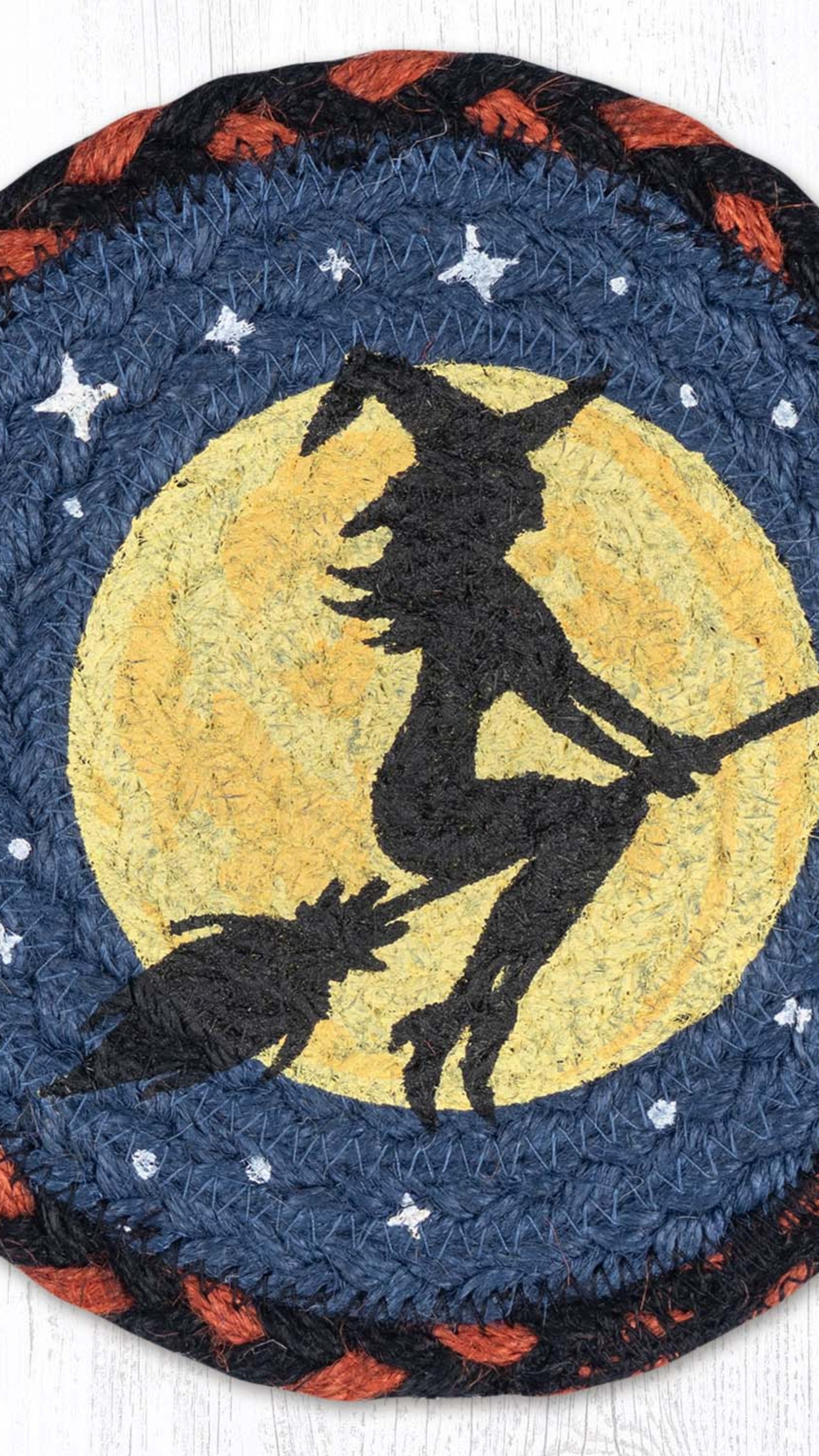 Earth Rugs Flying Witch Round Large Coaster 7" Rustic Halloween Table Accent