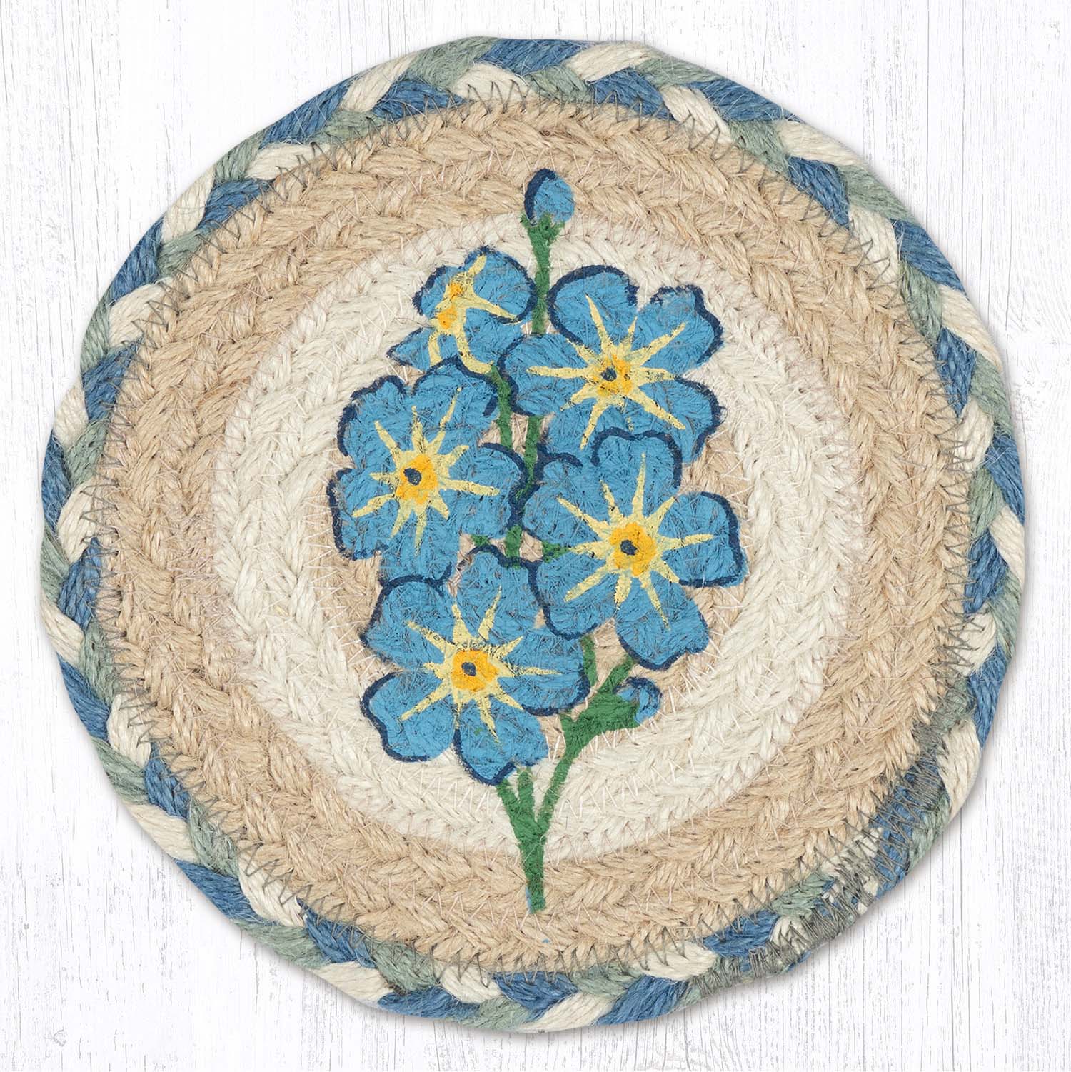 Earth Rugs Forget Me Not Round Coaster 7" Heat-Resistant Surface Protector