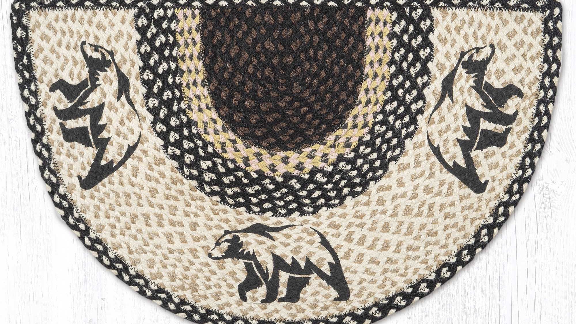 Bring the beauty of the wilderness indoors with the Earth Rugs Graphic Bear Printed Slice Rug. Featuring a bold, eye-catching bear design, this half-moon rug adds rustic charm and personality to your entryway, kitchen, or cabin-style space.
