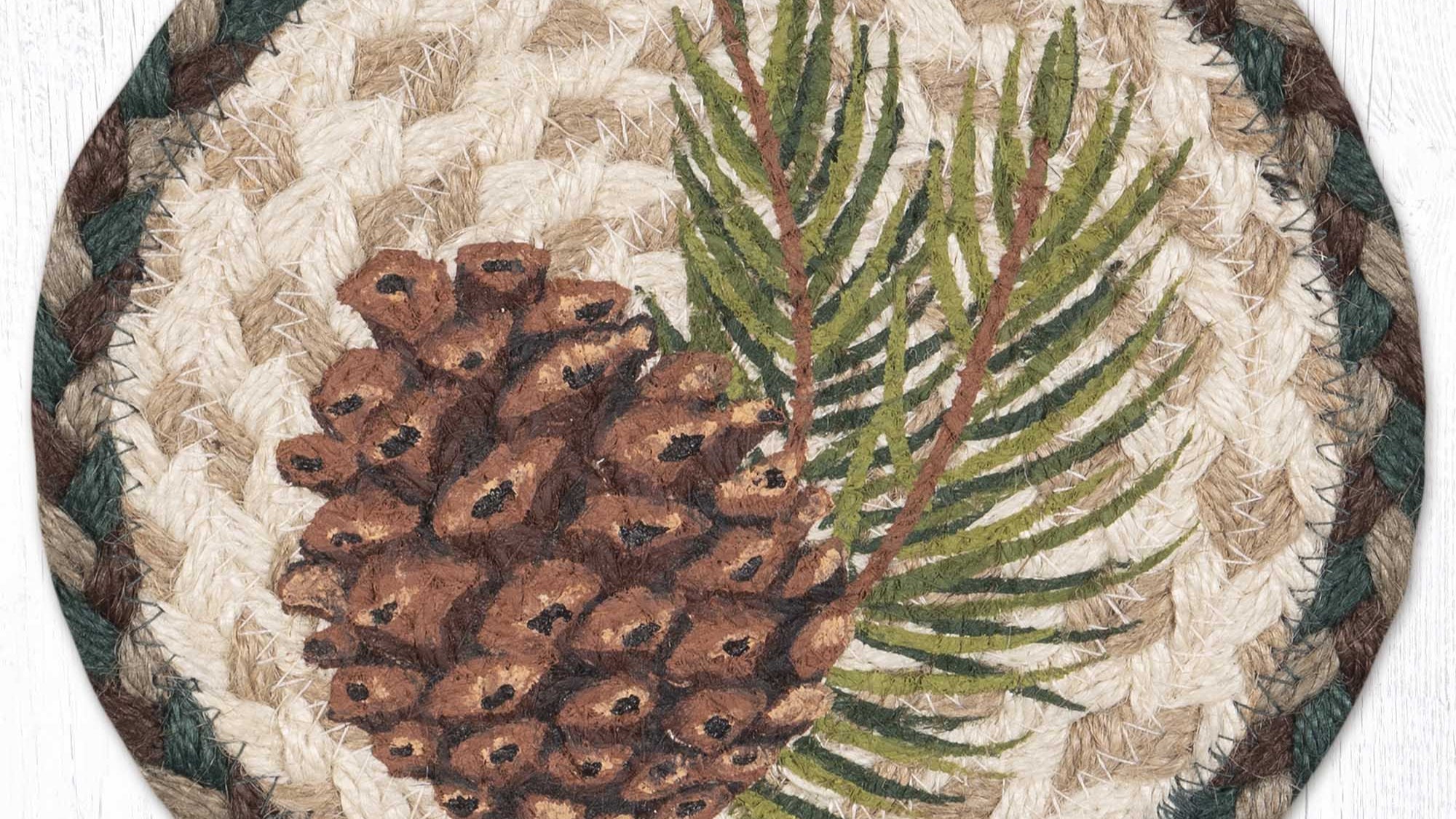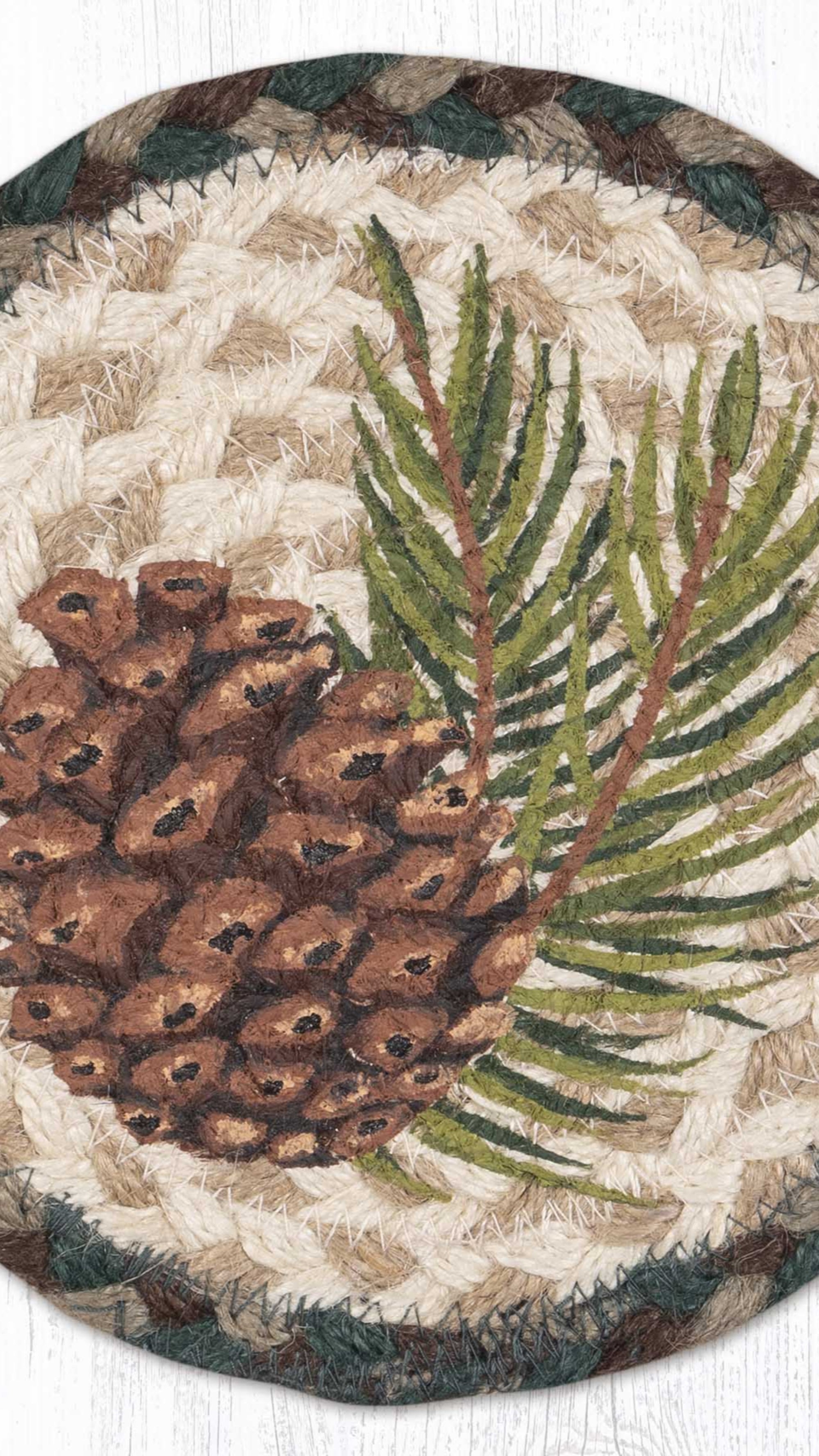 Earth Rugs Graphic Pinecone Round Large Coaster 7" Rustic Lodge Table Accent