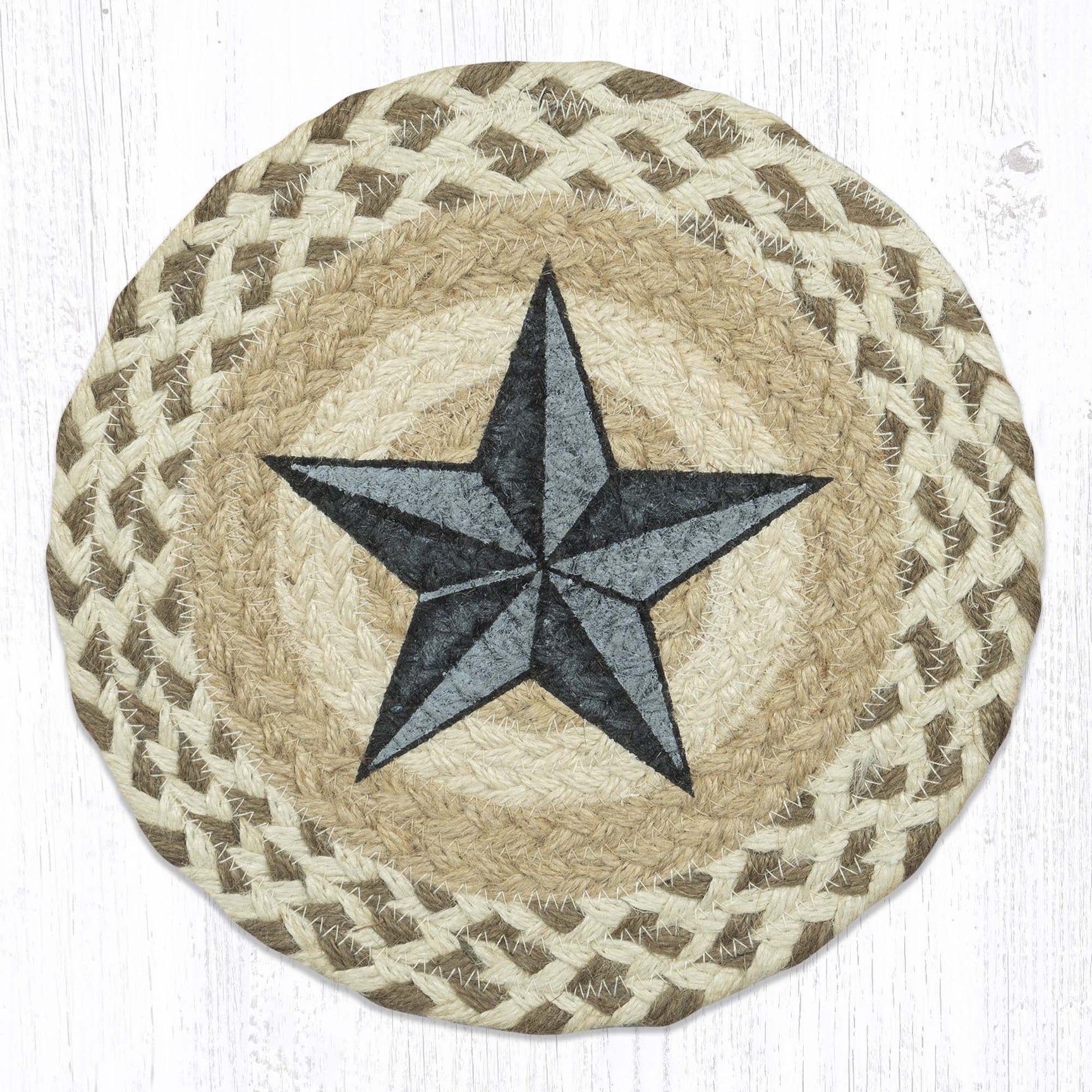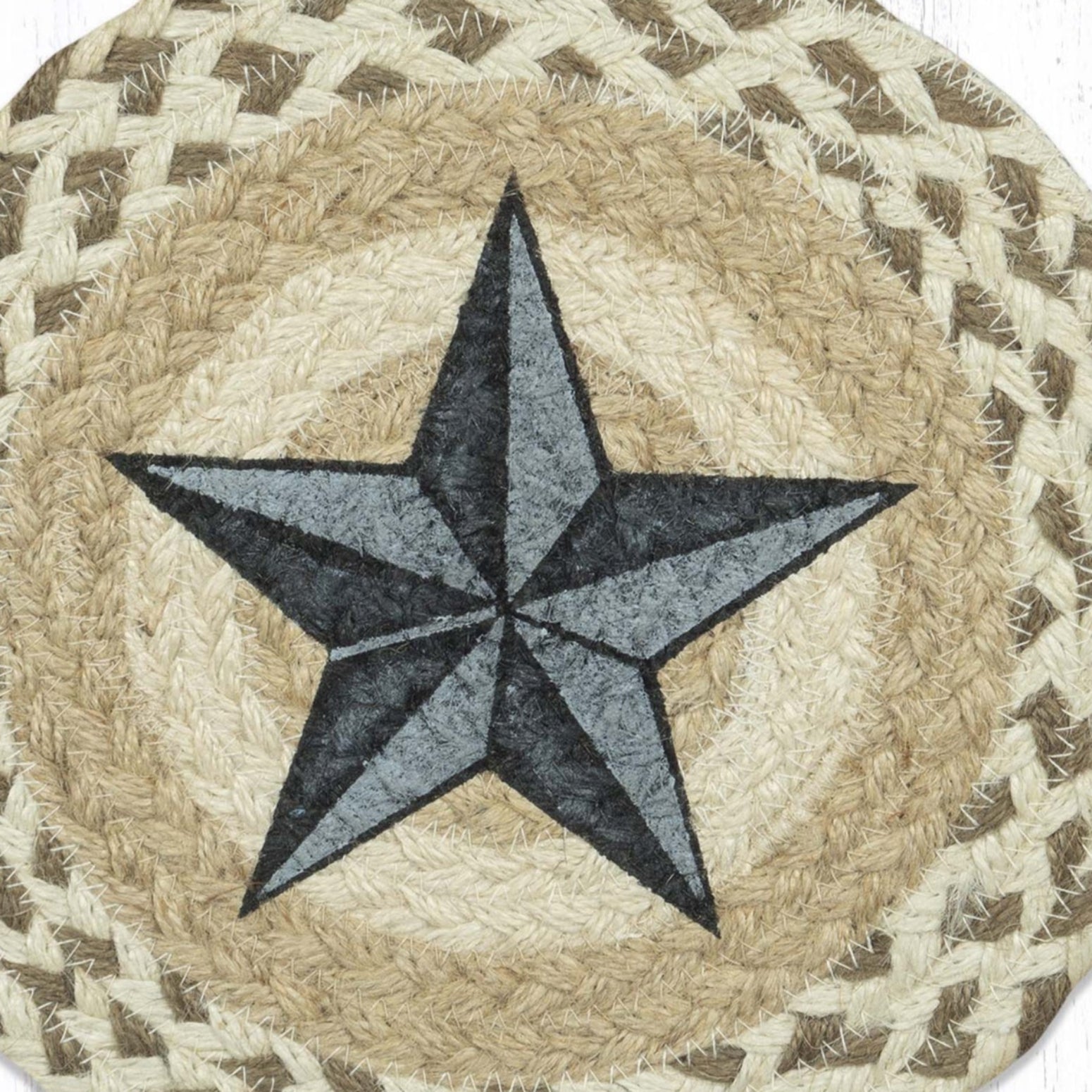 SKU - ER80-662BBSEarth Rugs Hand-Stenciled Barn Star Jute Trivet – Natural Fiber Hot Pad for Country Kitchens