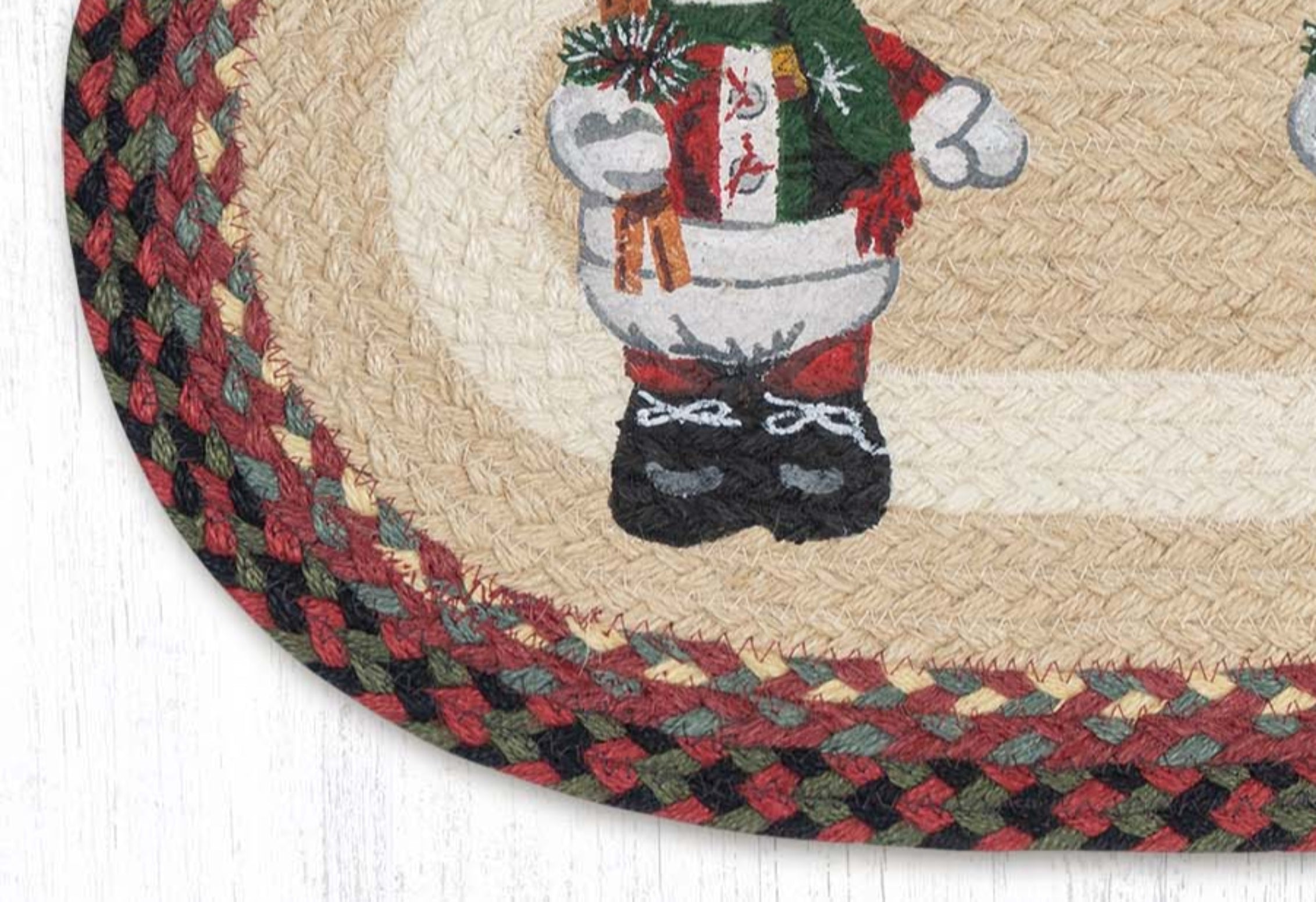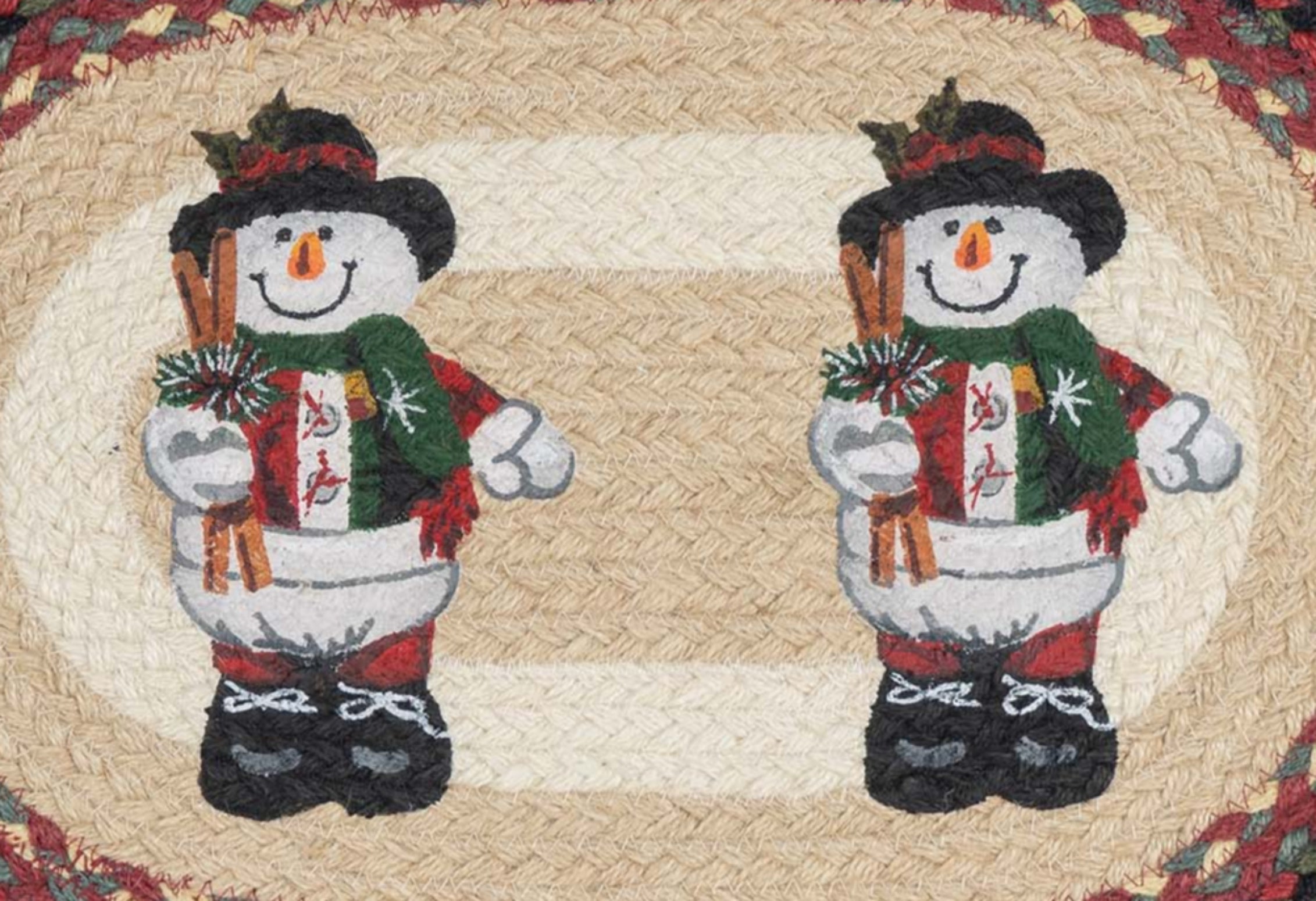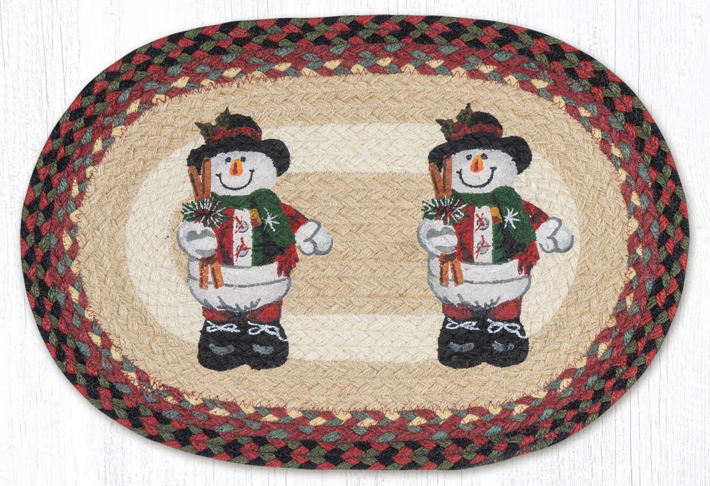 Earth Rugs Handmade Christmas Table Mat – Natural Jute with Snowman in Top Hat
