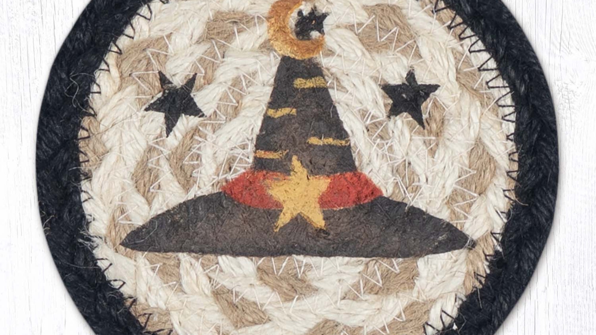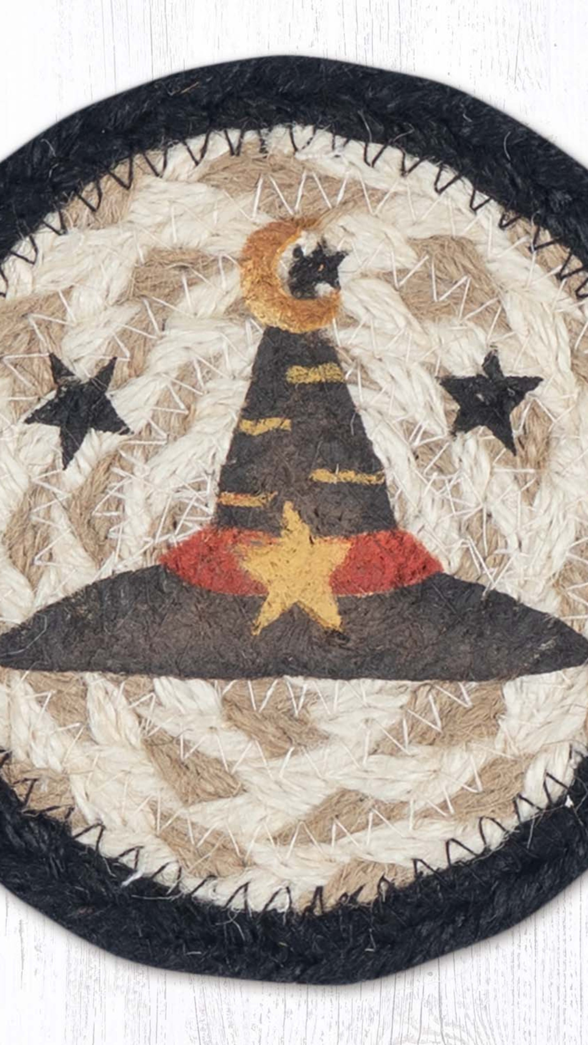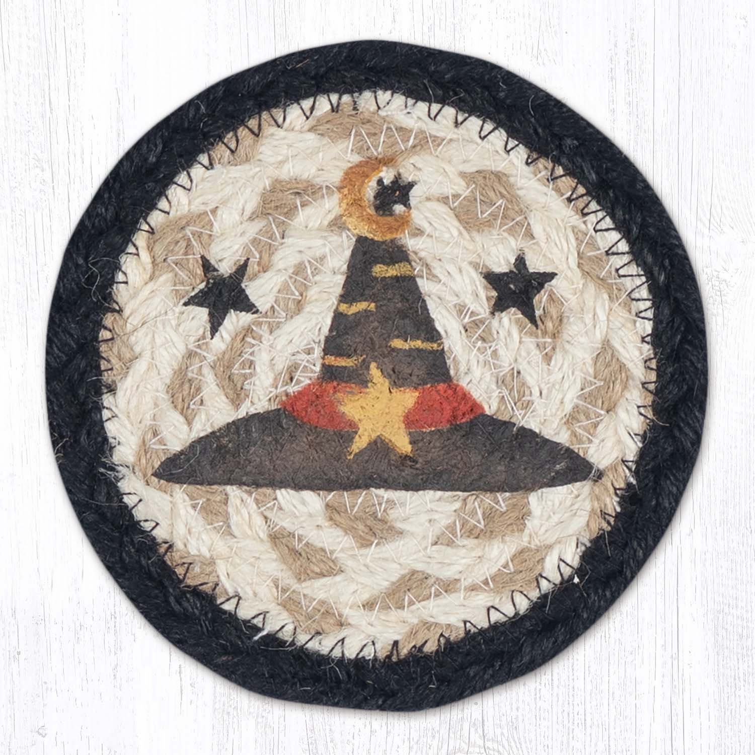 Earth Rugs Handmade Witch Hat Coaster – Rustic 5" Farmhouse Holiday Accent