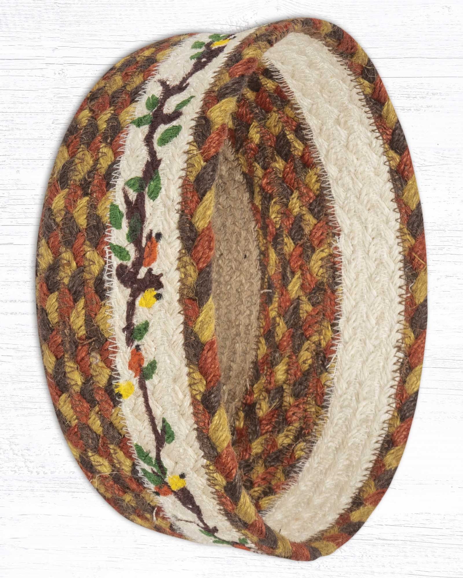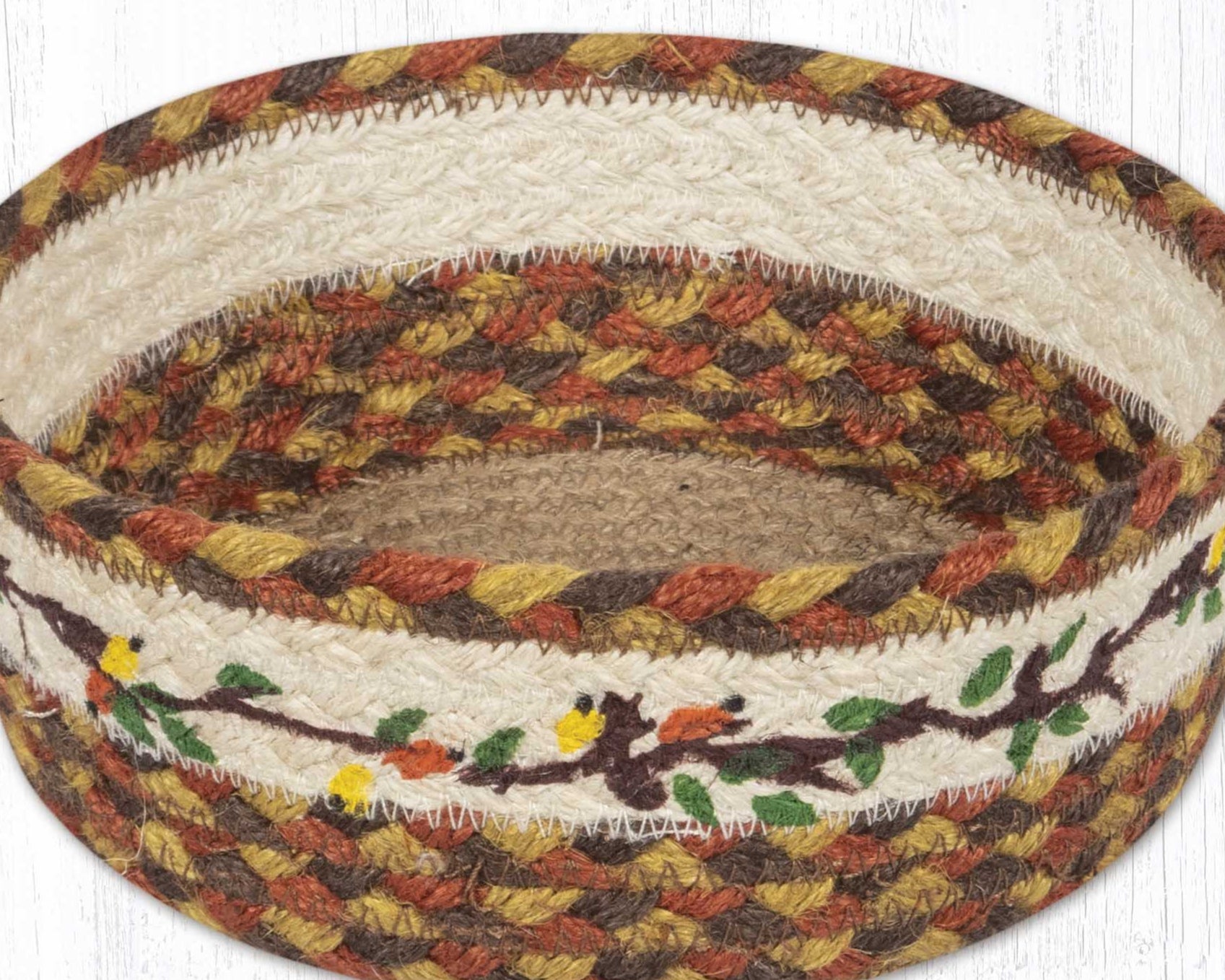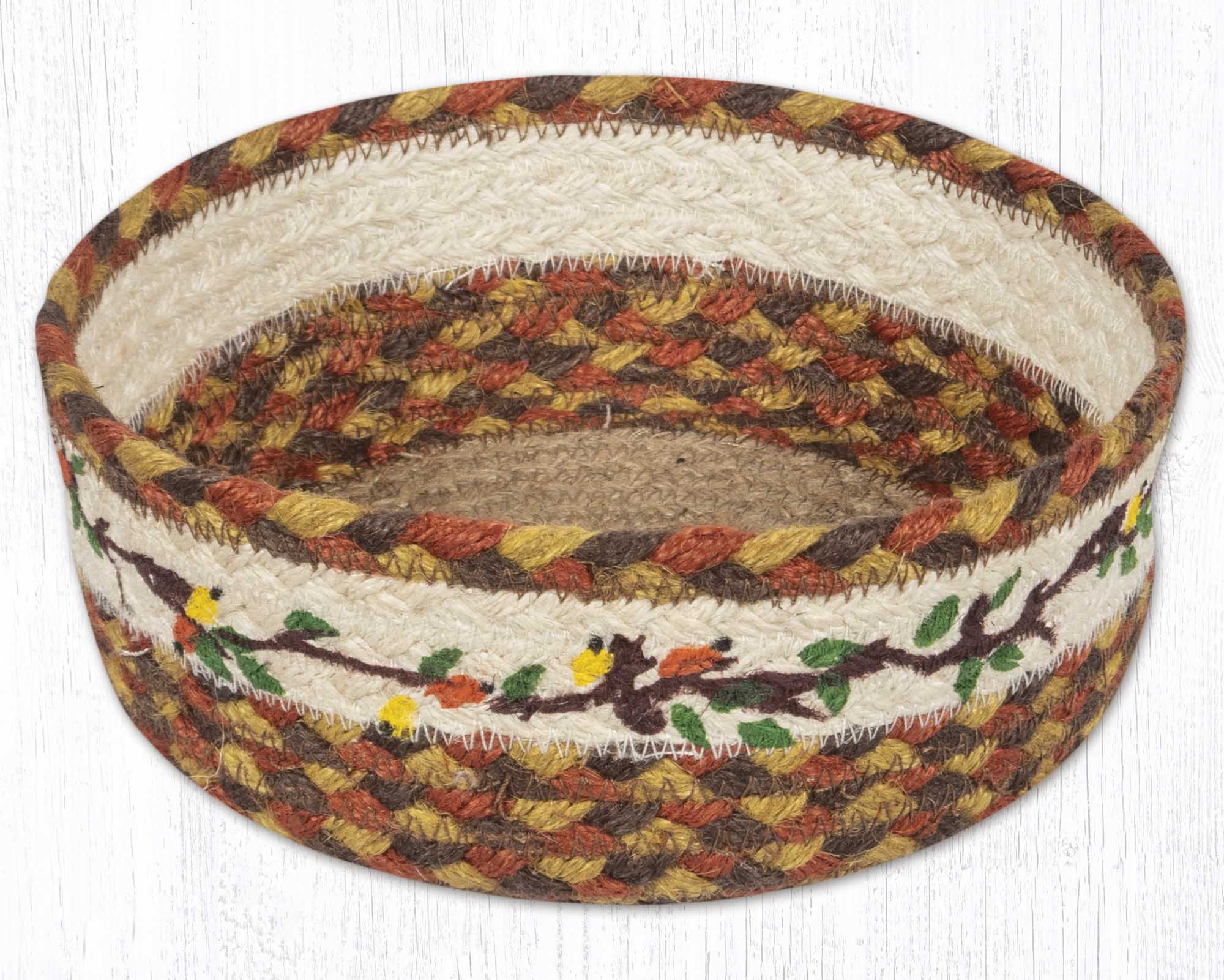 Earth Rugs Harvest Border Round Printed Casserole Basket – Braided Jute 8"x3" Autumn Serving & Storage Bowl