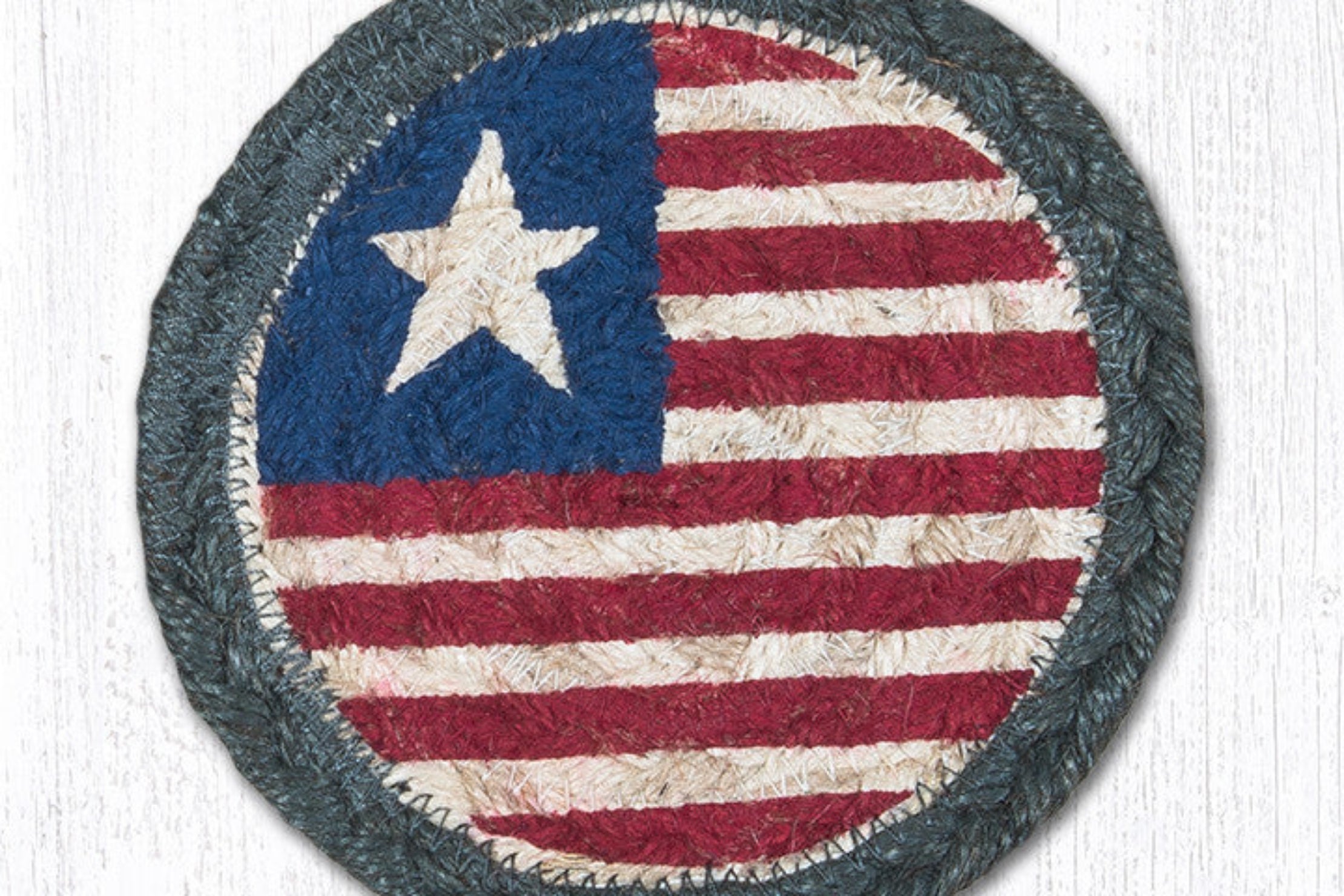 Earth Rugs Original Flag Printed Coaster – 5"x5" Braided Jute Square with Vintage American Flag Design for Patriotic Decor