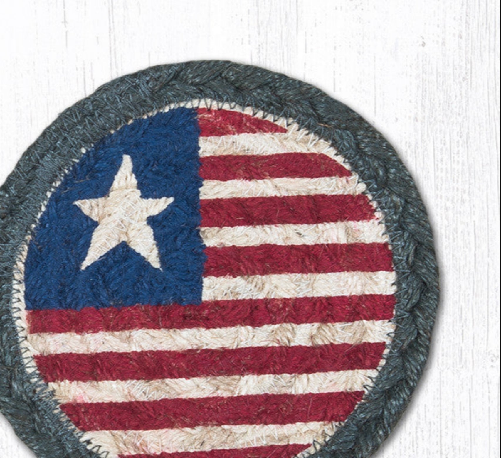 SKU - ER31-IC1032Original Flag Printed Coaster – 5"x5" Braided Jute Square with Vintage American Flag Design for Patriotic Decor