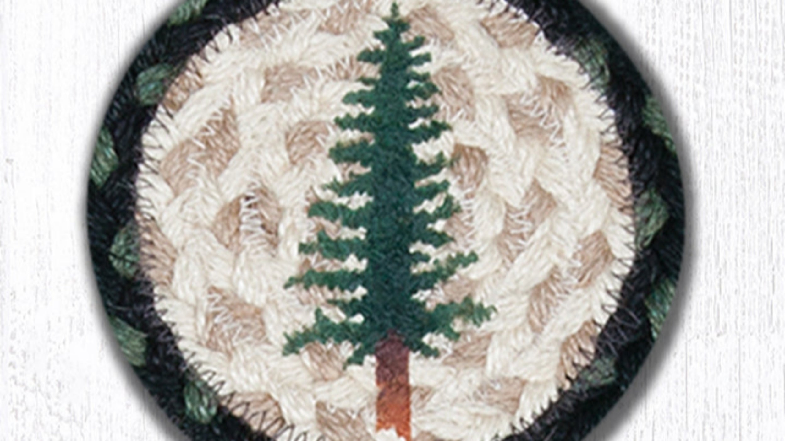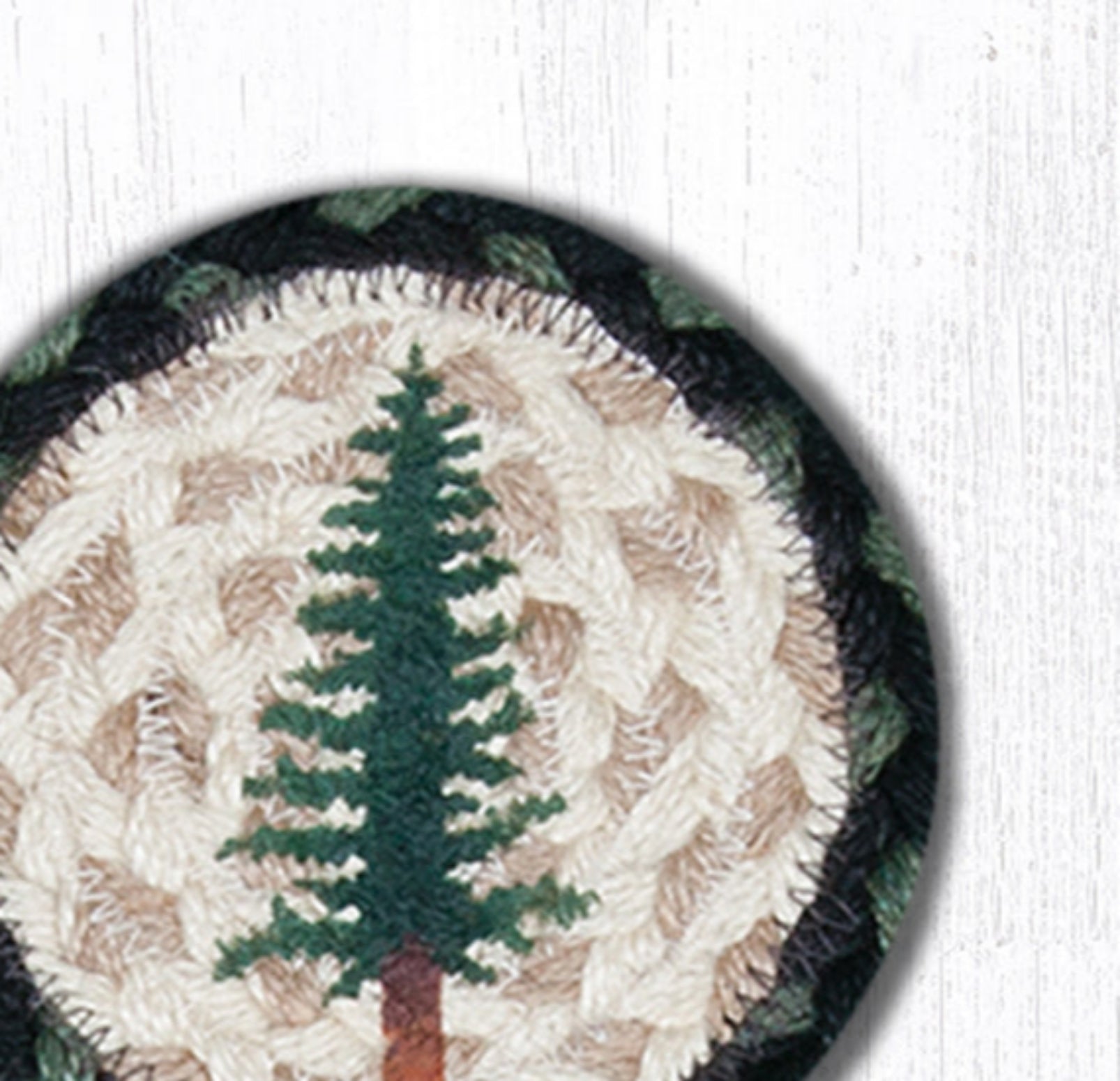 SKU - ER31-IC116TTTall Timbers Printed Coaster – 5"x5" Braided Jute Square with Forest Tree Design for Rustic Cabin and Woodland Decor