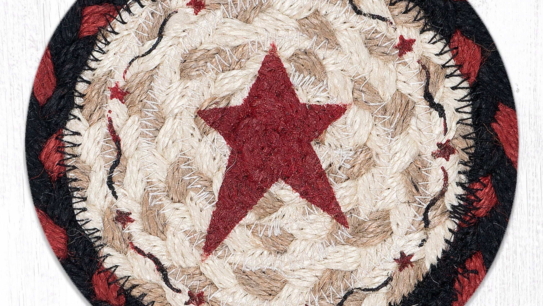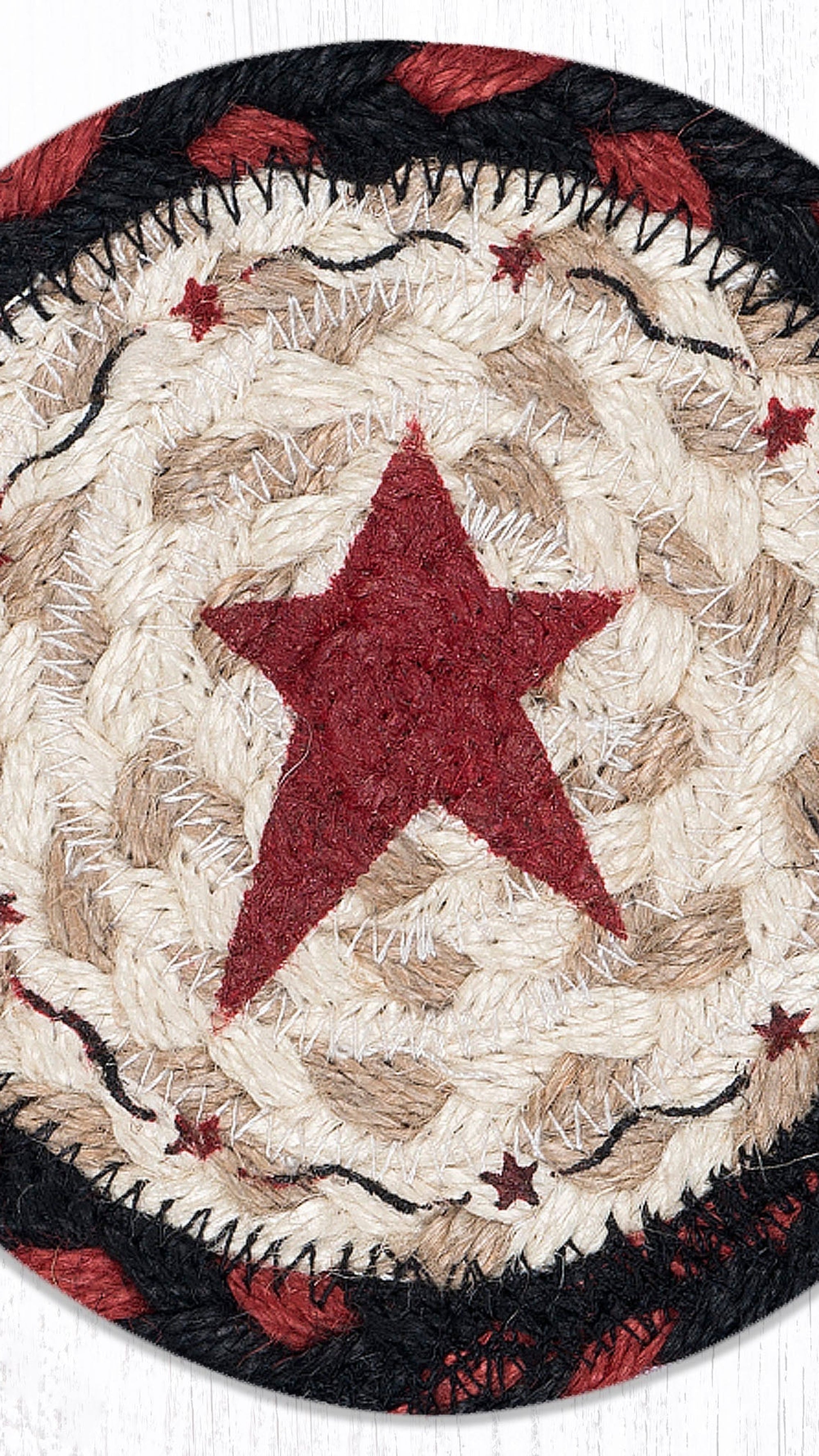 Earth Rugs Primitive Star Burgundy Printed Round Coaster – 5" Eco-Friendly Table Protection