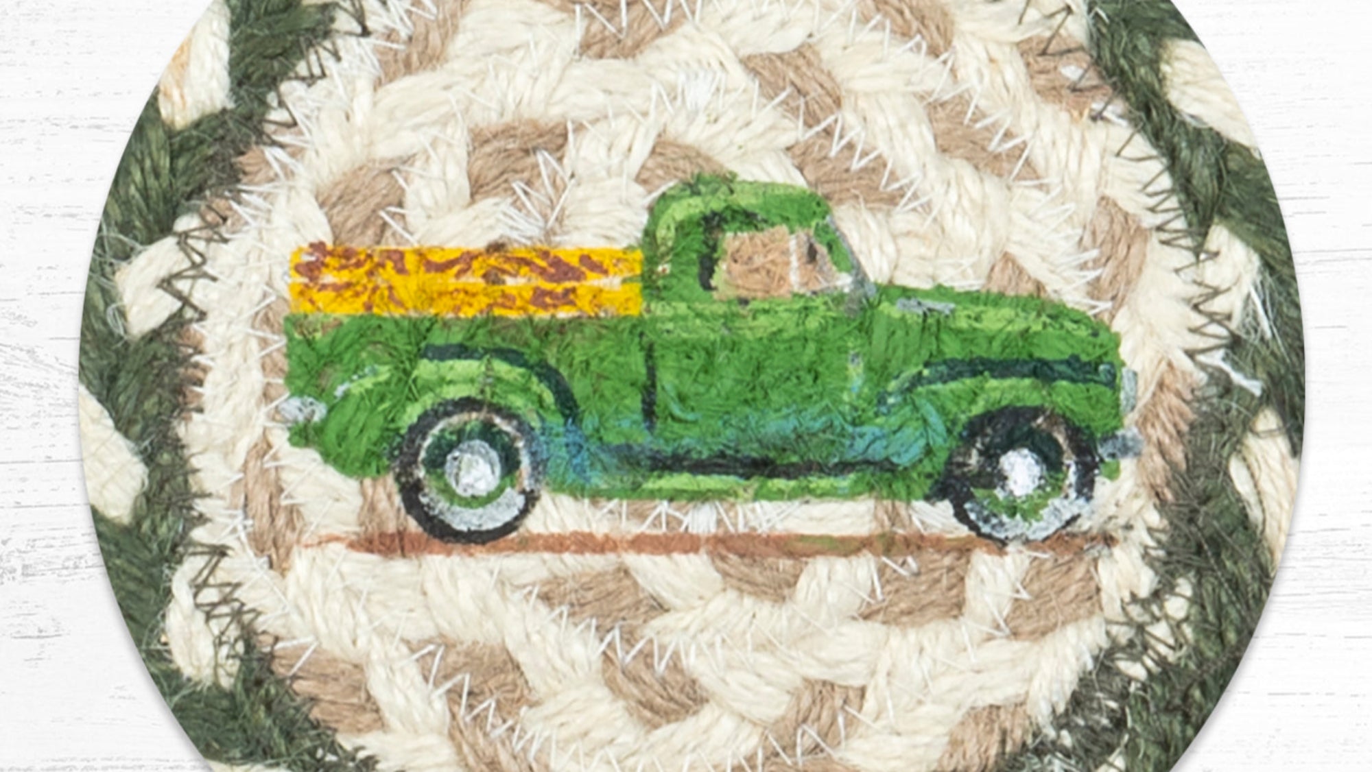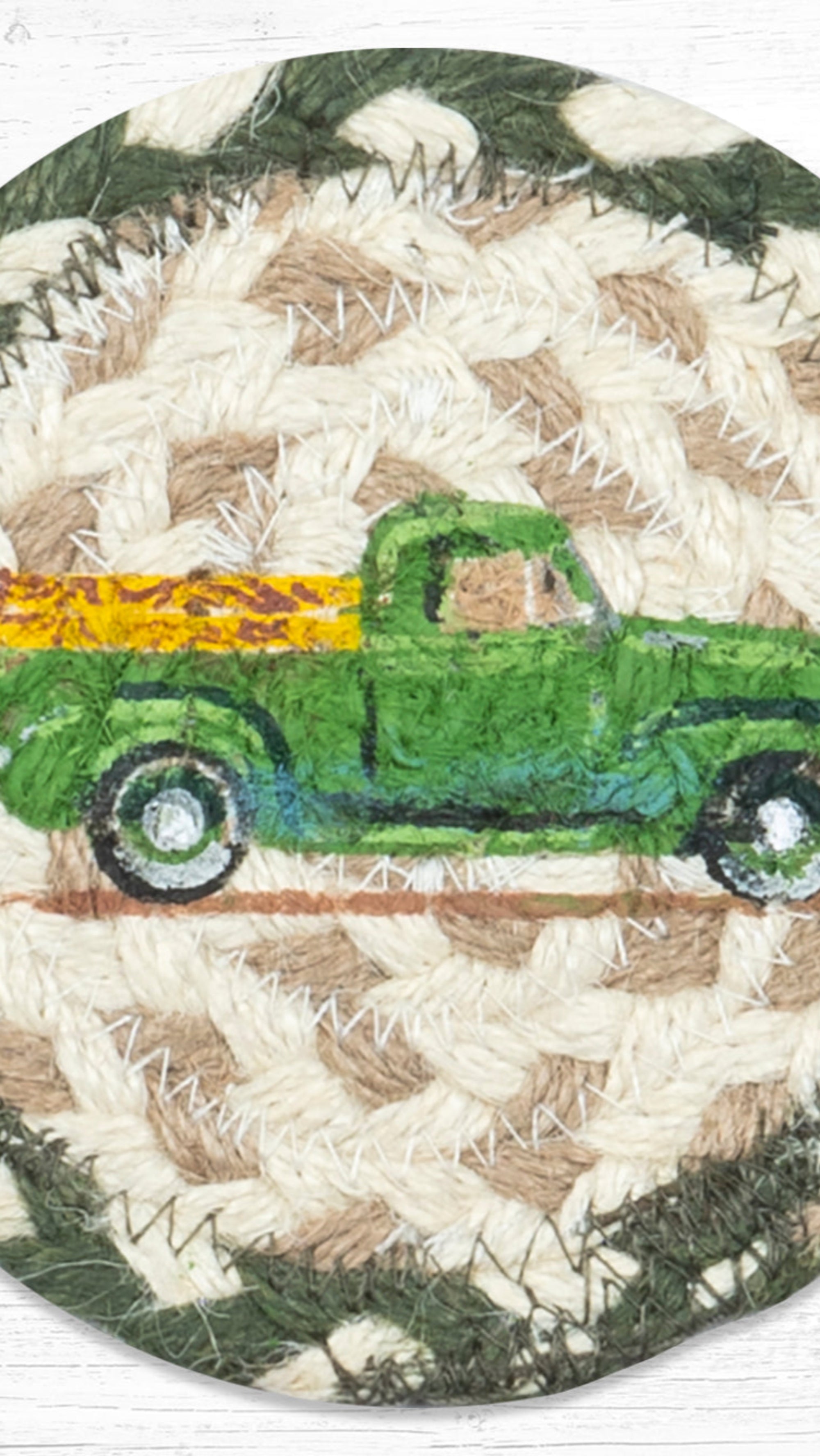 Earth Rugs Rustic Green Truck Coaster – 5" Round Printed Farmhouse Drink Mat