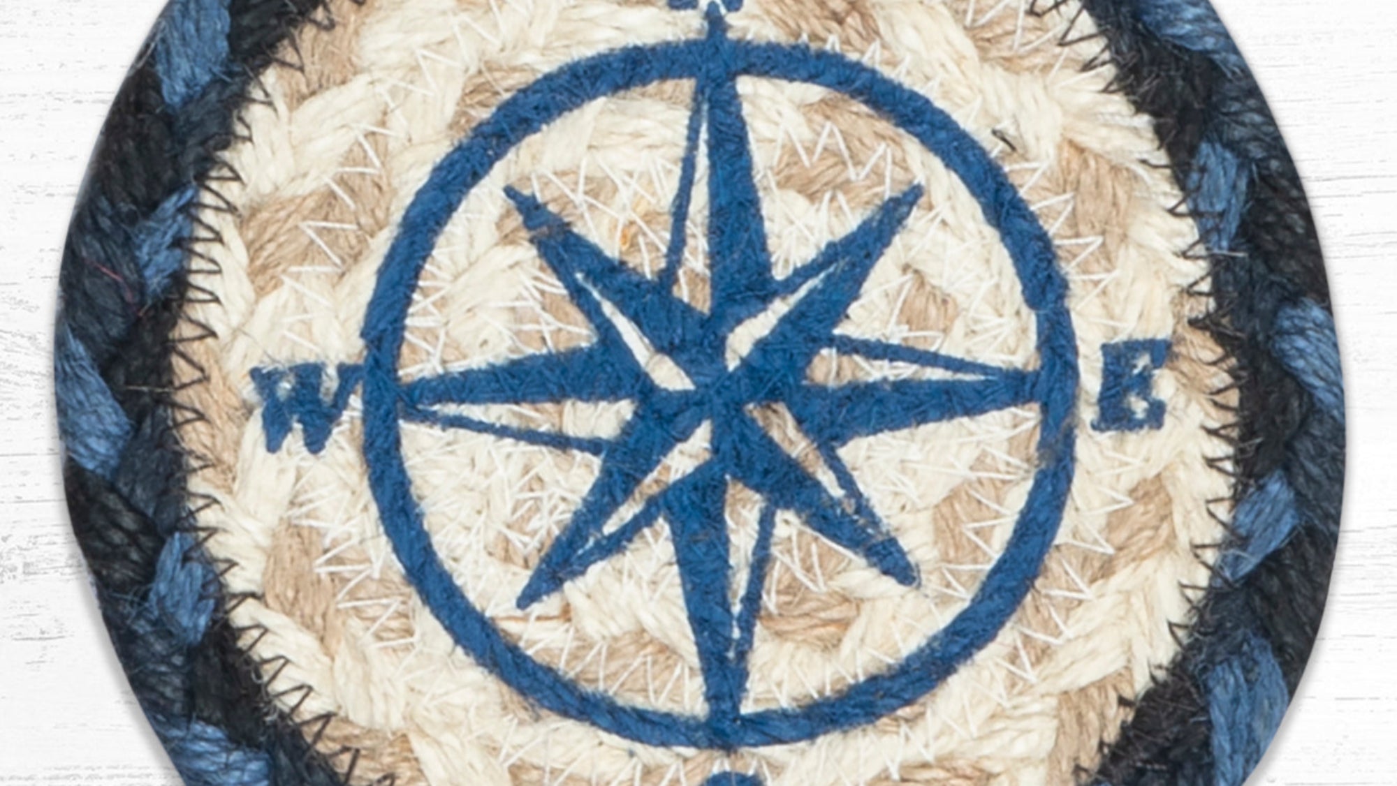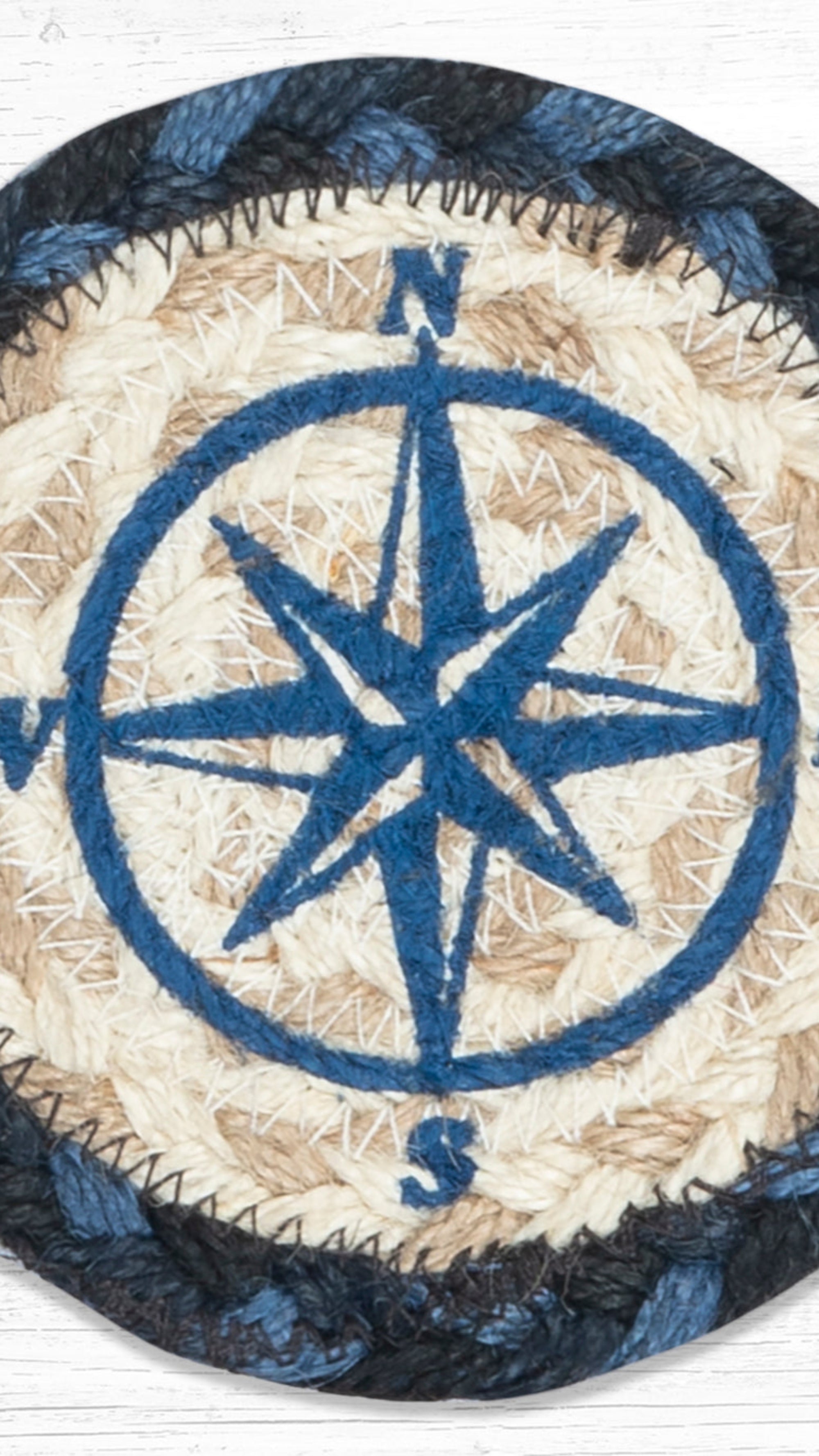 Earth Rugs Nautical Compass Rose Printed Coaster 5"x5" Coastal Kitchen Style