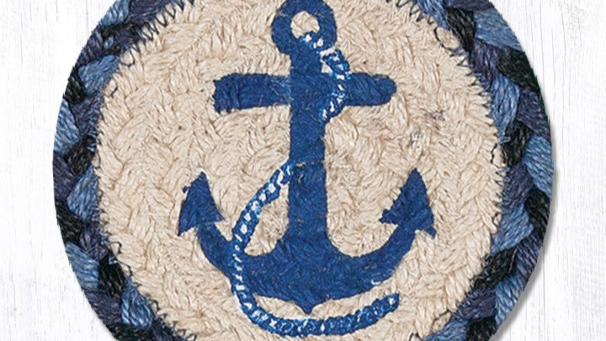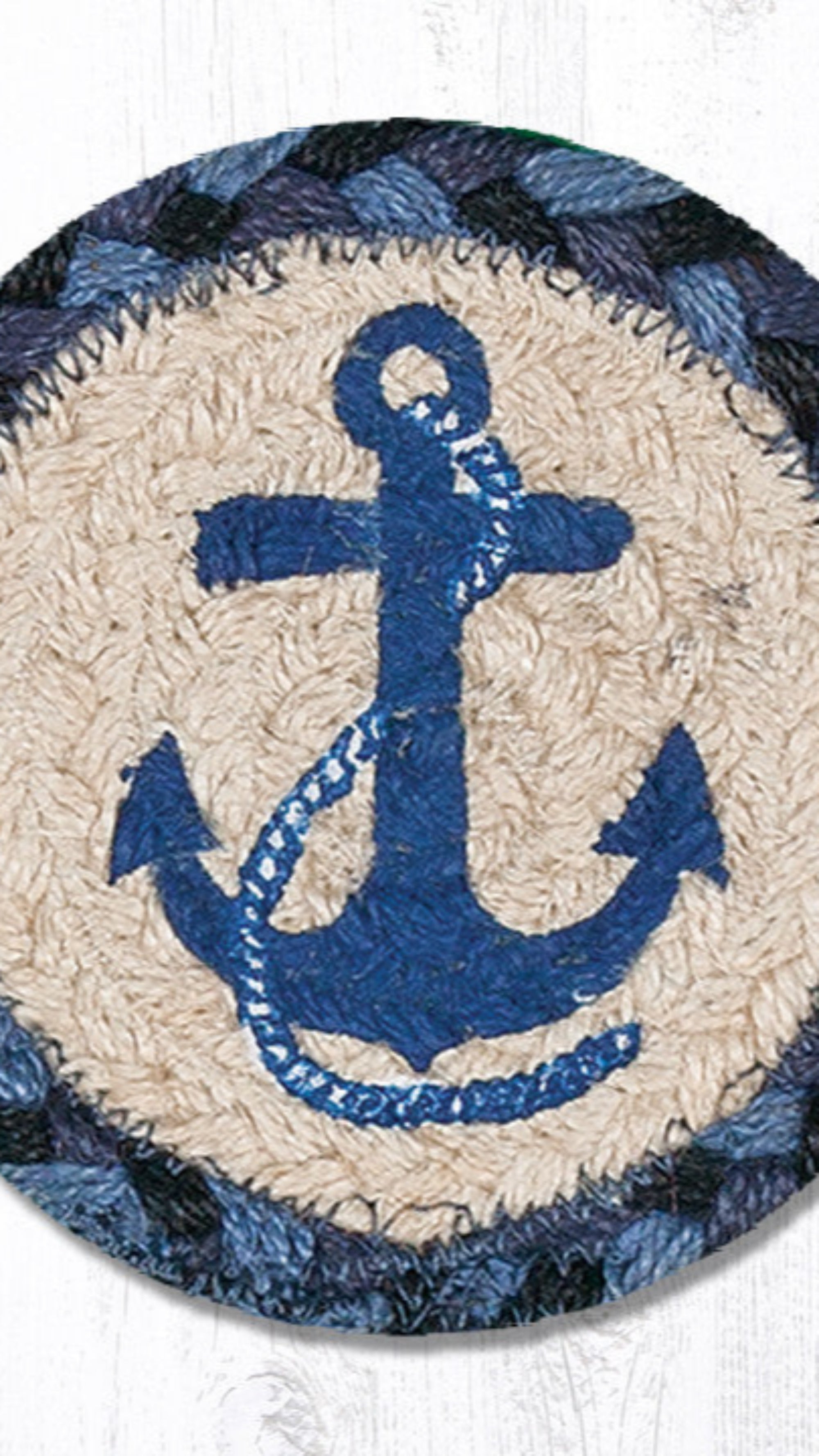 Earth Rugs Square 5" Navy Anchor Coaster Cotton Blend Beach House Accent