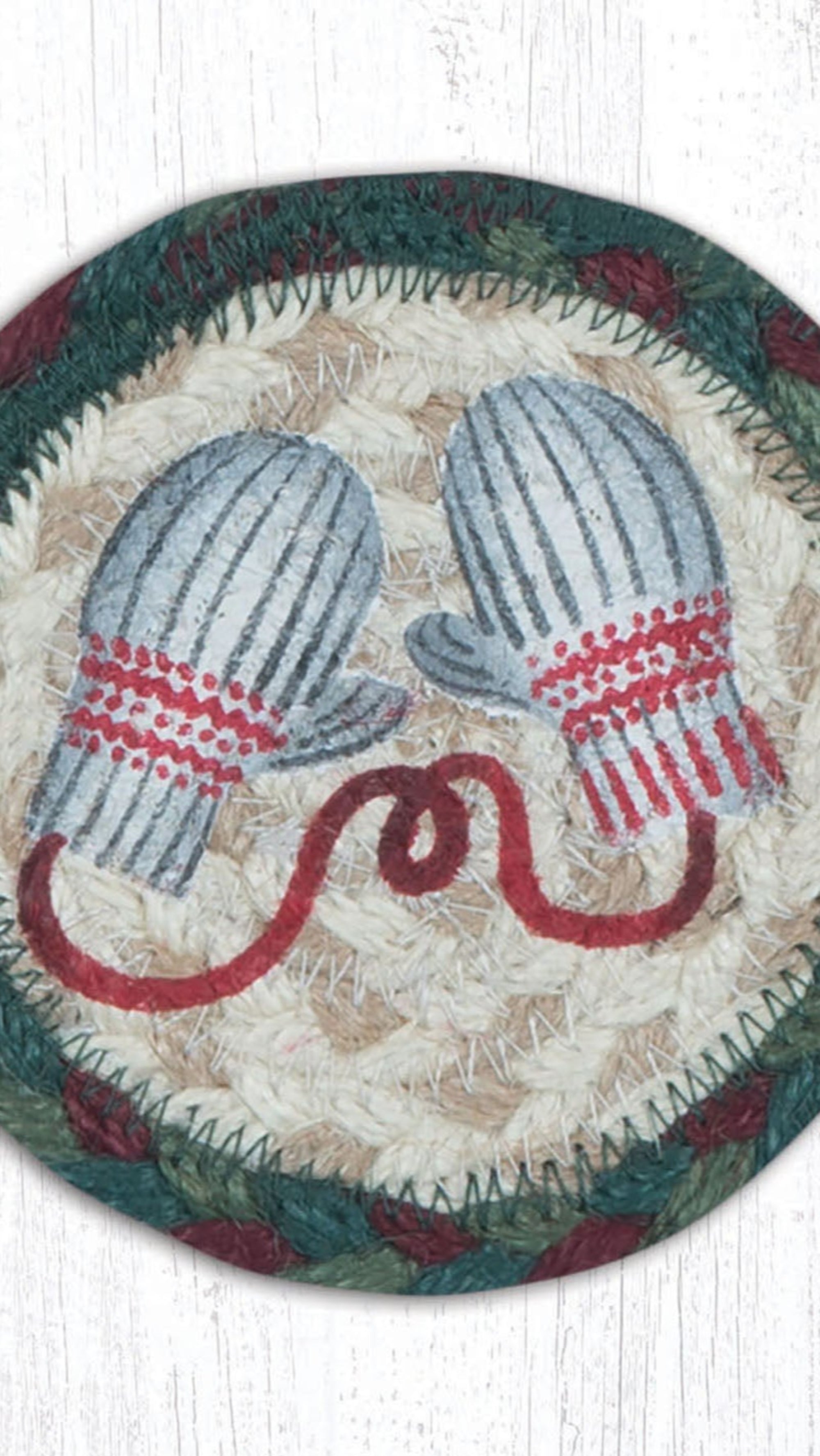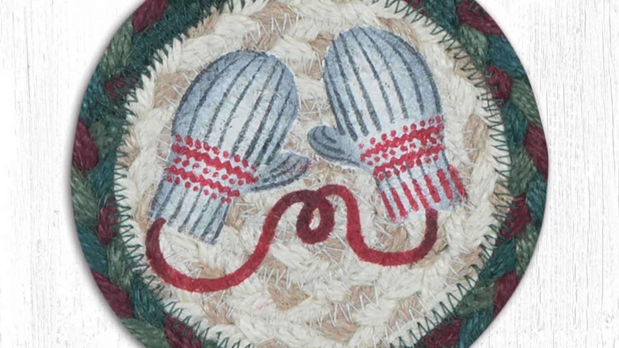 Earth Rugs Holiday Winter Mittens Coaster – Rustic Farmhouse Christmas 5"x5" Table Protector