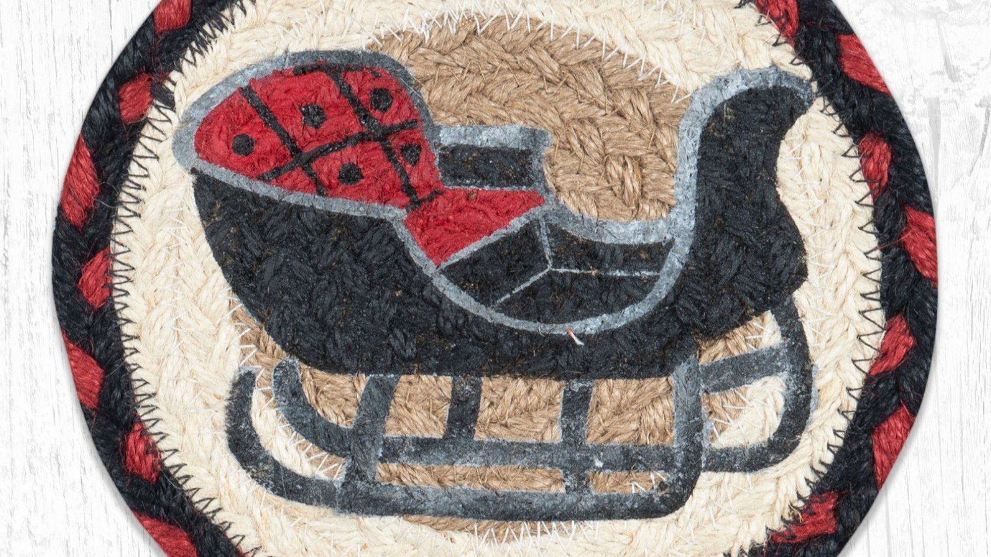 7x7 coaster,Christmas home accessory,Christmas table décor,cozy home décor,decorative coaster,decorative tabletop coaster,Earth Rugs,fabric coaster for mugs,festive table accent,festive table coaster,handmade fabric coaster,holiday round coaster,Kitchenware,large fabric coaster,protective coaster,protective tabletop coaster,rustic festive coaster,rustic holiday accessory,rustic holiday coaster,seasonal drink coaster,sleigh rides coaster,Under $100,winter holiday coaster