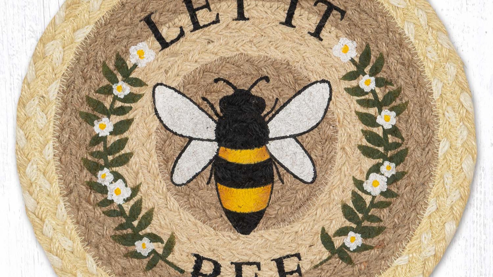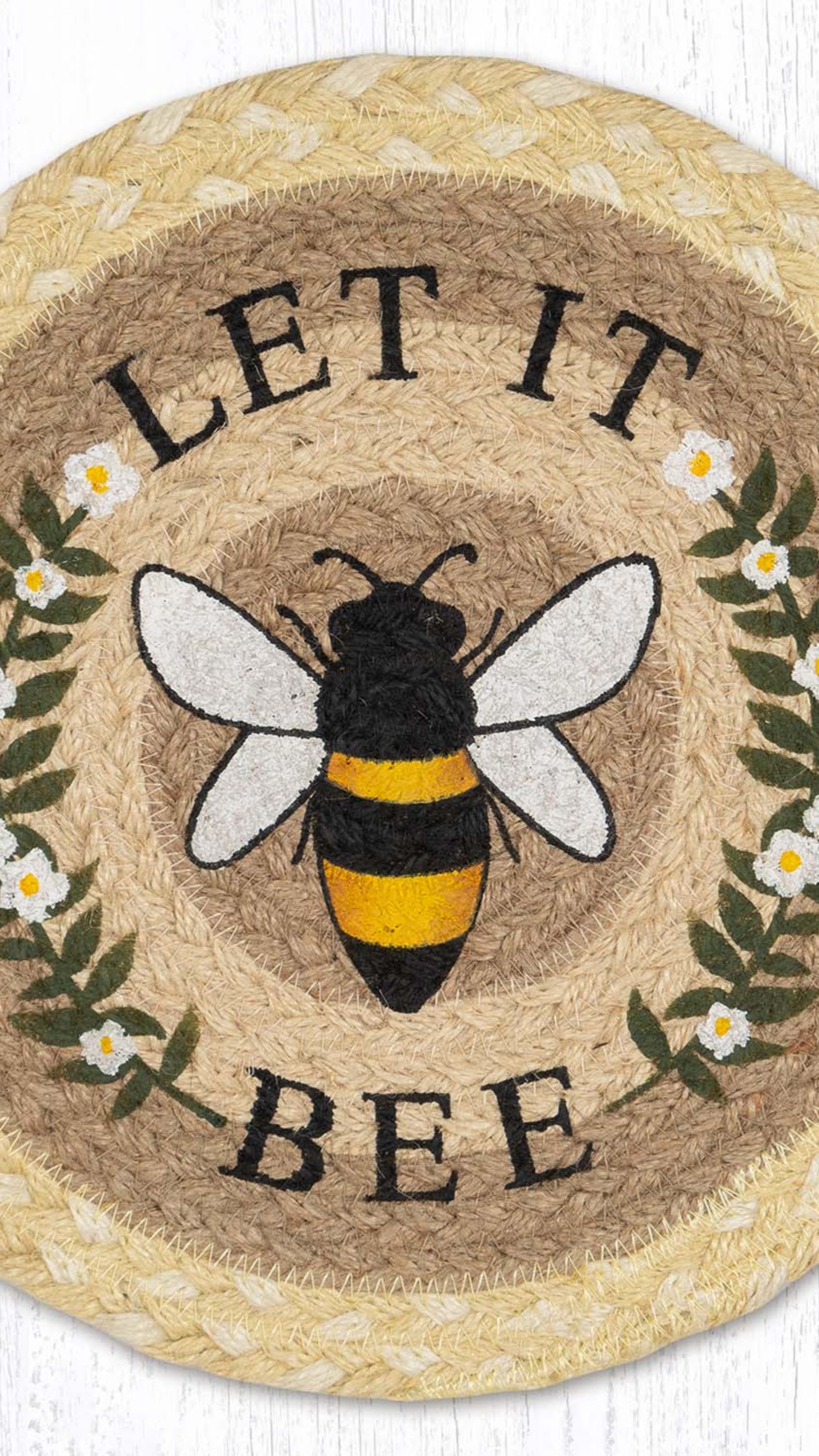 SKU - ER80-880LBLet It Bee Printed Round Trivet – 10" Braided Jute Hot Pad