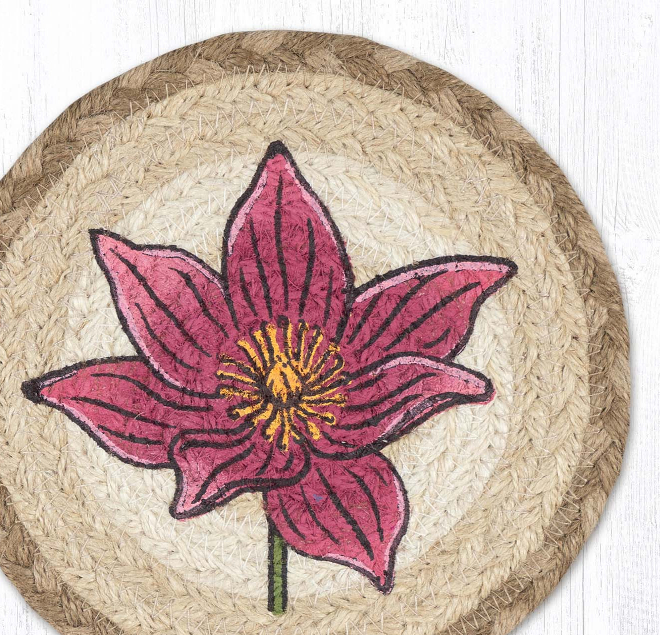Add natural beauty and floral charm to your table setting with the Earth Rugs Lily Round Large Coaster, measuring 7" x 7". Handcrafted from 100% natural jute, this braided coaster showcases a vibrant lily flower motif in earthy tones, perfect for enhancing rustic, farmhouse, or cottage-style interiors. Its durable braided construction protects surfaces from heat, moisture, and scratches, while its reversible flat design ensures stability and flexibility for everyday use. Whether you're decorating a kitchen, dining room, or patio table, this coaster brings a touch of organic warmth and artistry to your home.