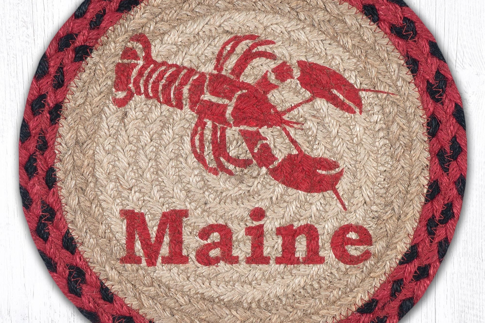 Earth Rugs Lobster Maine Round Trivet – 10" Red Lobster Print on Braided Natural Jute Table Mat