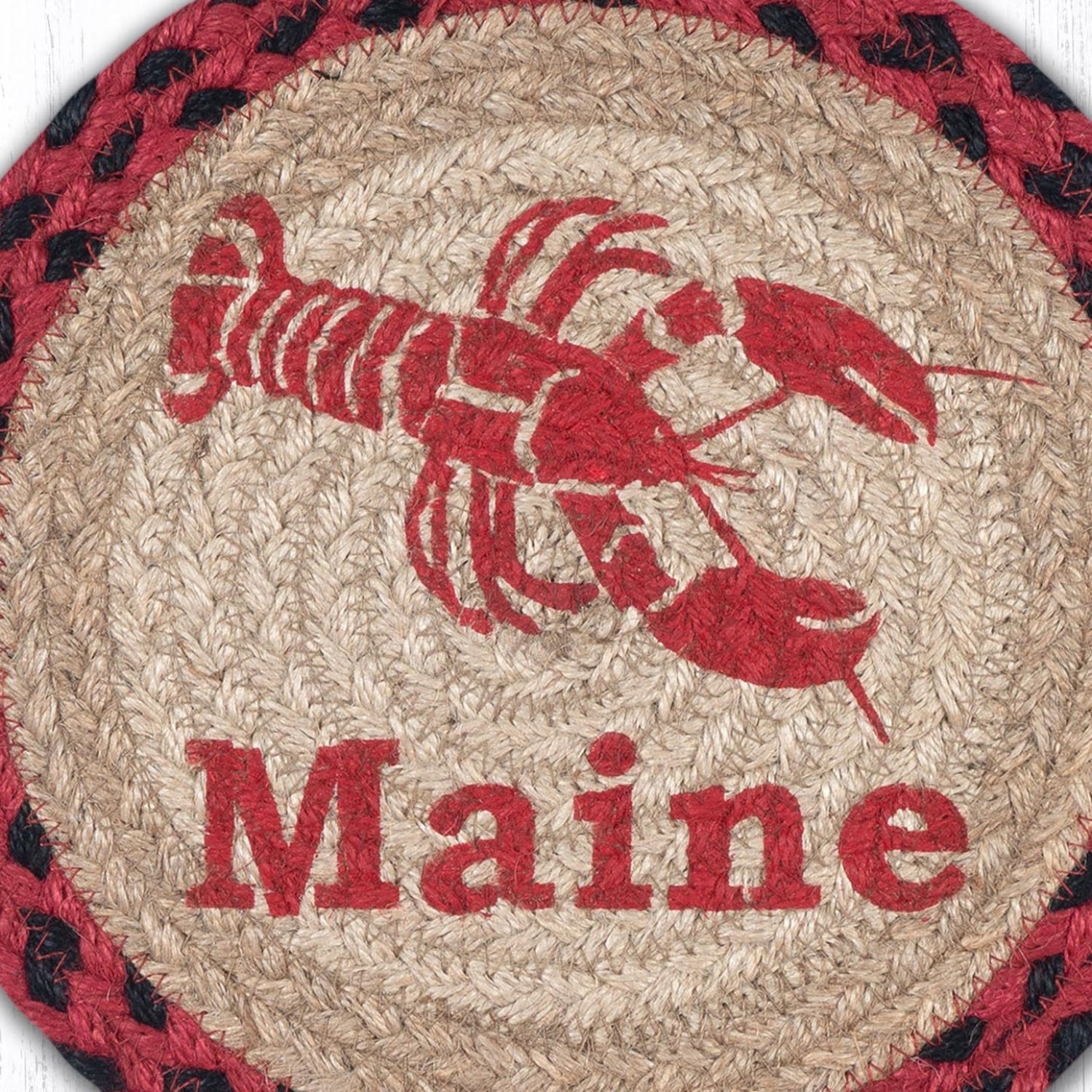 SKU - ER80-396LMLobster Maine Round Trivet – 10" Red Lobster Print on Braided Natural Jute Table Mat