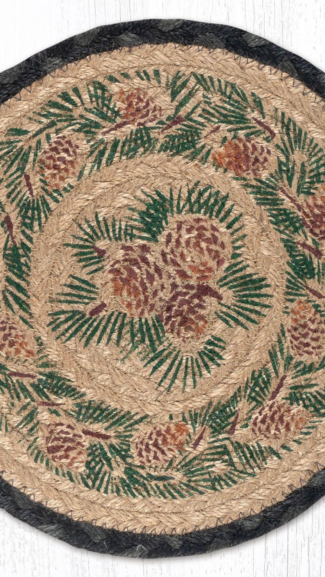 Pinecone Round Trivet – Rustic Cabin Kitchen Hot Pad 10"x10" by Earth Rugs