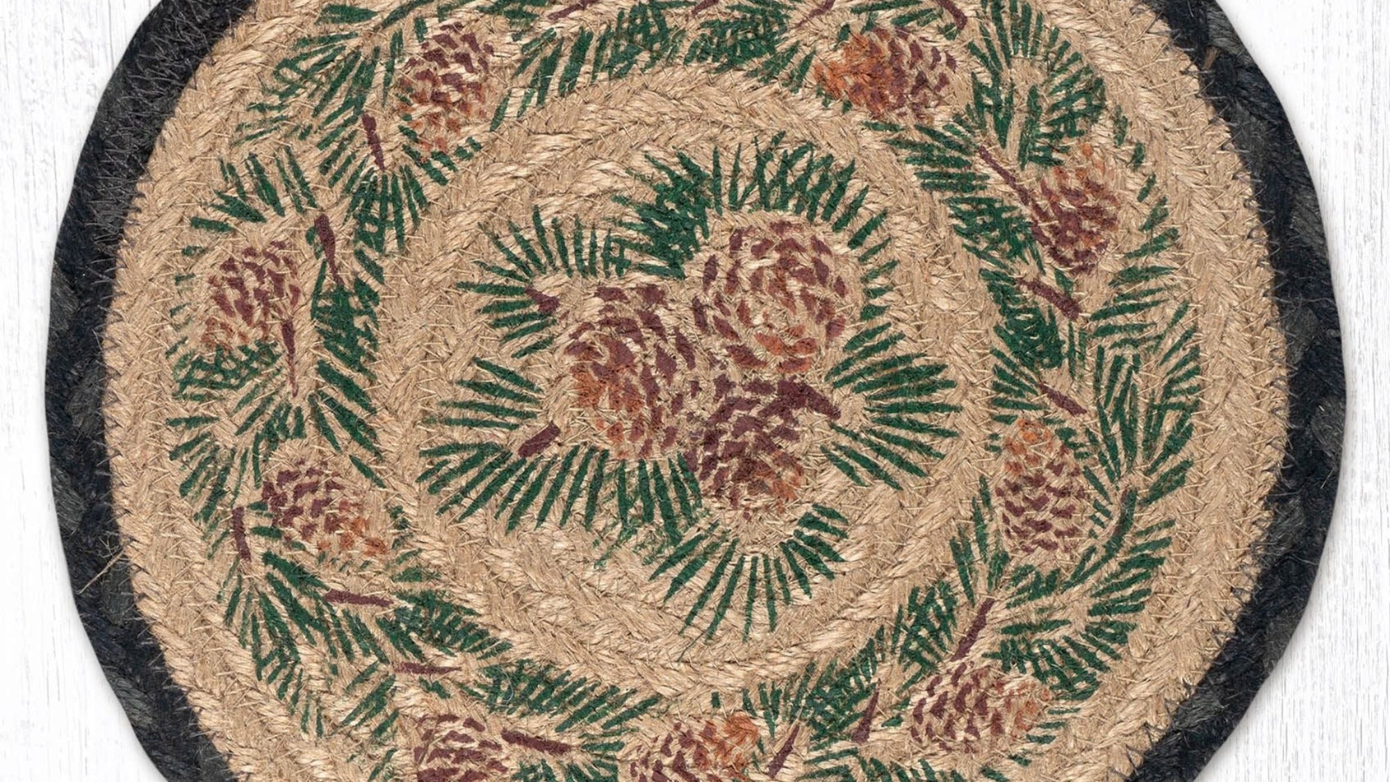 Earth Rugs Pinecone Round Trivet – Rustic Cabin Kitchen Hot Pad 10"x10"