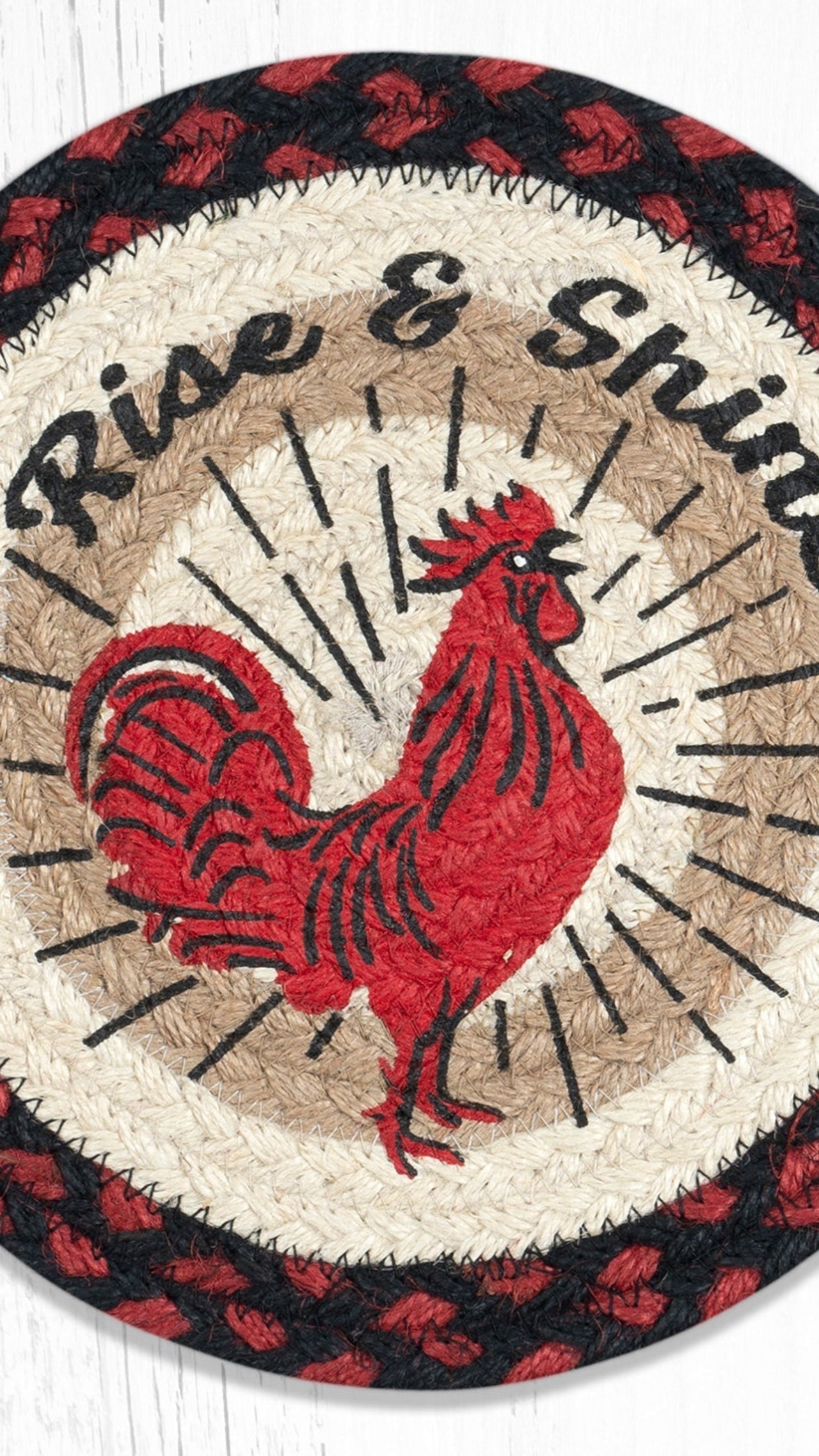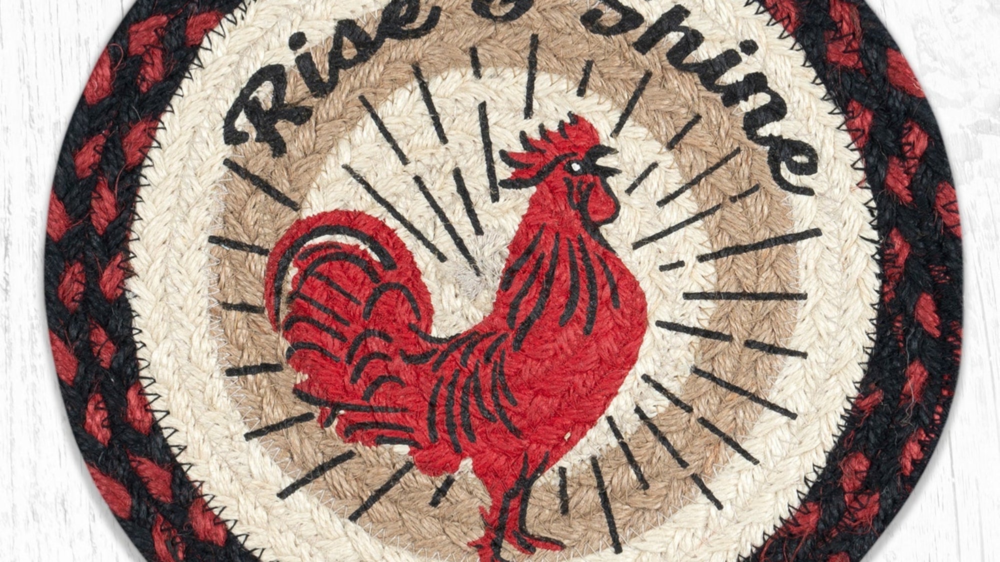 10 inch round hot pad,cheerful kitchen round trivet,cozy country kitchen décor,Earth Rugs,Earth Rugs cozy décor,Earth Rugs kitchen hot pad,eco-friendly kitchen trivet,farmhouse kitchen hot pad,farmhouse table décor,handcrafted farmhouse trivet,morning kitchen table accessory,Placemat,Rise & Shine trivet,rustic country hot pad,rustic country table protector,rustic farmhouse kitchen accent,rustic morning table accent,Uber Living,Under $100