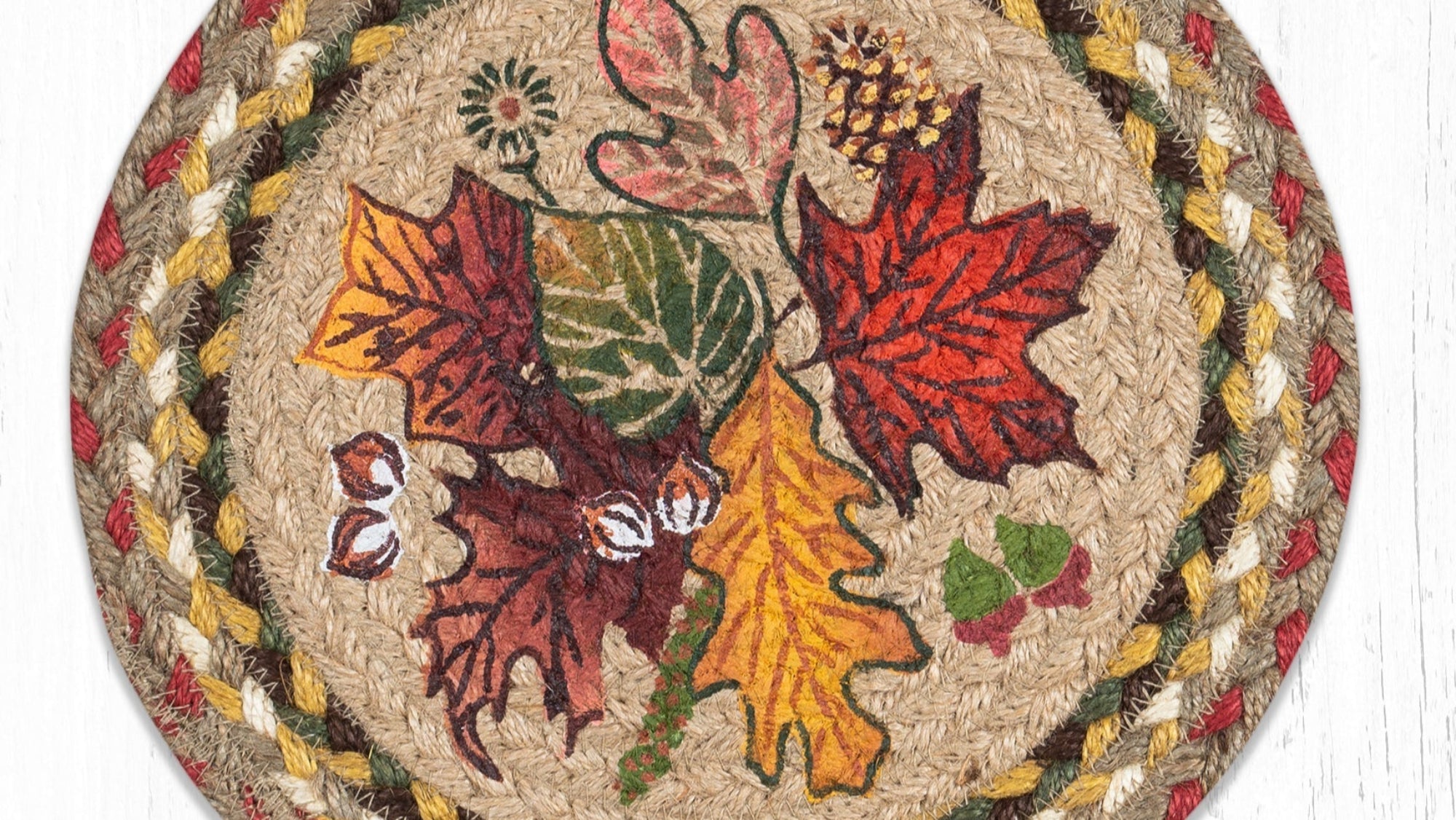 Earth Rugs Autumn Leaves Cotton Round Trivet – Farmhouse Seasonal Décor 10"x10"