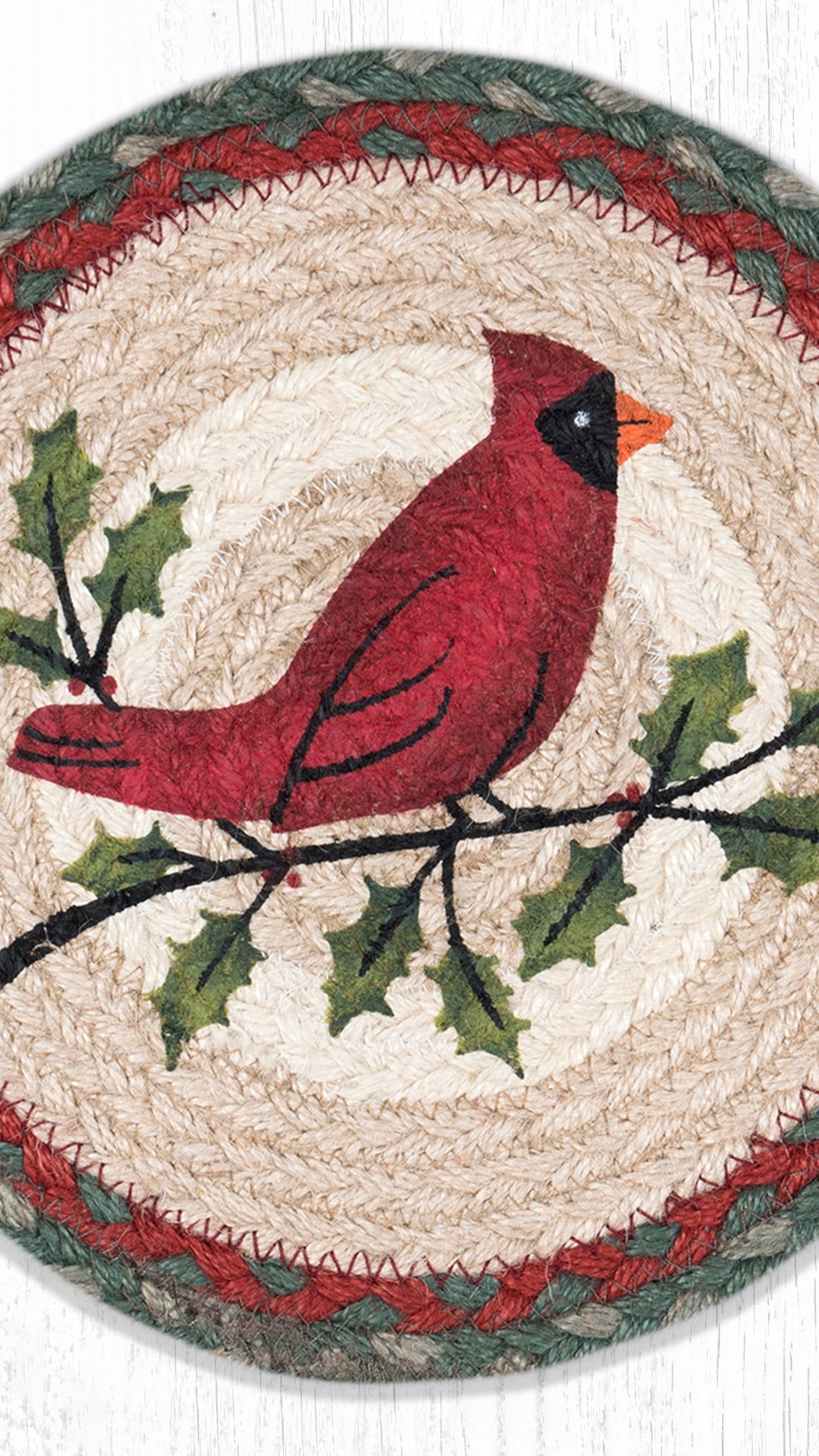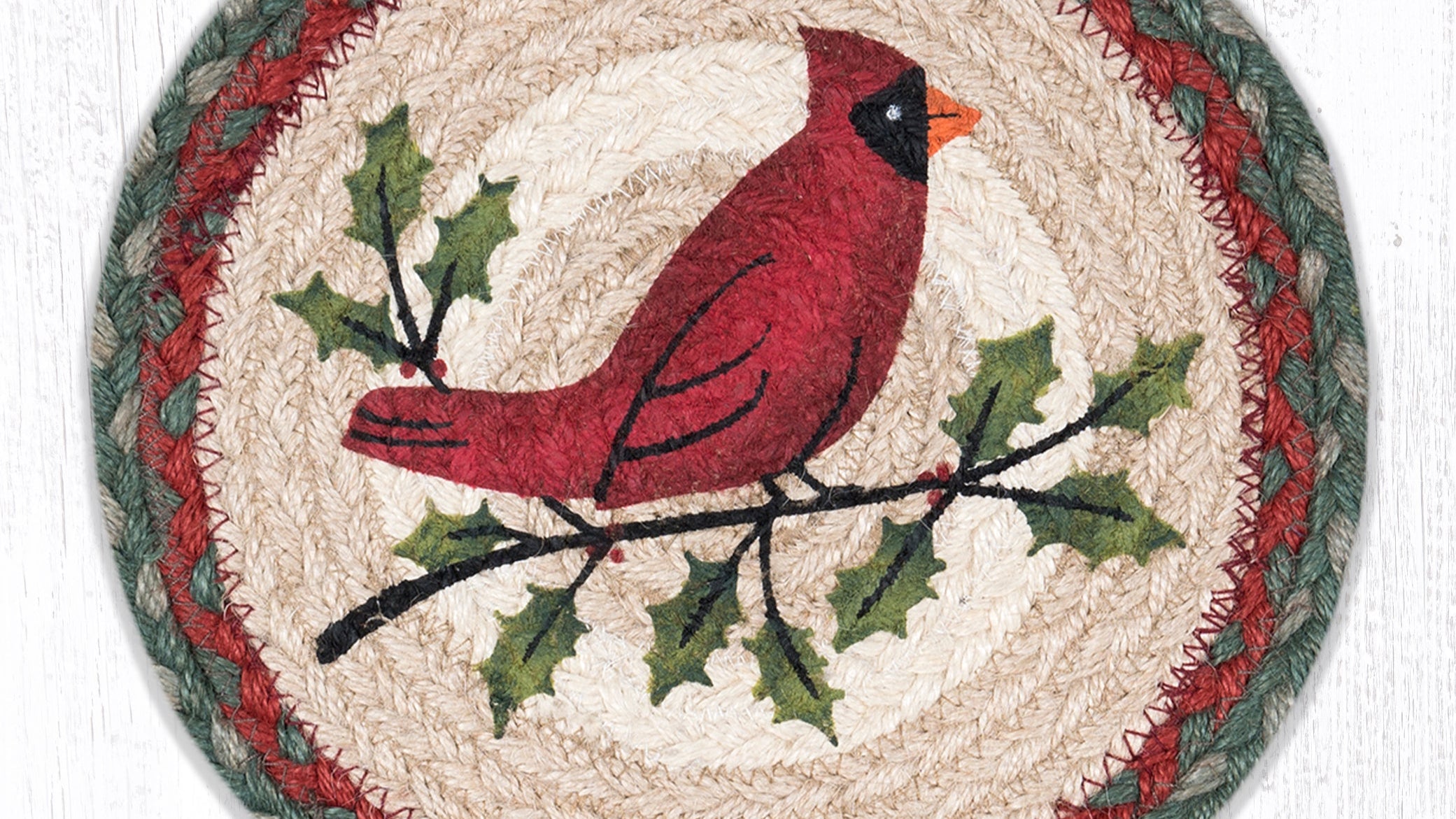 Earth Rugs Holly Cardinal Round Trivet – Rustic Holiday Kitchen Hot Pad 10"x10"