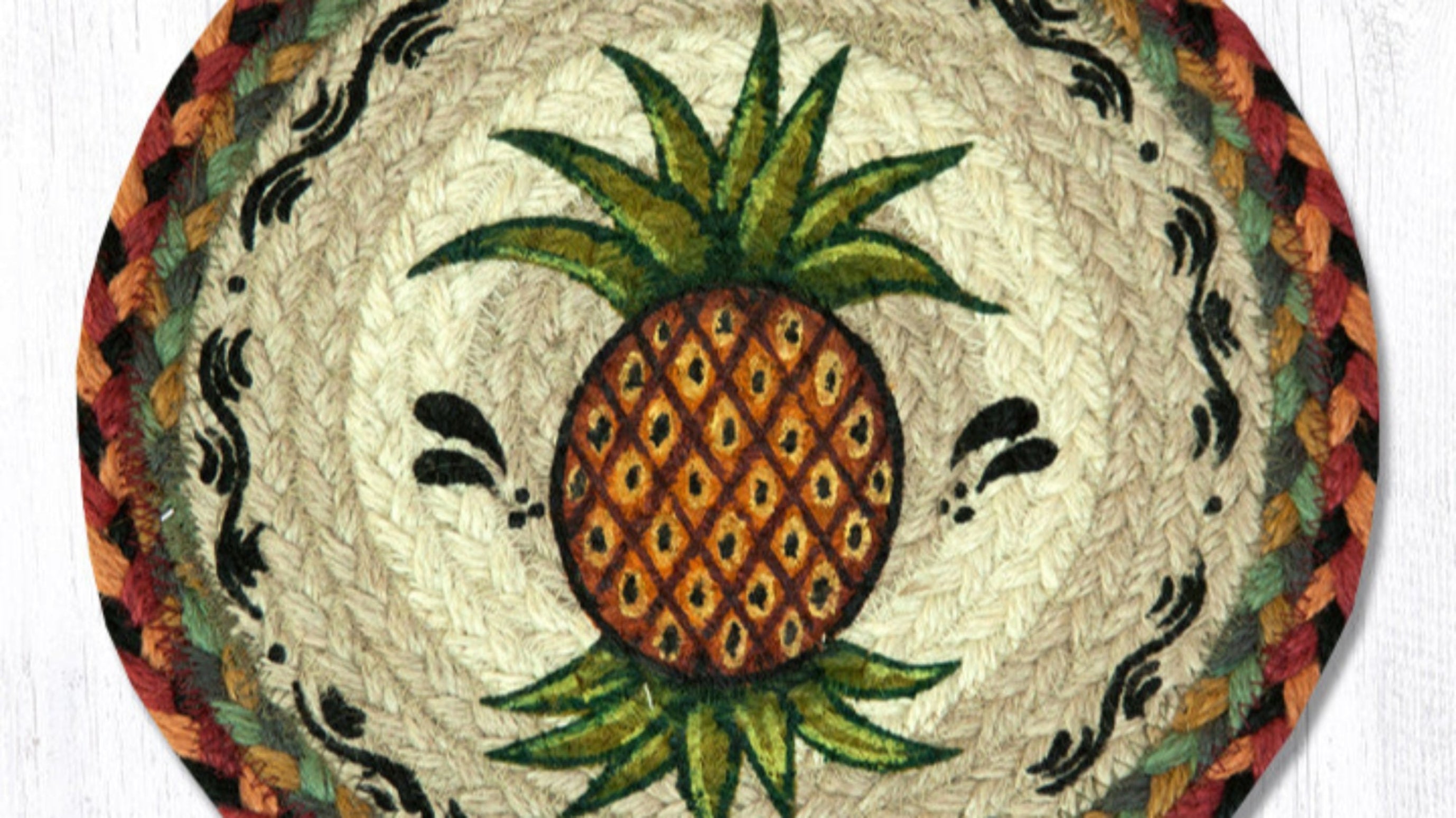 Earth Rugs Pineapple Printed Round Trivet 10"x10" Heat-Resistant Kitchen Accessory