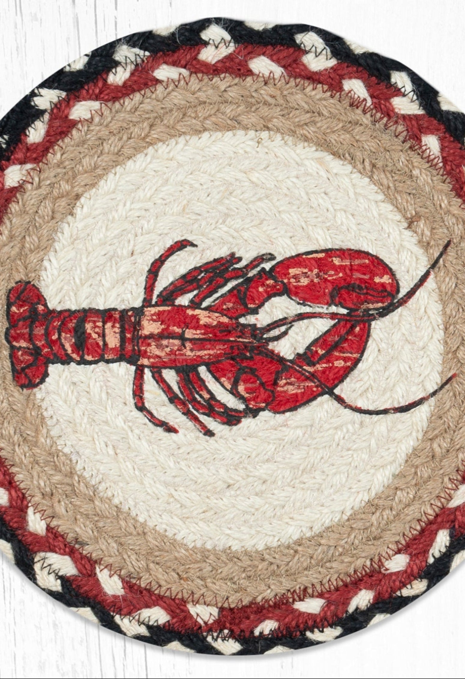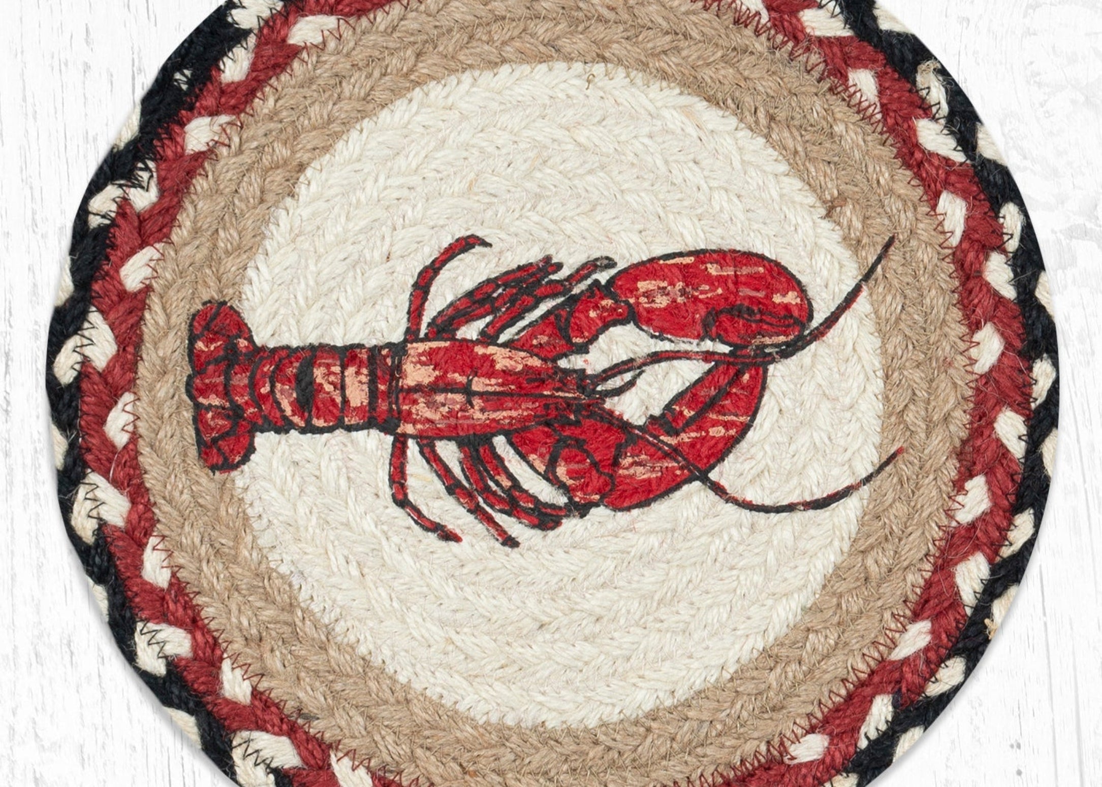 SKU - ER80-430FLFresh Lobster Round Jute Trivet – 10"x10" Hand-Braided Rustic Coastal Kitchen Accent