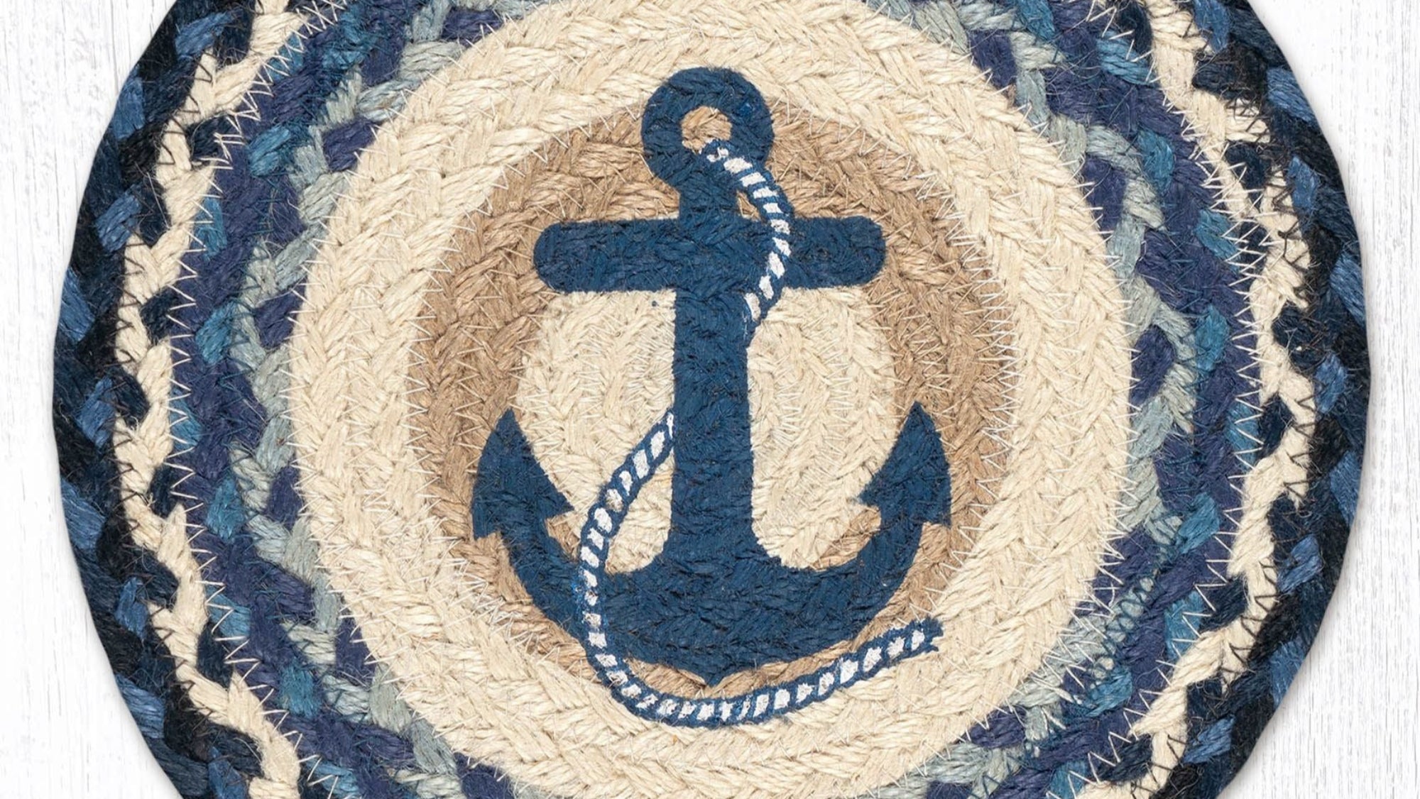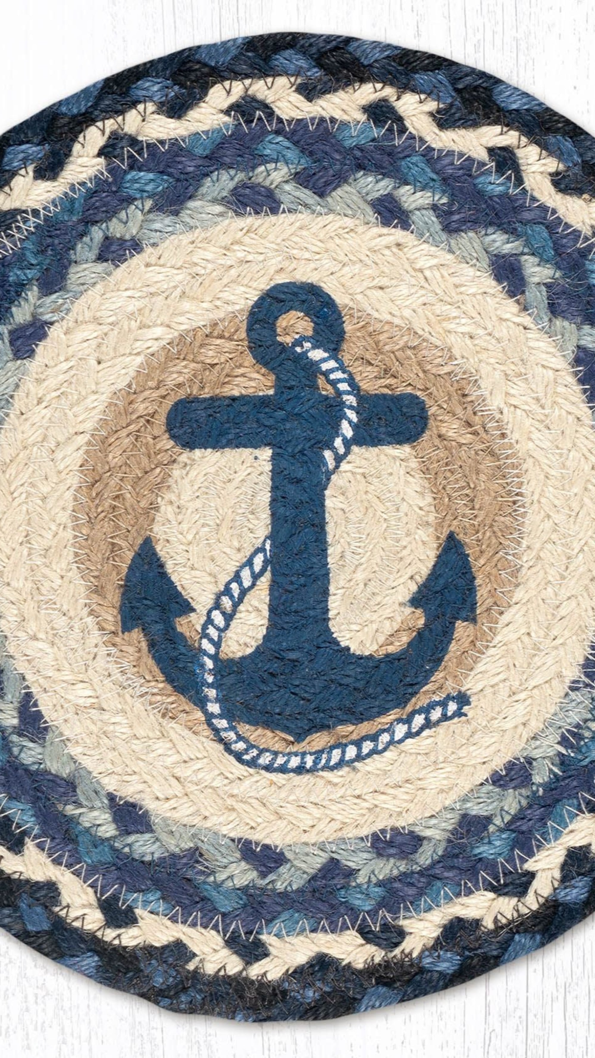 Earth Rugs Navy Anchor Decorative Printed Round Trivet 10" Rustic Coastal Accent