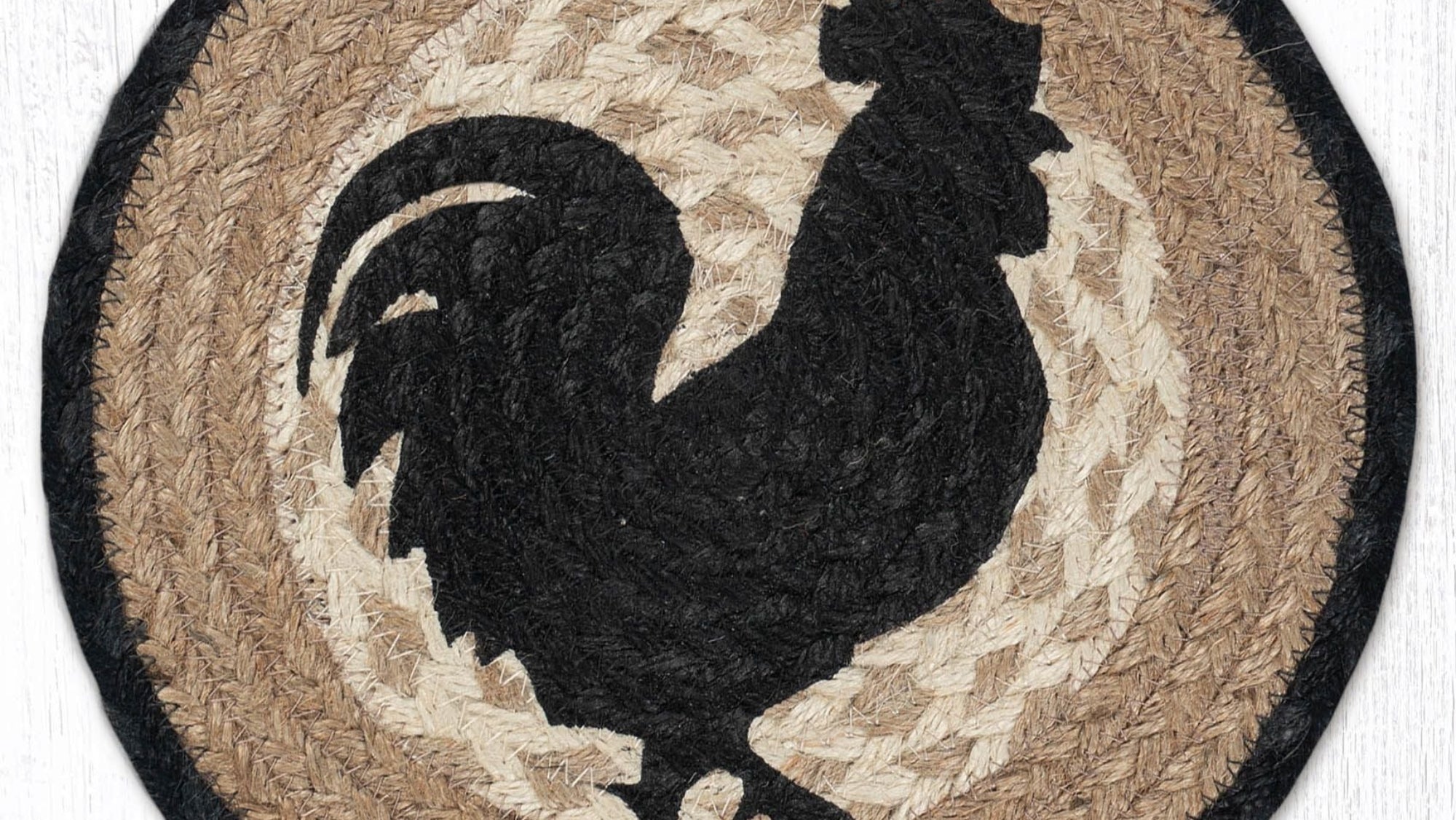 country farmhouse table protector,country round trivet,decorative rooster trivet,Earth Rugs,Earth Rugs rooster décor,farm animal hot pad,farm animal kitchen décor,farmhouse kitchen accent,farmhouse kitchen hot pad,heat resistant farmhouse trivet,rooster silhouette hot pad,rooster trivet,round rustic kitchen trivet,rustic country décor,rustic kitchen hot pad,rustic round trivet,Uber Living,Under $100